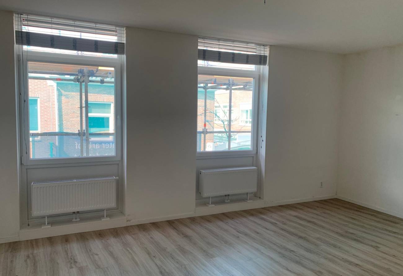 Op de 1e verdieping, boven de winkels gelegen zeer royaal 3-kamer hoekappartement. Het appartement heeft een eigen entree en een woonopp. van ca. 75m².