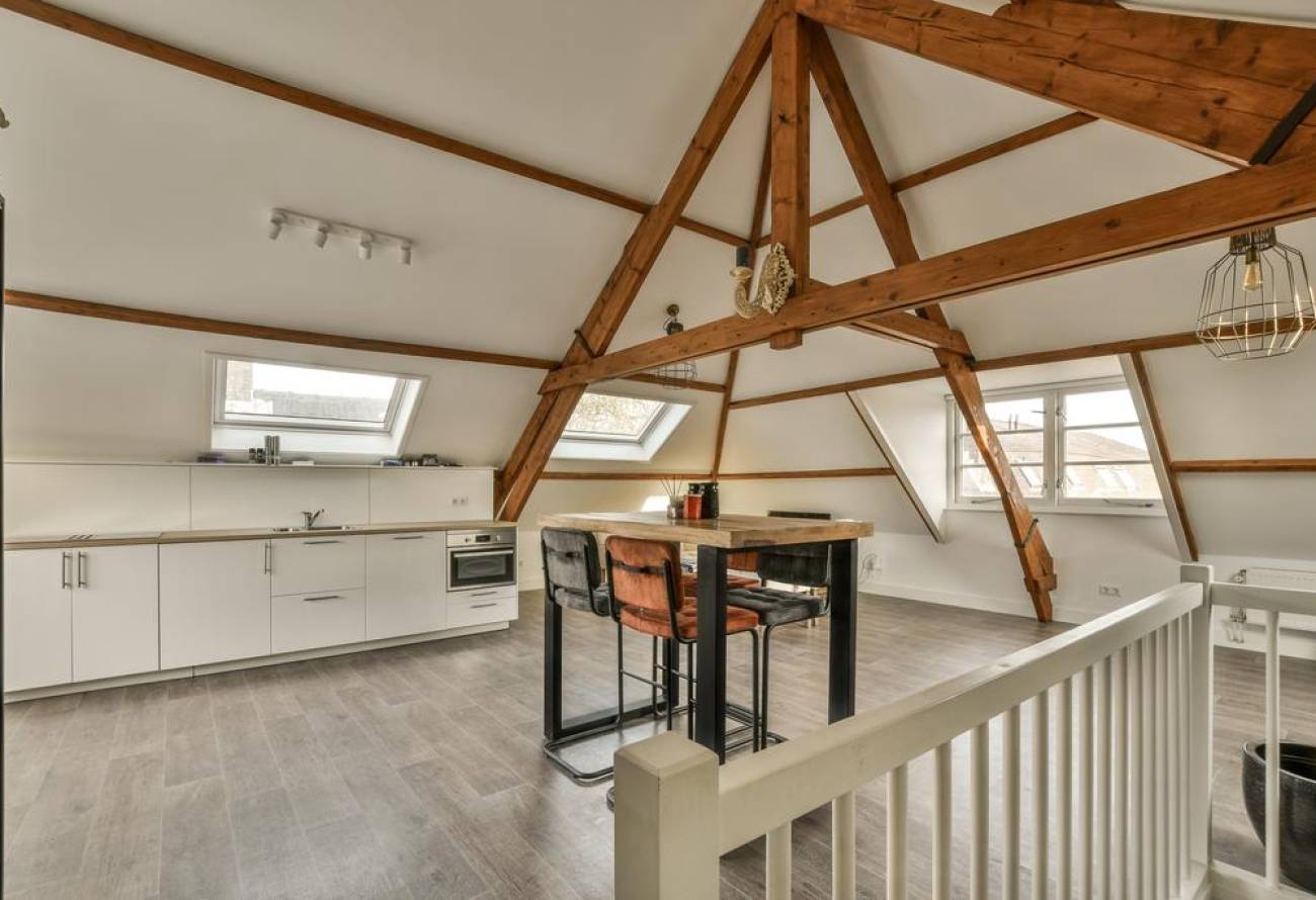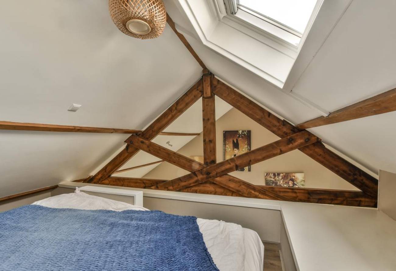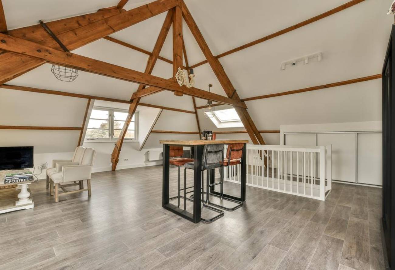 The second apartment is located at the rear and very suitable for occupancy of studying (living at home) children or a unique opportunity to rent. Entrance hall with spacious landing which is used as a workplace. From the hall there is access to the dressing room and the living room with open kitchen. The living room has exposed beams and an open ridge which gives a spacious feeling. The open kitchen is in light colors and equipped with various appliances including: dishwasher, oven, induction hob, extractor and refrigerator. The toilet and bathroom are separate but both accessible from the living room. The bathroom is equipped with: washbasin with cabinet, shower, towel radiator and mechanical ventilation. Through the hall there is a staircase to the sleeping loft which is equipped with a skylight.