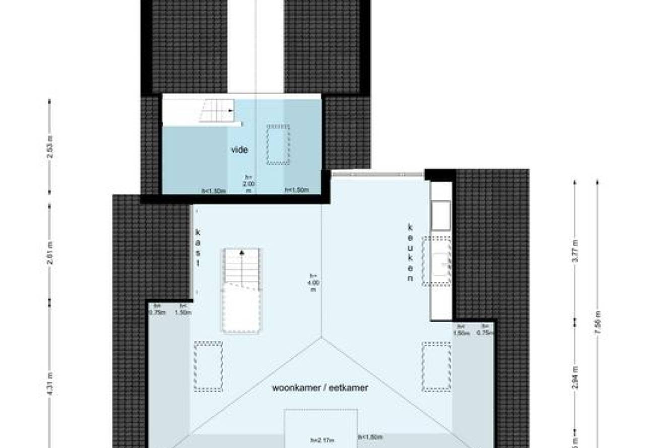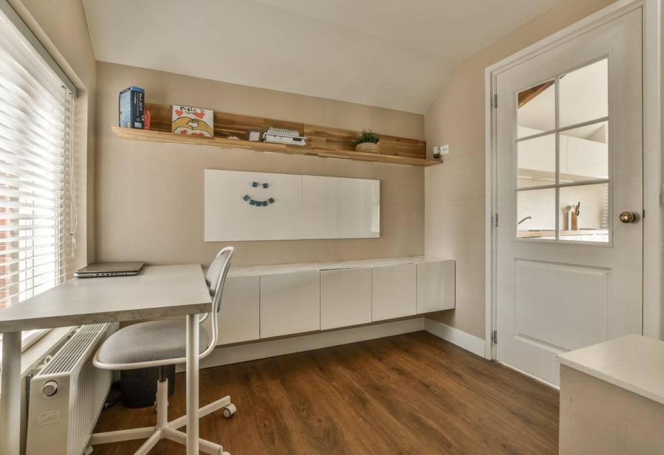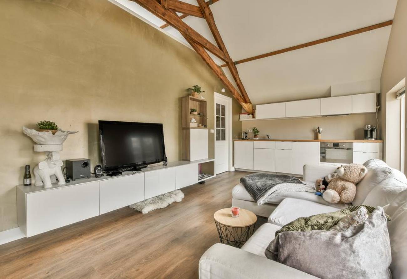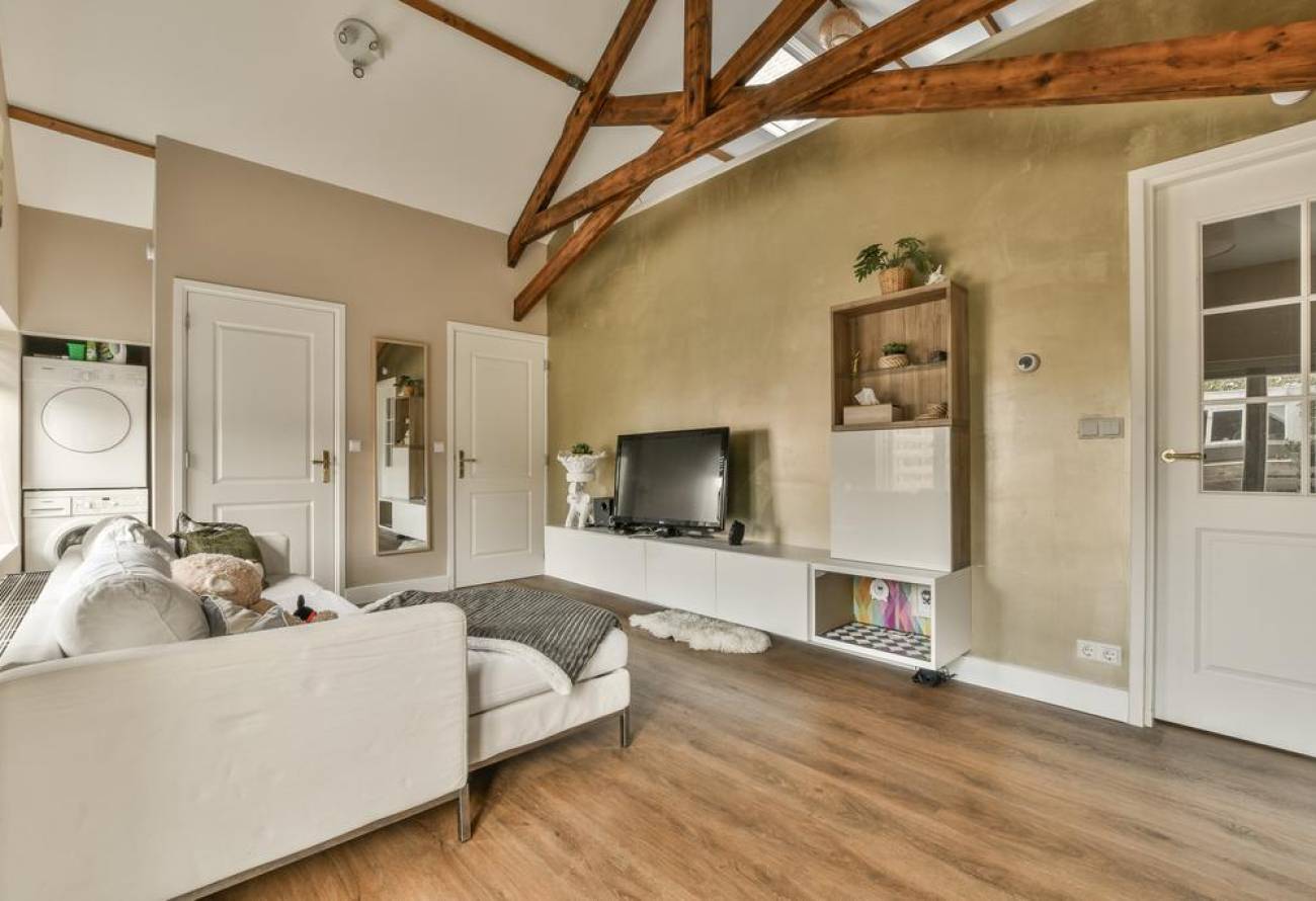The second apartment is located at the rear and very suitable for occupancy of studying (living at home) children or a unique opportunity to rent. Entrance hall with spacious landing which is used as a workplace. From the hall there is access to the dressing room and the living room with open kitchen. The living room has exposed beams and an open ridge which gives a spacious feeling. The open kitchen is in light colors and equipped with various appliances including: dishwasher, oven, induction hob, extractor and refrigerator. The toilet and bathroom are separate but both accessible from the living room. The bathroom is equipped with: washbasin with cabinet, shower, towel radiator and mechanical ventilation. Through the hall there is a staircase to the sleeping loft which is equipped with a skylight.