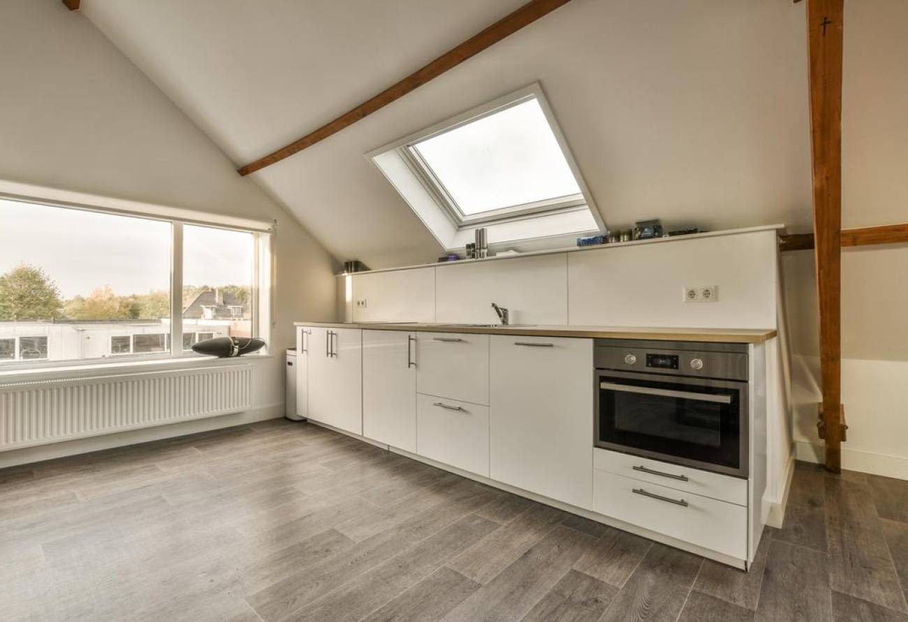Het tweede appartement is gelegen aan de achterzijde en zeer geschikt voor bewoning van studerende (thuiswonende) kinderen of een unieke mogelijkheid om te verhuren. Entree hal met ruime overloop welke in gebruik is als werkplek. Vanuit de hal is er toegang tot de kleedkamer en de woonkamer met open keuken. Ook hier is in de woonkamer gekozen voor zichtbare balken en een open nok welke een ruimtelijk gevoel geven. De open keuken is in lichte kleurstelling en voorzien van diverse inbouwapparatuur, waaronder: vaatwasser, oven, inductiekookplaat, afzuigkap en koelkast. Het toilet en badkamer zijn gescheiden maar wel beide toegankelijk vanuit de woonkamer. De badkamer is voorzien van: wastafel met meubel, douche, handdoekradiator en mechanische ventilatie. Middels de hal is er een vaste trap naar de slaapvide welke voorzien is van een dakraam.