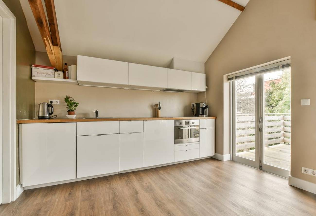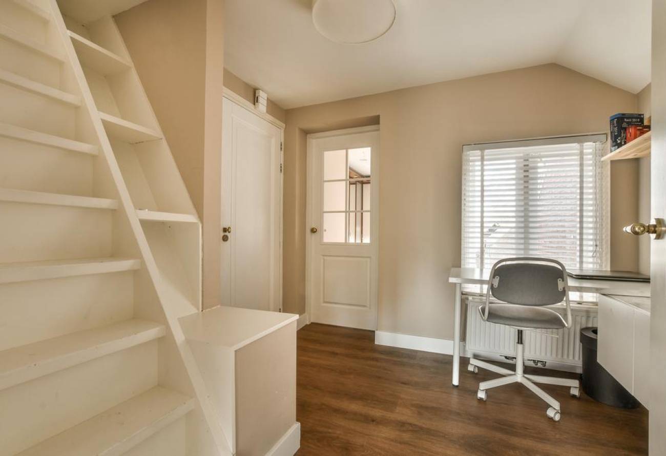 From the entrance hall a fixed staircase to the living room with stairs cupboard. The living room is remarkably light through the many windows on each facade and has a cool look with the exposed beams. Also, the living room has a playful layout which makes it possible to create different seating areas. In addition, the front has a beautiful view of the water "the Leede" and the charming Dorpsstraat. The open kitchen is well maintained and equipped with various appliances including; dishwasher, oven, induction hob with integrated extractor system and refrigerator.