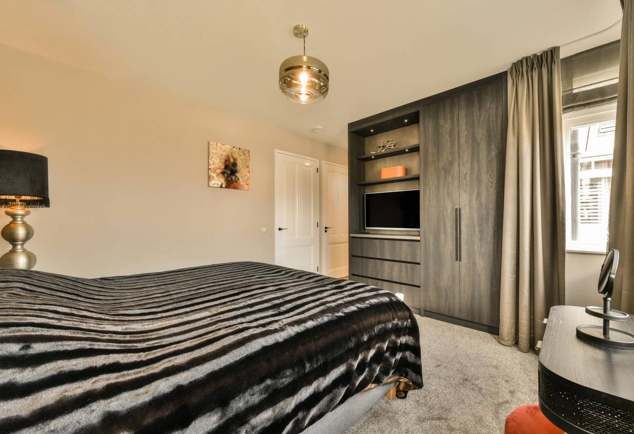 De ruime masterbedroom, die aan de voorzijde van de woning ligt, heeft een kleding gedeelte, dat door een roomdevider van het slaapgedeelte is gescheiden, en een eigen luxe badkamer. Verder bevinden zich hier nog 2 royale slaapkamers, waarvan 1 met toegang tot het balkon en een 2e badkamer.