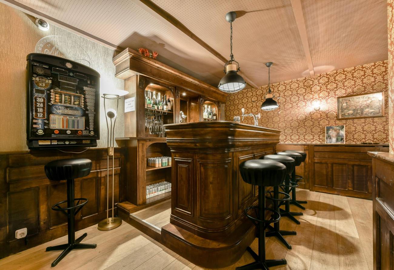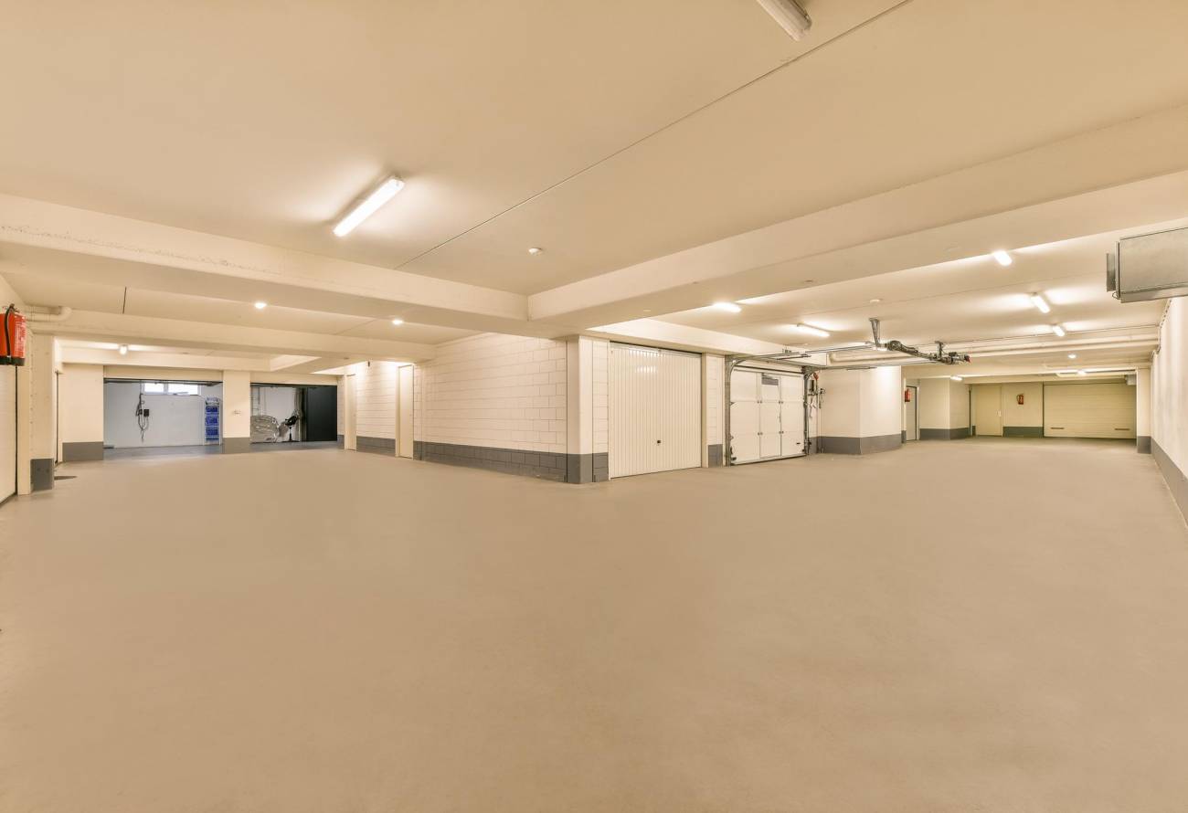Vanuit de hal is er via de trap toegang tot de ondergelegen parkeerkelder waar er, alleen bij deze woning, een garage is met ruimte voor 2 auto’s. In de garage blijft nog veel bergruimte over o.a. voor het stallen van fietsen. In het souterrain is een leuke bar/mancave met pantry en een separate toiletruimte aanwezig.