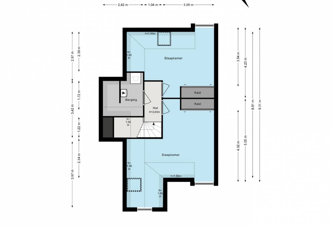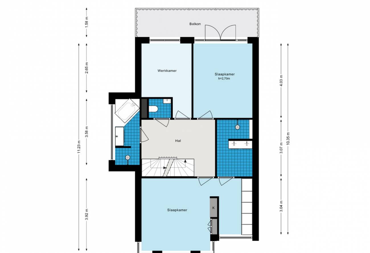 Op deze verdieping zijn nog 2 ruime slaapkamers en een stook-/wasruimte met de opstelplaats van de cv-ketel, de WTW-installatie, het mechanische ventilatiesysteem en de aansluitingen voor wasmachine en droger.