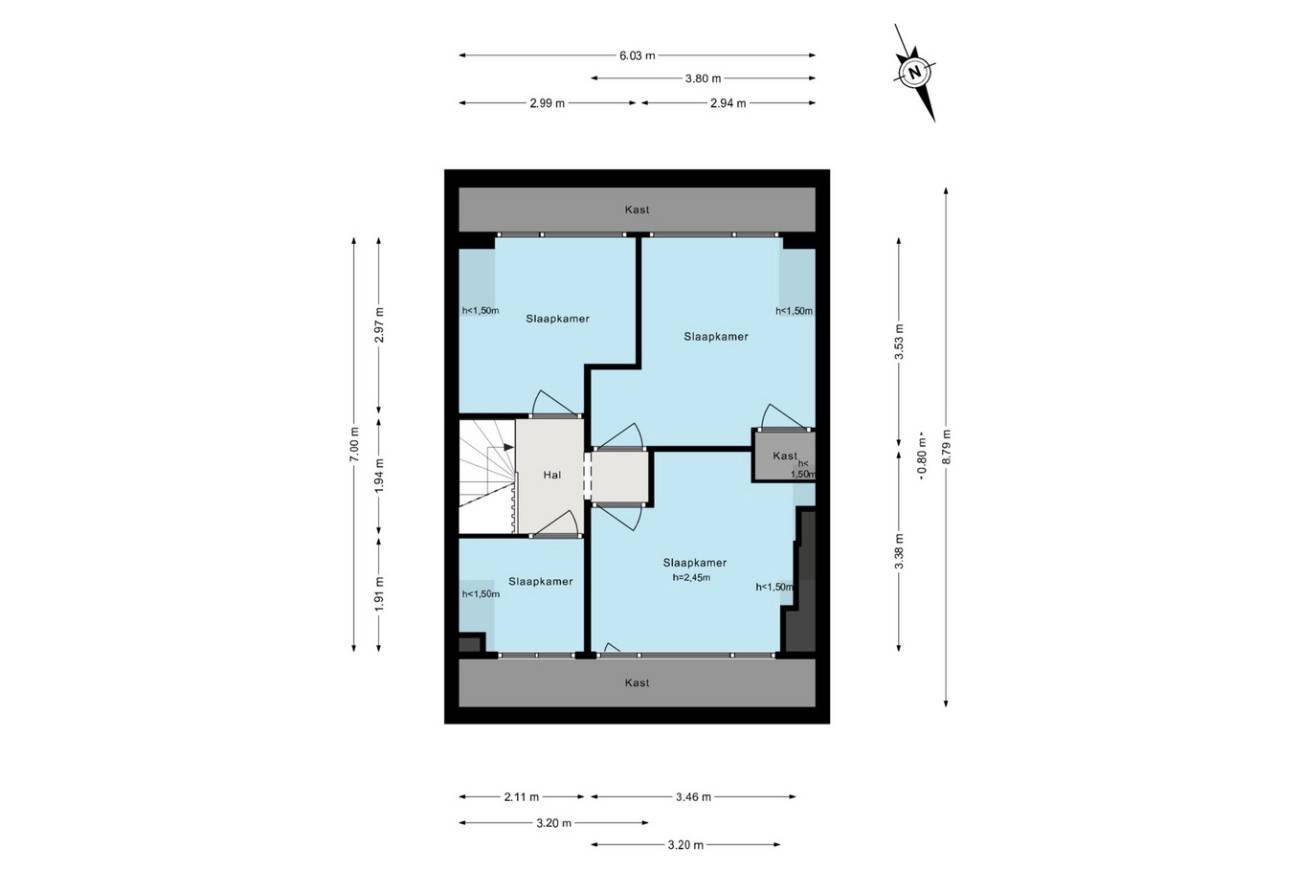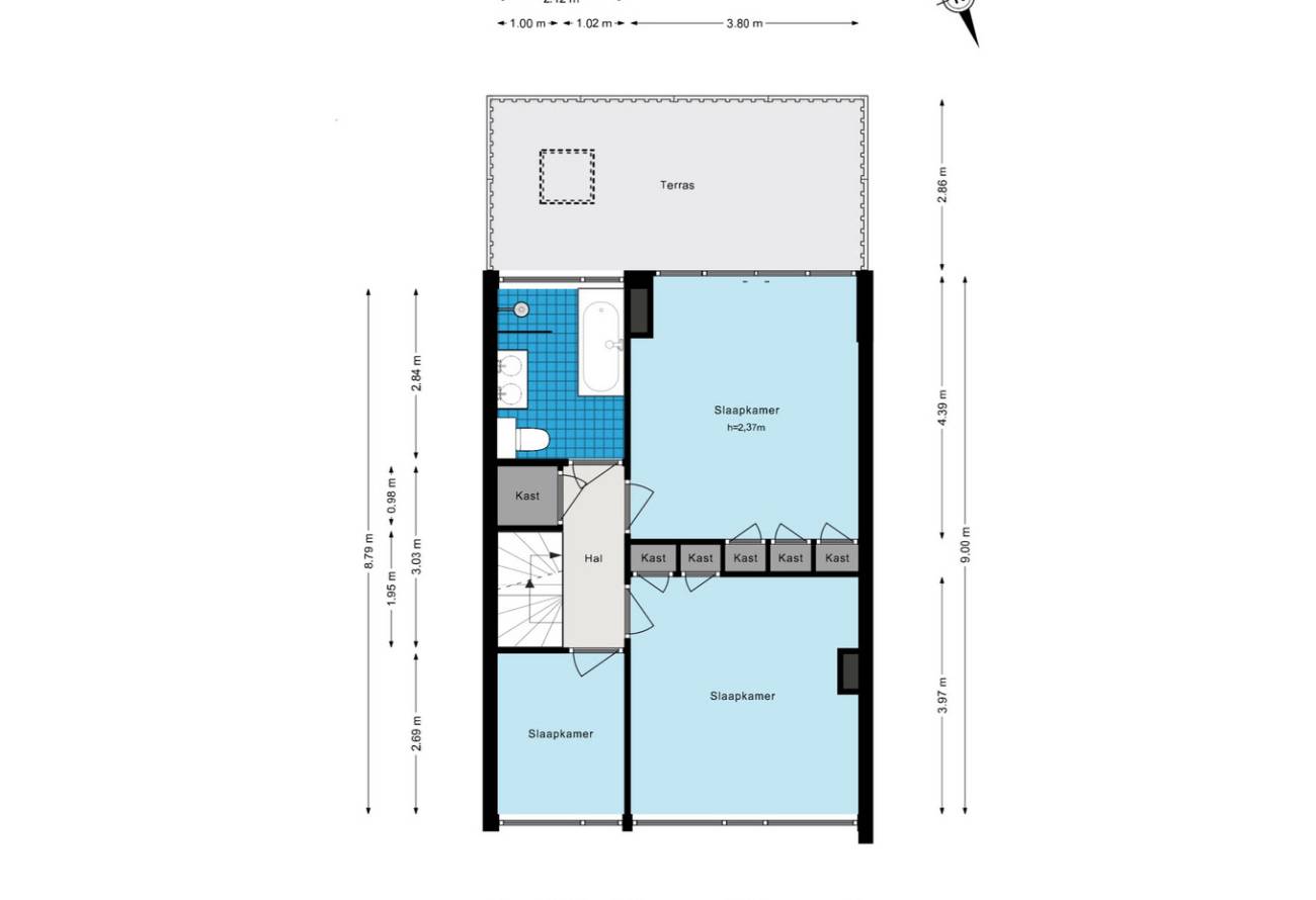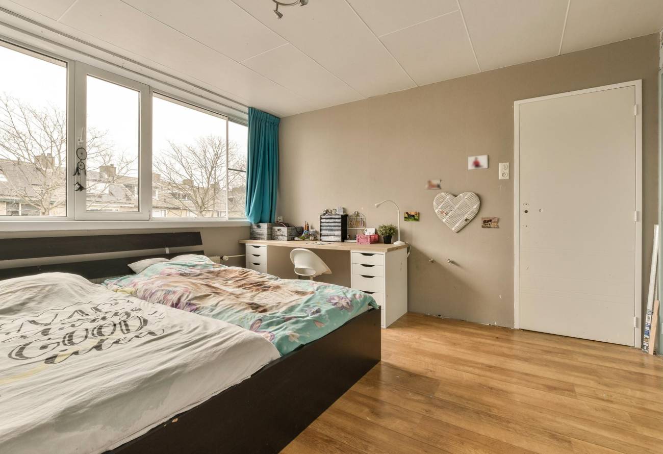 2e Etage: Door de twee grote nieuwe kunststof dakkapellen (2022) zijn er 3 ruime slaapkamers en een werkkamer gerealiseerd op deze etage. En de kamers zijn voorzien van een eikenhouten laminaatvloer.