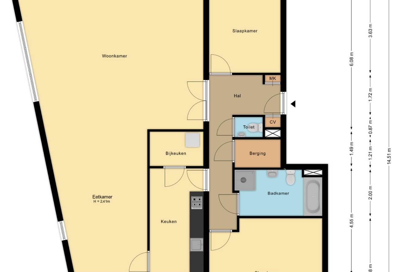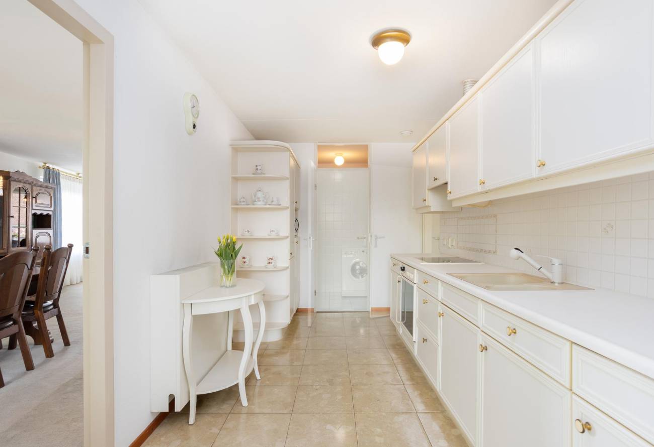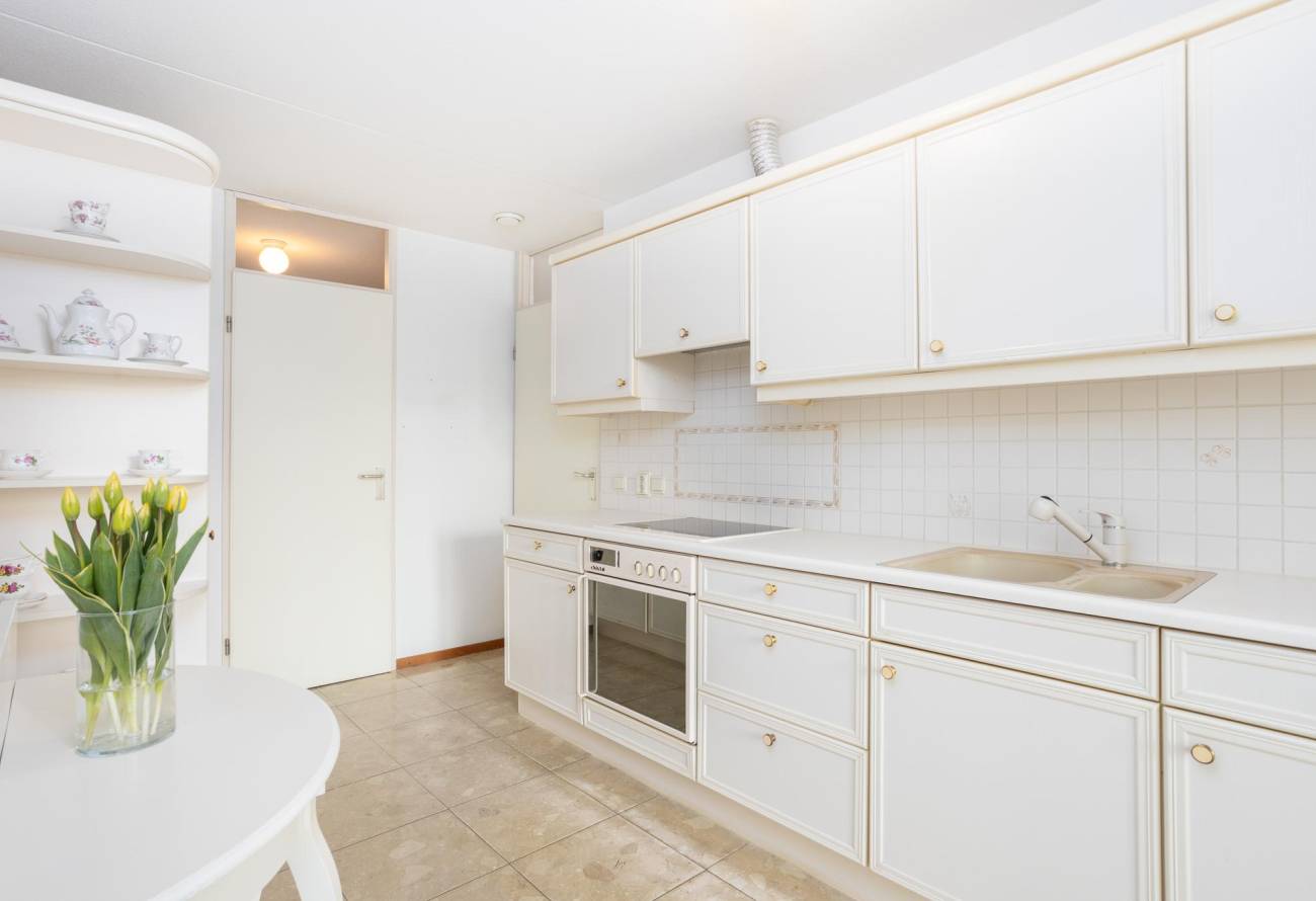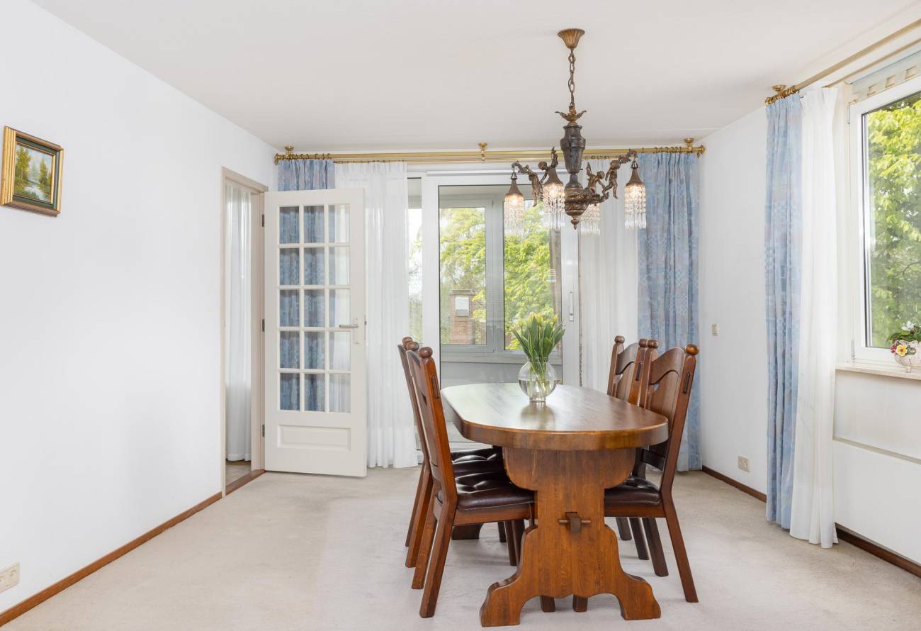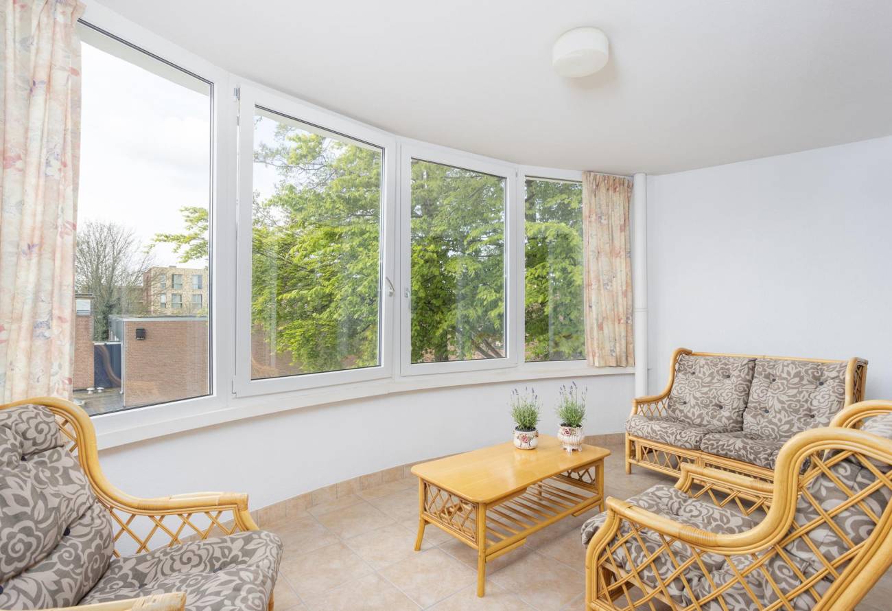 Indeling 2e Etage: Hal met garderobe, toiletruimte, meterkast en cv kast, de zeer grote living van circa 70m² is door de vele raampartijen heerlijk licht, de dichte en ruime keuken is enigszins gedateerd en geeft toegang tot zowel de grote bijkeuken als tot het terras. De royale badkamer heeft zowel een ligbad als douchecabine en een toilet. De hoofdslaapkamer is 22m² en heeft ook toegang tot het terras, de 2e slaapkamer aan de voorzijde is ook ruim te noemen.