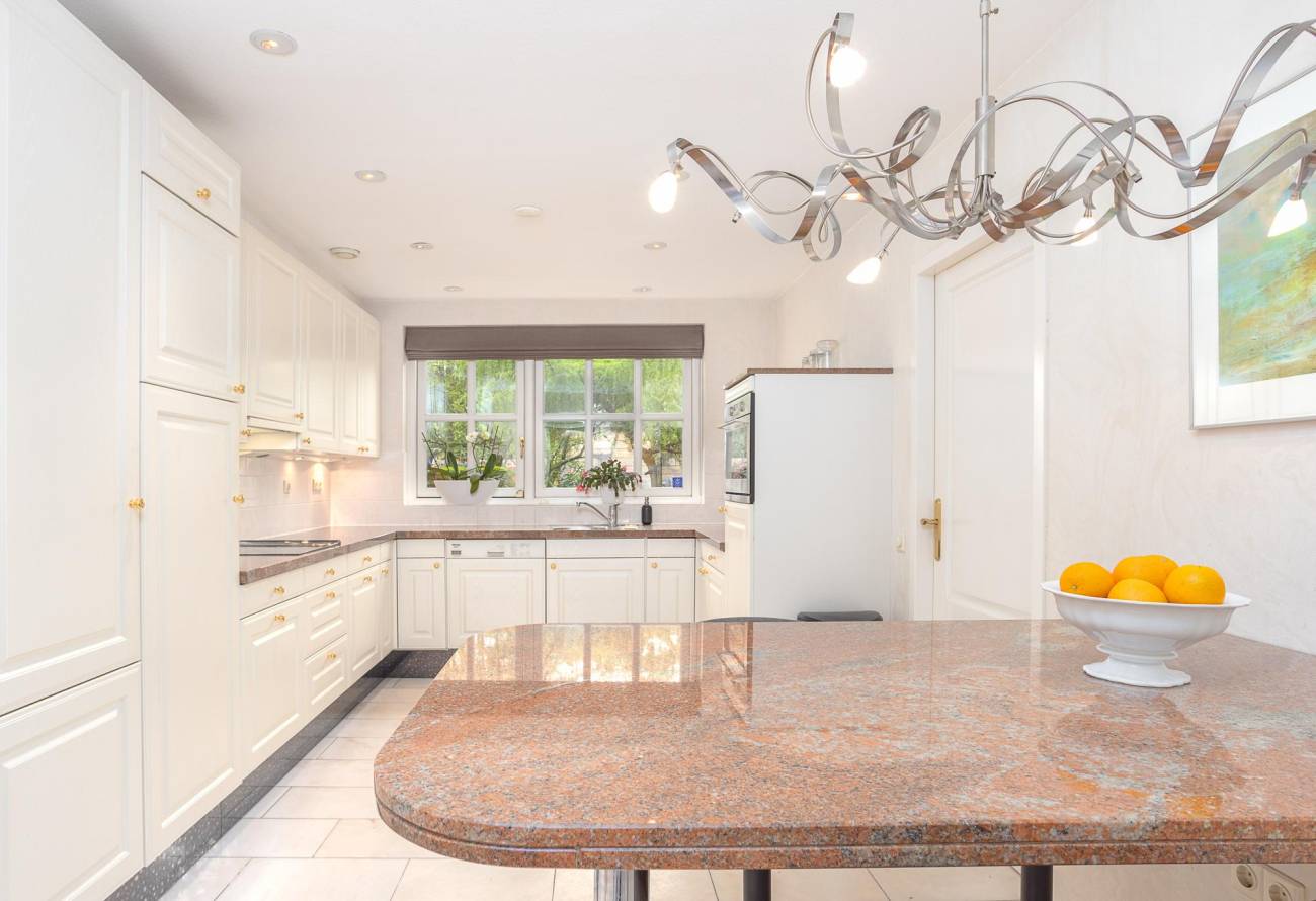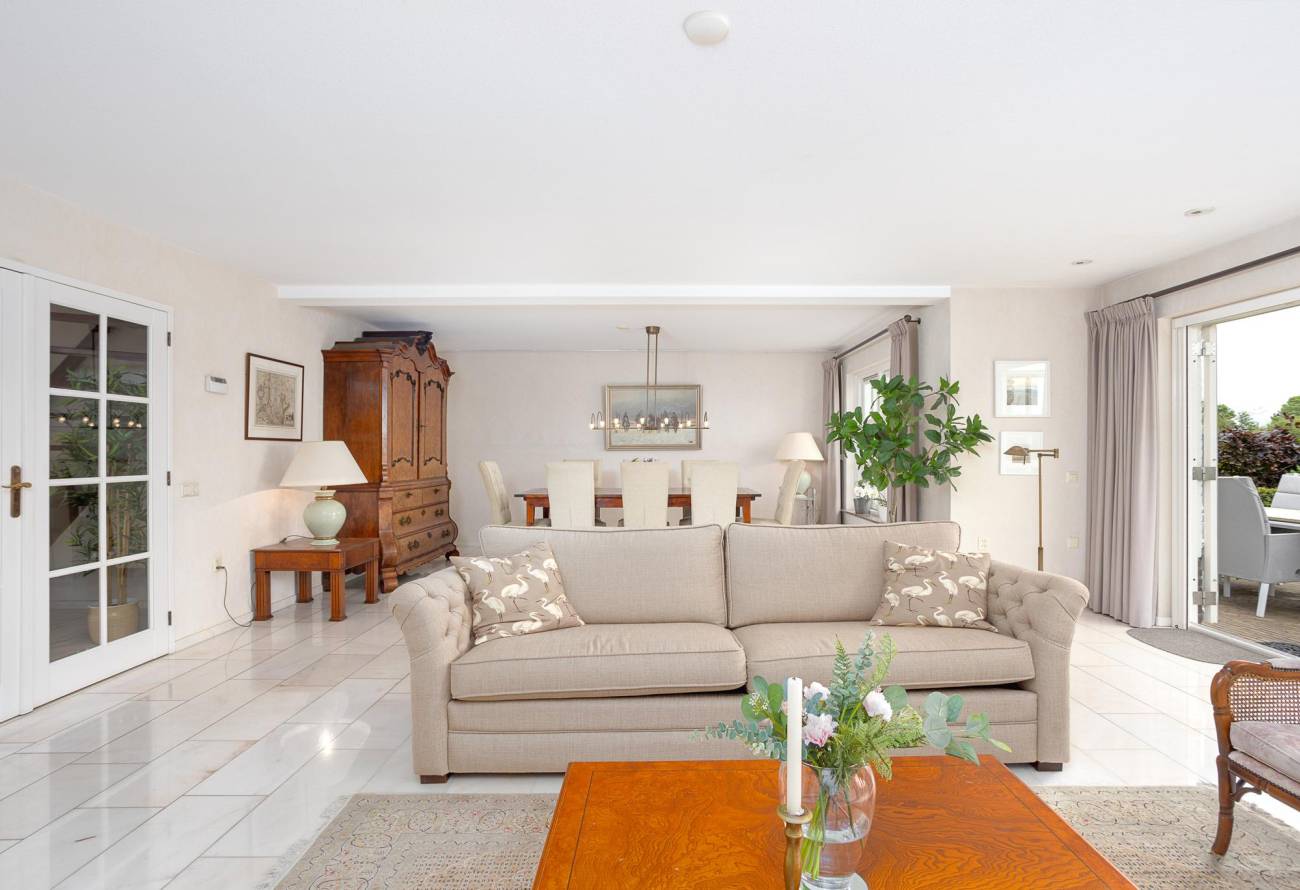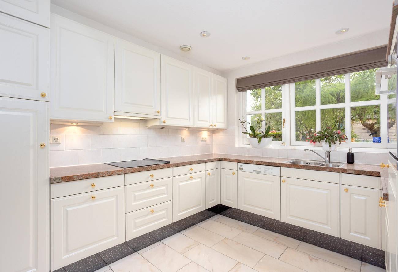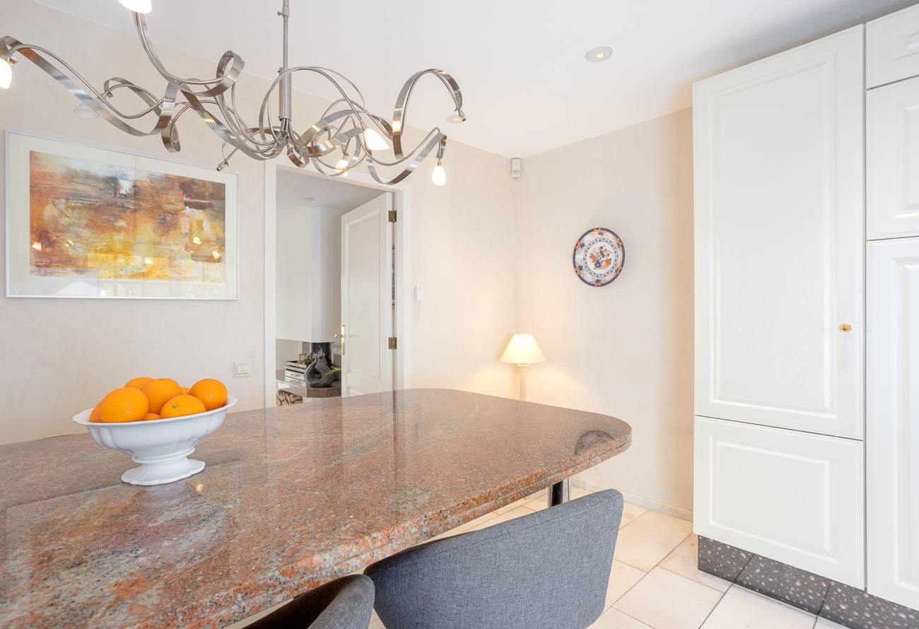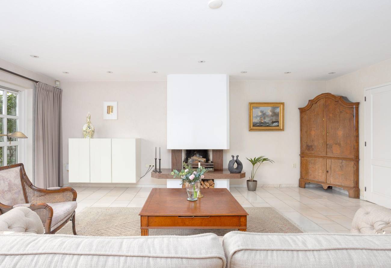 De heerlijk lichte en royale woonkamer nodigt uit voor gezellig samenzijn. Of het nu gaat om een drankje bij de haard of een gezellig diner met familie of vrienden aan een grote tafel, deze woning biedt daar volop mogelijkheid voor. Een enthousiaste kok kan prima overweg met de ruime keuken die voorzien is van een lang aanrechtblad, veel kastruimte en diverse inbouwapparatuur. Vele grote raampartijen zorgen voor veel natuurlijke lichtinval enerzijds en een fraai uitzicht over het water en het landschap anderzijds.
