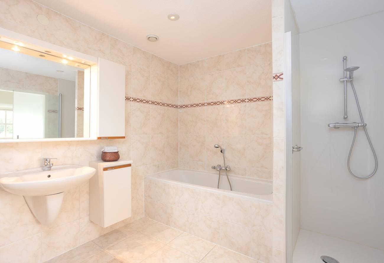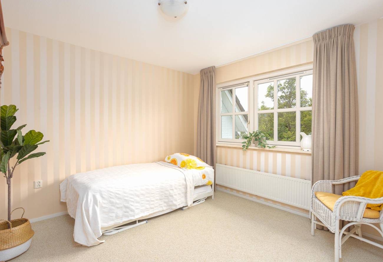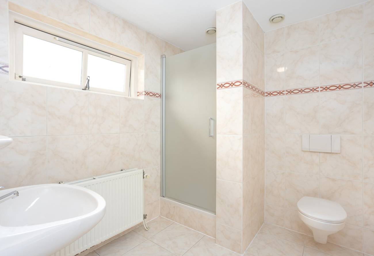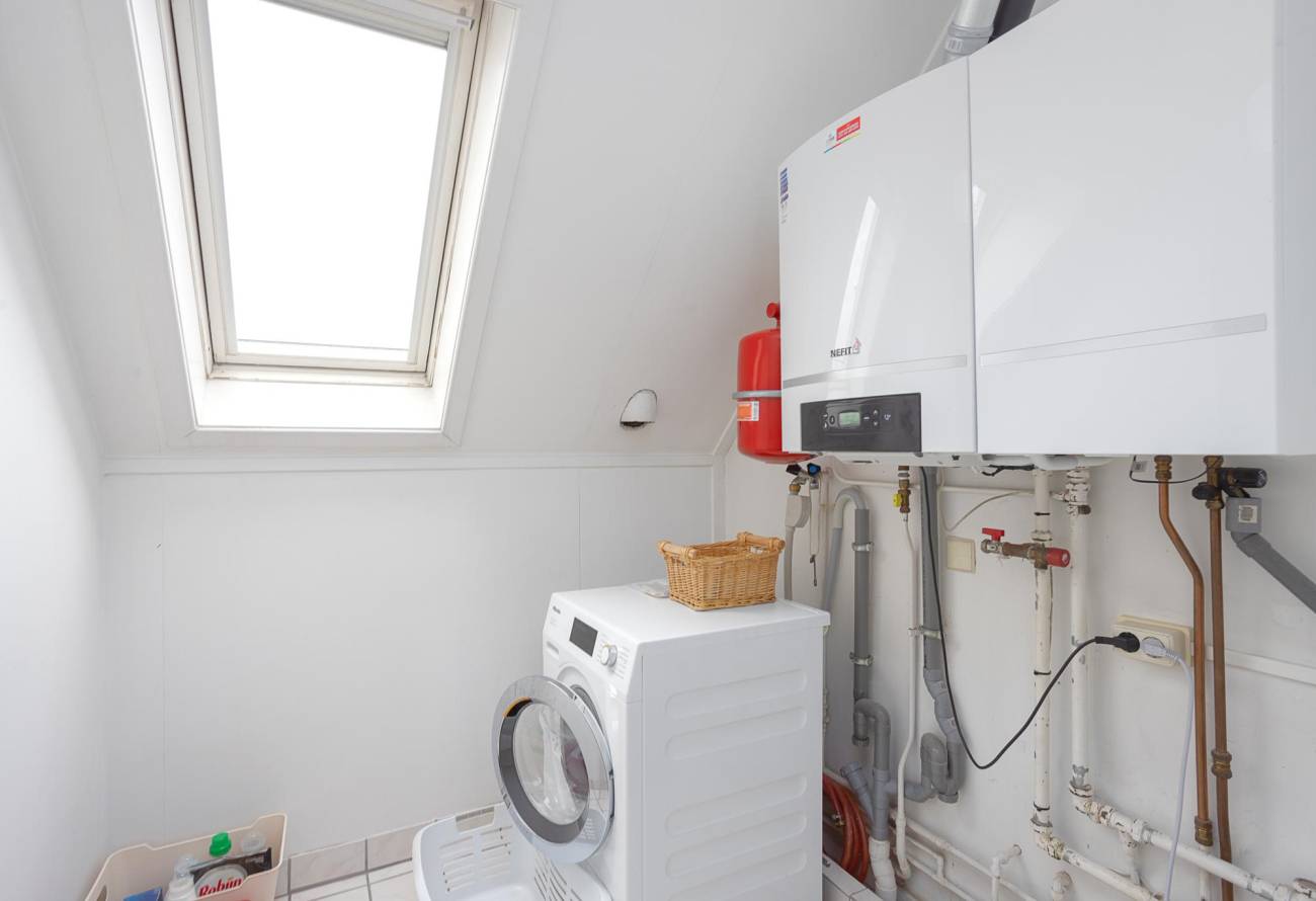 De heerlijk grote slaapkamer met dakkapel en Velux dakraam is eenvoudig tot twee ruime slaapkamers te maken. Hier bevinden zich de sauna en de stoomcabine en tevens is er een aparte betegelde wasruimte.