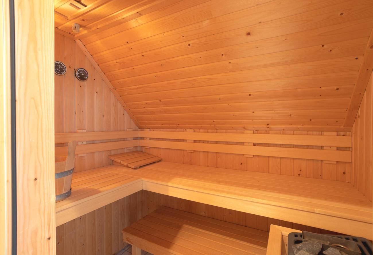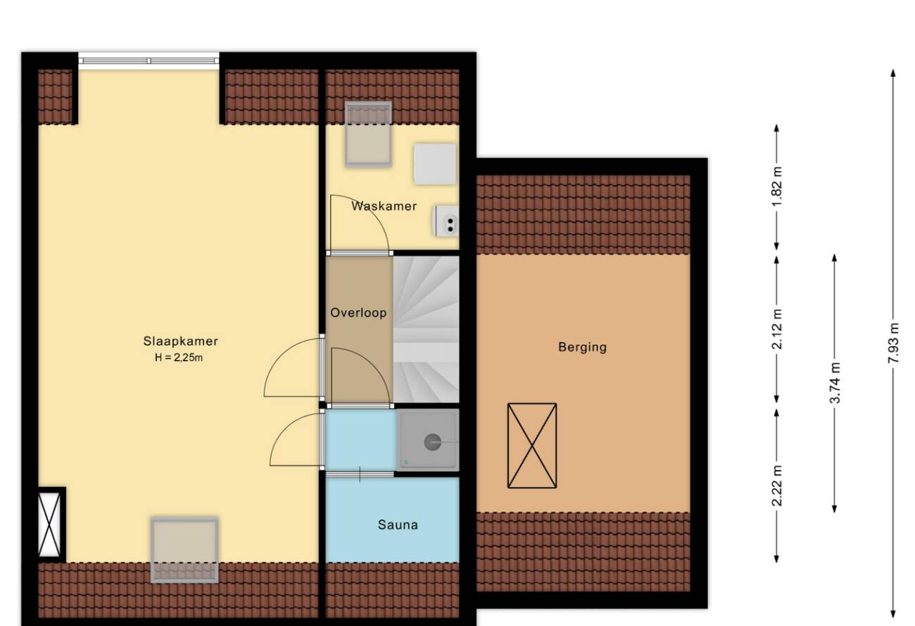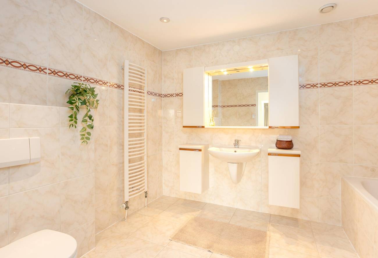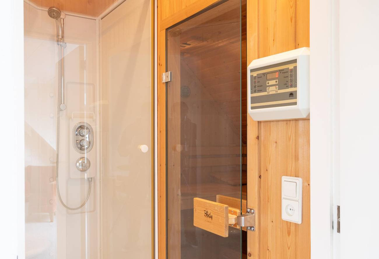 De heerlijk grote slaapkamer met dakkapel en Velux dakraam is eenvoudig tot twee ruime slaapkamers te maken. Hier bevinden zich de sauna en de stoomcabine en tevens is er een aparte betegelde wasruimte.