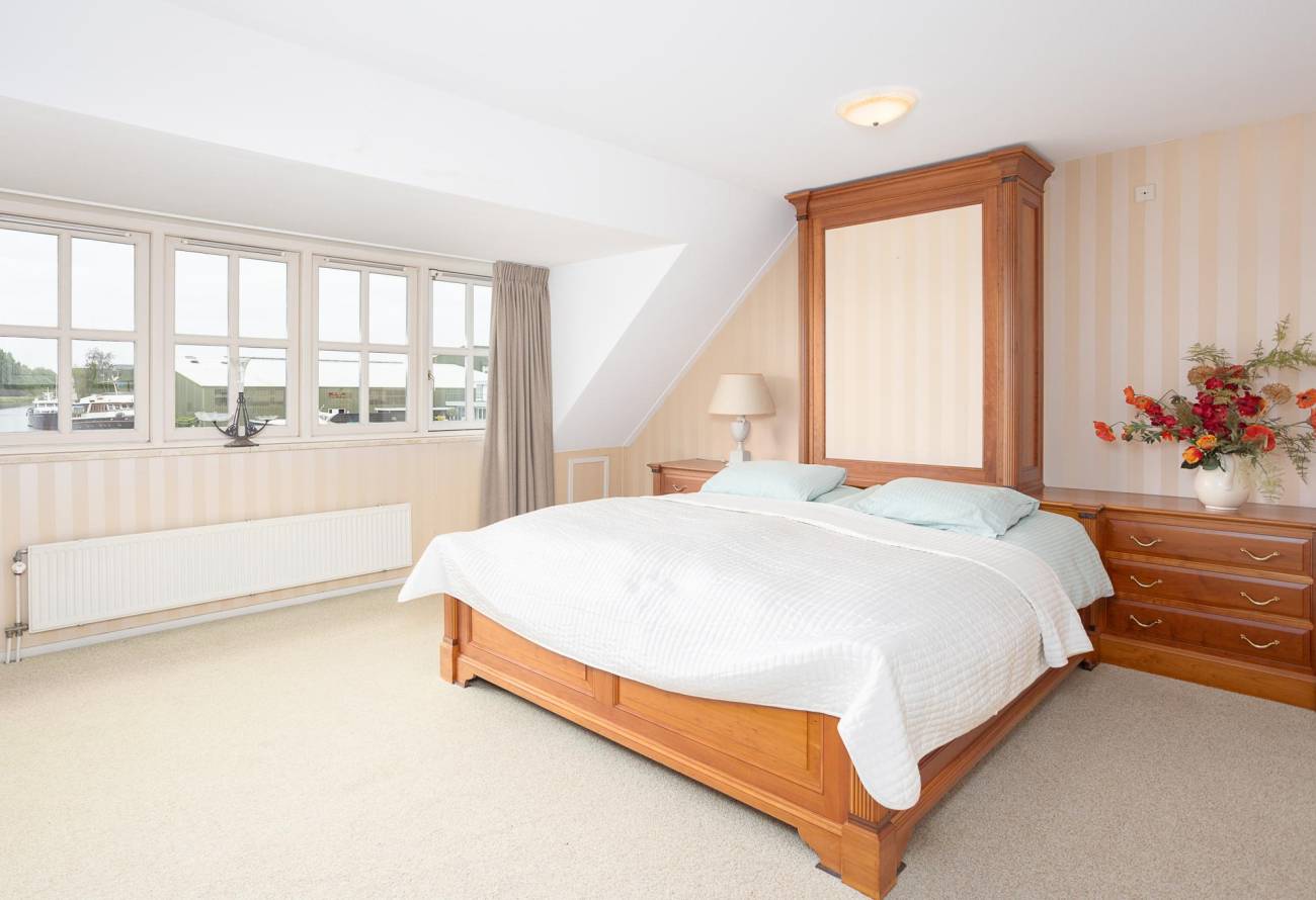 Op deze royaal ingedeelde verdieping bevinden zich ruime 3 slaapkamers. Aan de achterzijde met fraai uitzicht over het water bevinden zich; een riante hoofdslaapkamer met eigen badkamer en een flinke dakkapel, en een tweede grote slaapkamer met loggia en een opbergzolder die eventueel te verbouwen is tot entresol. De derde slaapkamer die is aan de voorzijde gelegen met directe toegang tot de tweede badkamer, die ook vanaf de overloop is te bereiken.