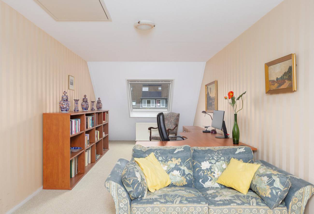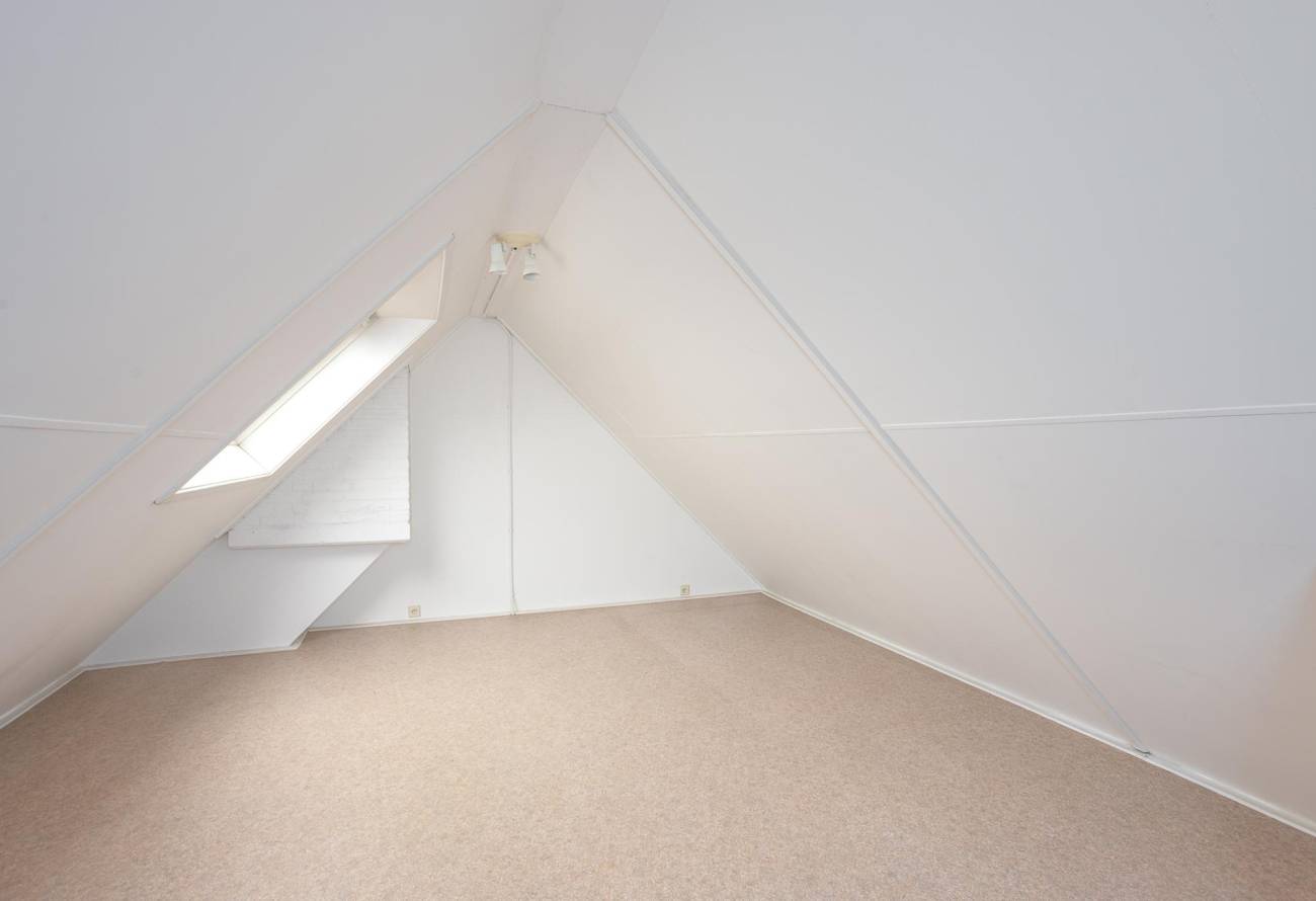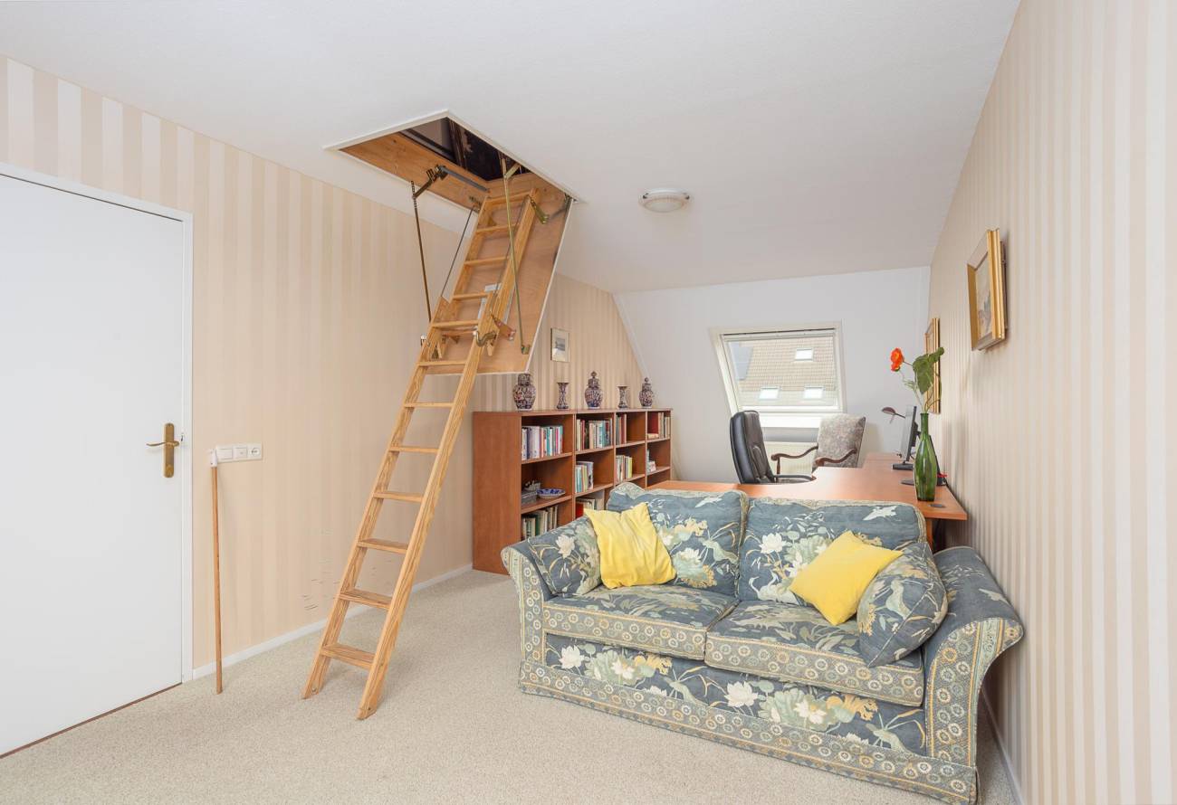 De zolderverdieping is met een vaste trap te bereiken en naar eigen idee te gebruiken; een heerlijke extra bergruimte of wellicht een extra (gasten)kamer.