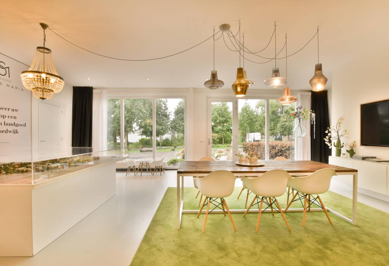 Via de toegangspoorten van Landgoed Santa Maria is direct links het riante perceel met bungalow, met aan de voorzijde een deur naar de riante woon/eetkamer met open keukenblok: Deze grote ruimte kan eenvoudig worden aangepast, door het b.v. uitbreiden van de keuken om er een fantastische en gezellige living van te maken. De fraaie hoge ramen in deze ruimte met fantastisch lichtinval en de lichte duurzame gietvloer hebben alvast een voorzetje voor u gemaakt.