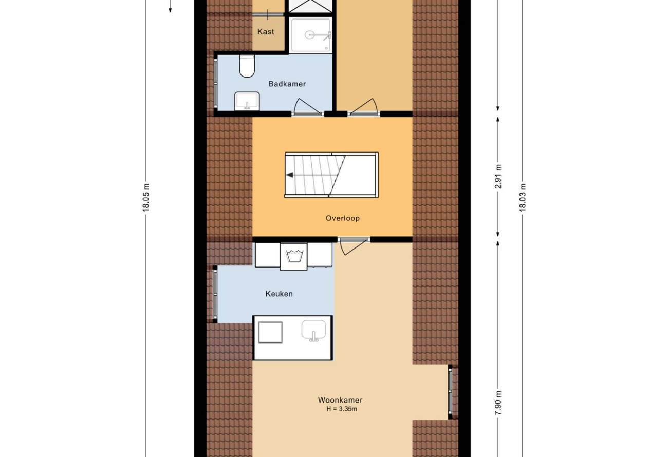 De 2e etage verwelkomt je met een charmante woonkamer inclusief open keukenblok. Deze ruimte ademt een gezellige sfeer en biedt de perfecte plek om te relaxen na een lange dag. De aanwezigheid van een badkamer op deze etage voegt extra comfort en gemak toe aan dit leuke appartement.
