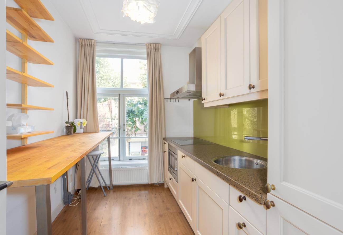 Stap binnen, via entree aan de voorzijde in dit sfeervolle appartement met een royale woonkamer aan de voorzijde, badend in natuurlijk licht. De grote keuken met een prachtig spoeleiland is een droom voor elke kookliefhebber. Verder in de lichte hal een toiletruimte met daarnaast een doucheruimte, extra leuk detail zijn fraaie glas in loodramen. Aan de achterzijde is een 2e woonkamer welke momenteel in gebruik is als slaapkamer.