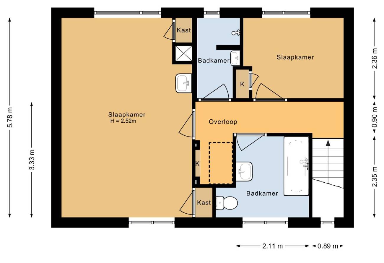 | Bathrooms | 2 badkamers, 1 aparte toiletten |