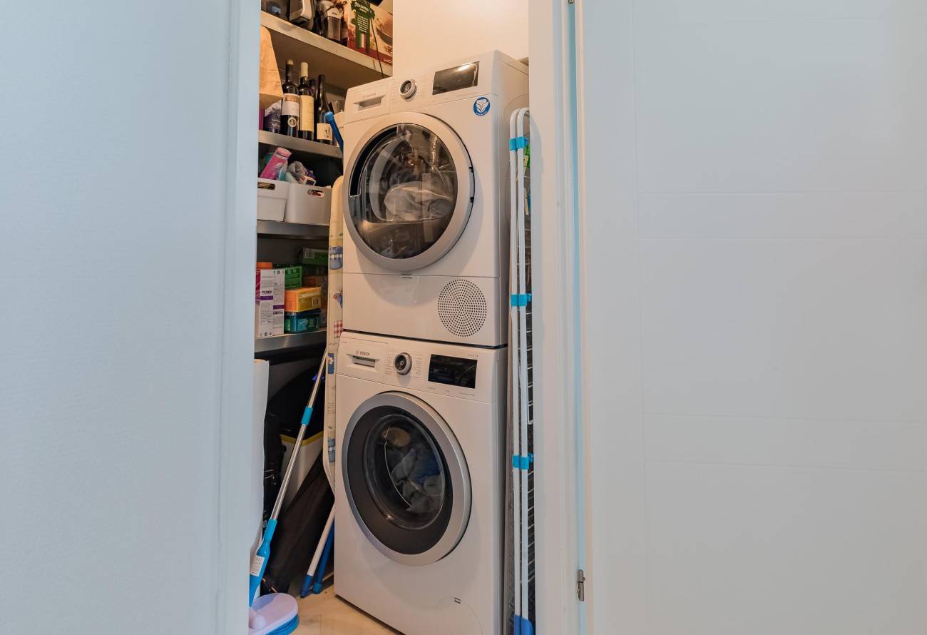 Vanuit het appartement is er een berging met o.a. de combiketel en aansluitingen voor was-apparatuur. Tevens is er een berging op de begane grond.