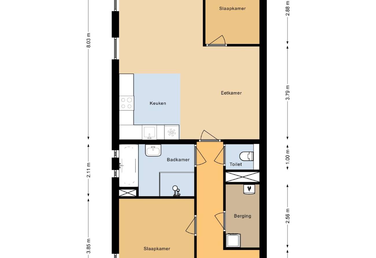 | Rooms | 3 rooms (2 slaapkamers) |