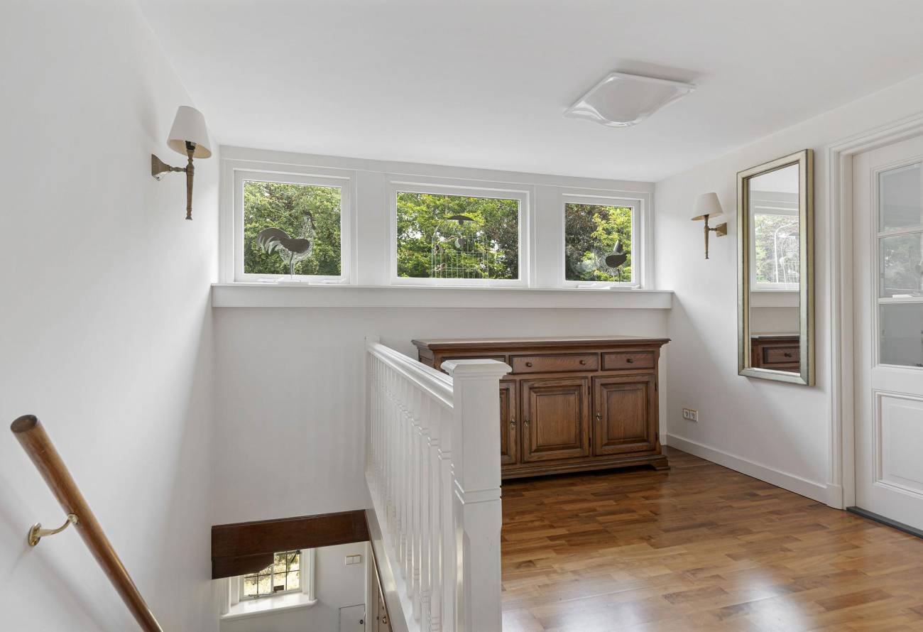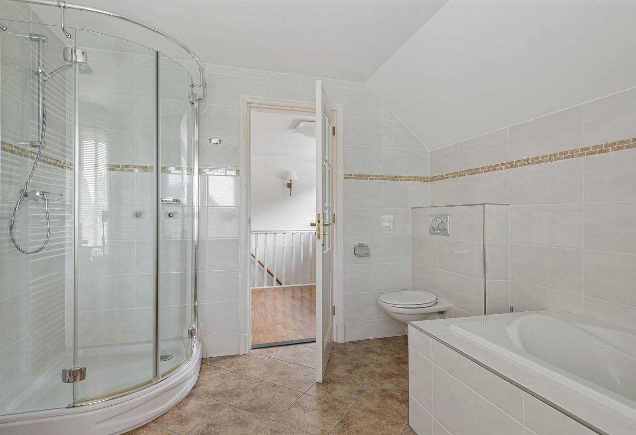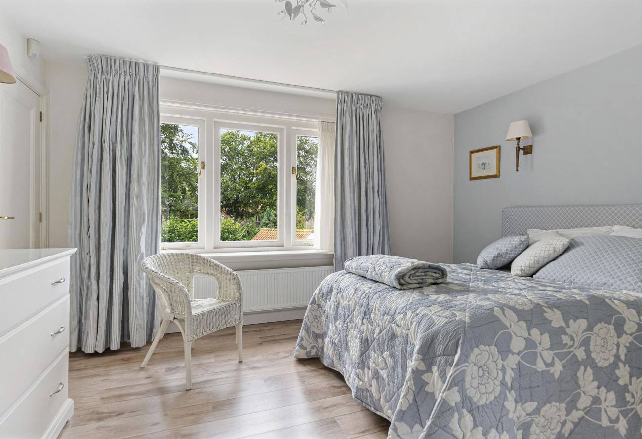 Ruime overloop met 2 slaapkamers gelegen aan de achterzijde, beide slaapkamers zijn ca 15m². De hoofdslaapkamer beschikt over een badkamer ensuite, welke is voorzien van een douche, toilet en wastafelmeubel. De andere slaapkamer beschikt over een heerlijk balkon gelegen op het zuidwesten. De tweede badkamer is toegankelijk vanuit de overloop en is voorzien van een ligbad, toilet, wastafelmeubel en douche. De vliering is bereikbaar door middel van een vlizotrap. Vanwege de nokhoogte van 2,3m zijn er mogelijkheden om in de toekomst hier een extra slaapkamers te creëren.