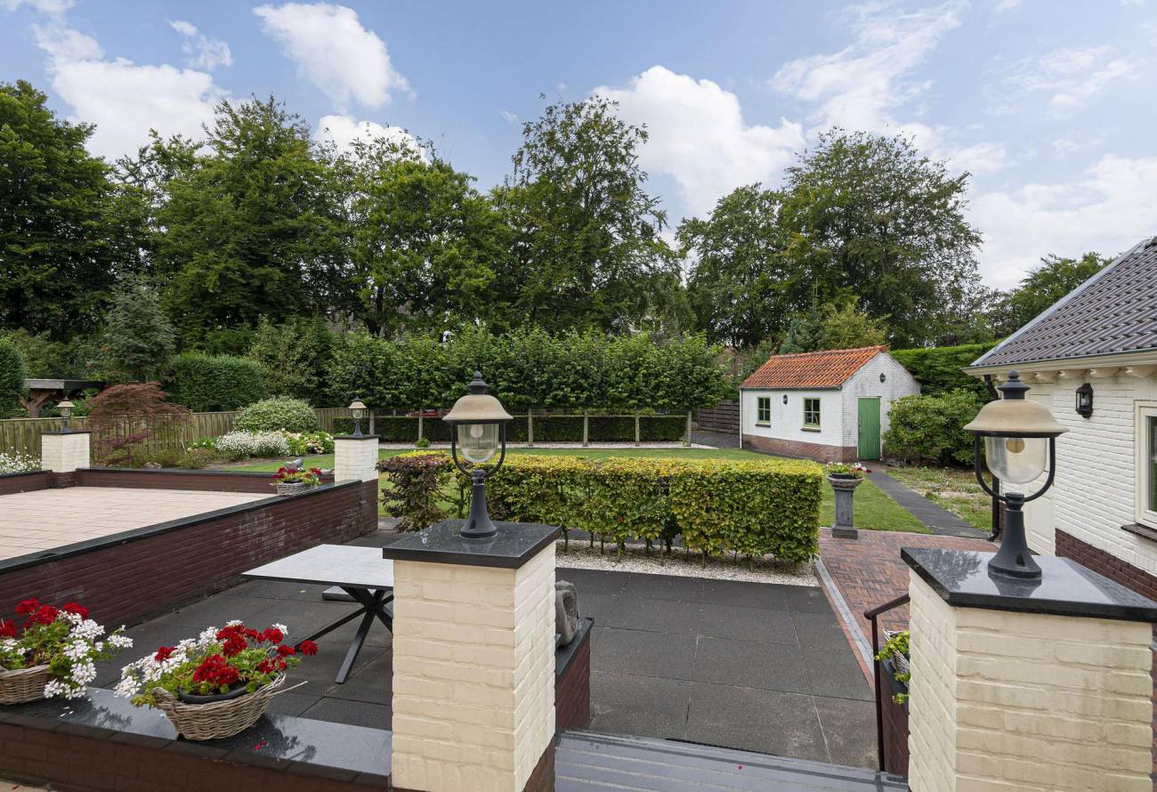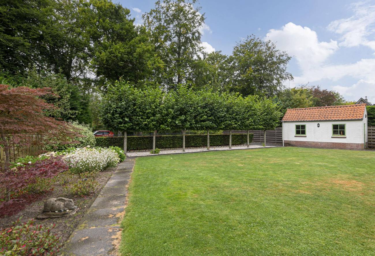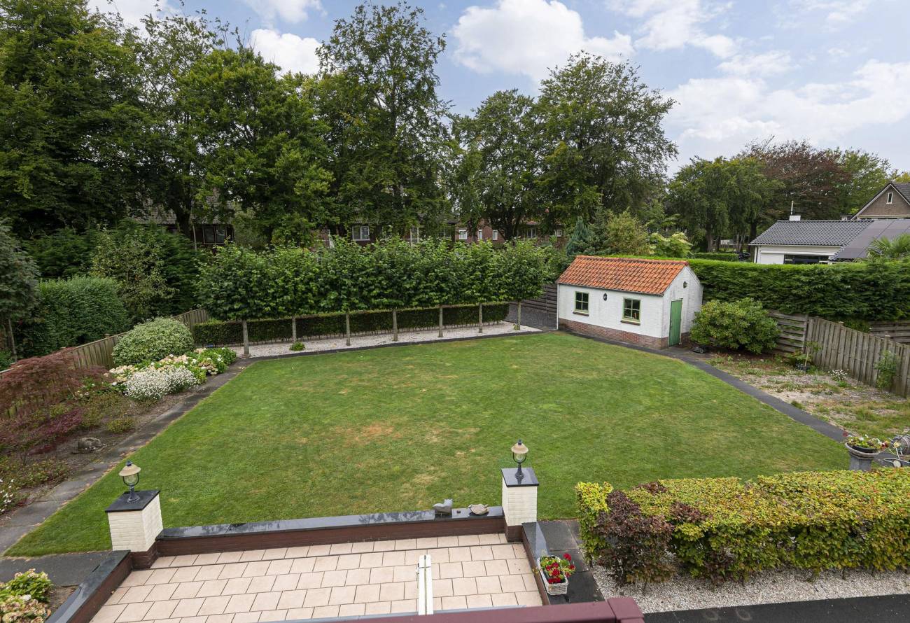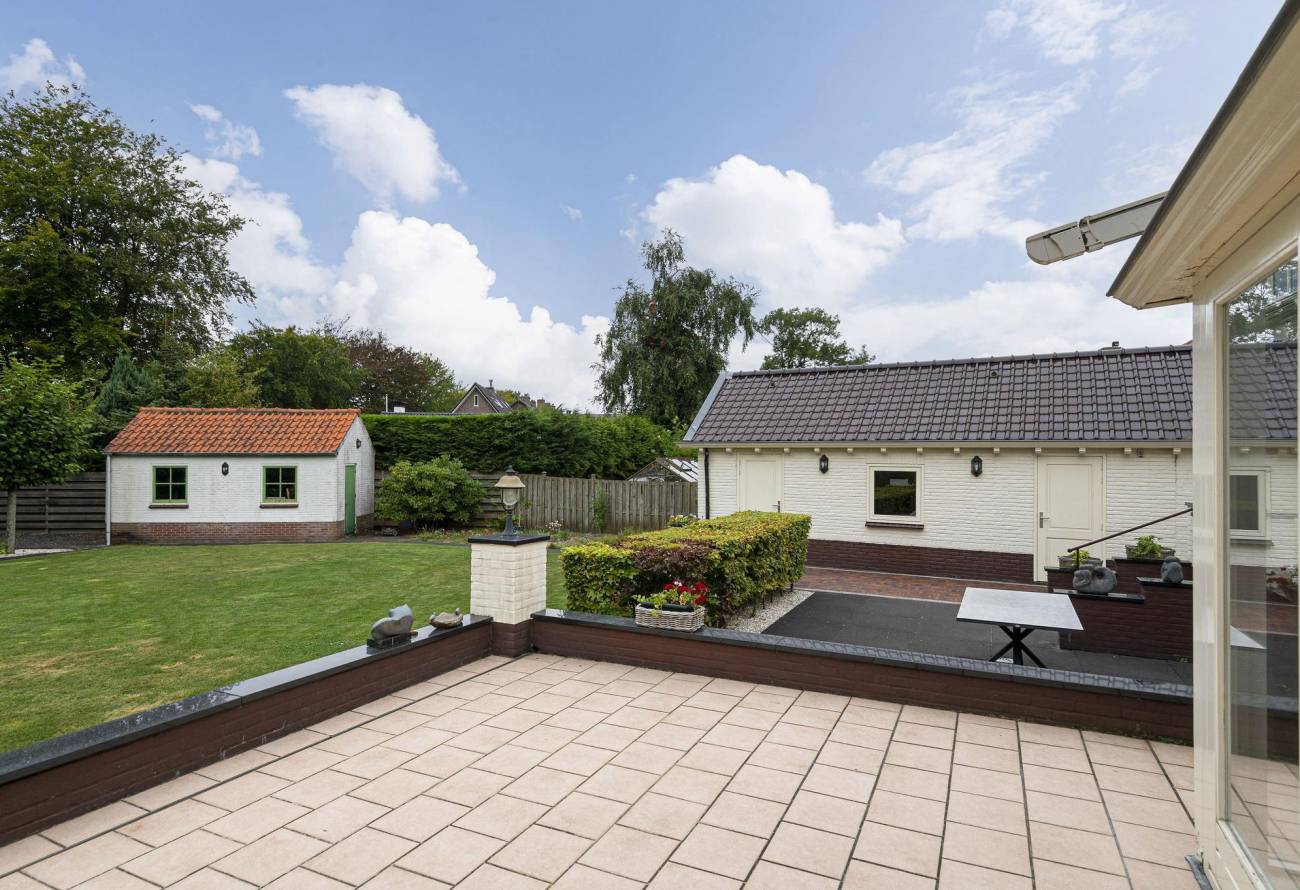 Fraai aangelegde tuin met twee oprijlanen, meerdere terrassen en biedt aan zee aan speelruimte voor de kinderen. De garage heeft een apart toilet en biedt genoeg ruimte voor de auto. Daarnaast is er nog een extra garage aan de achterzijde gelegen, welke een oppervlakte heeft van ca 16m².