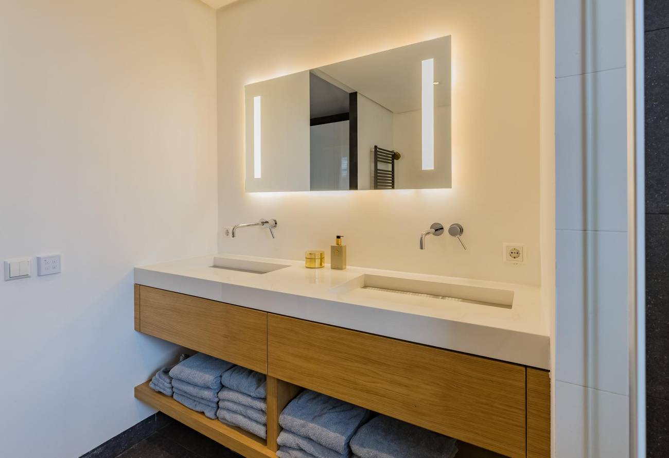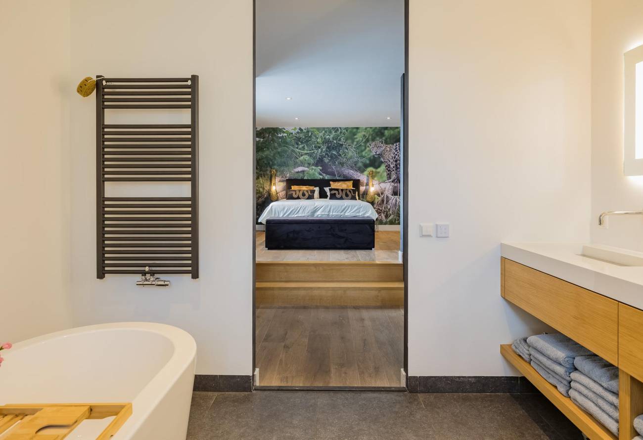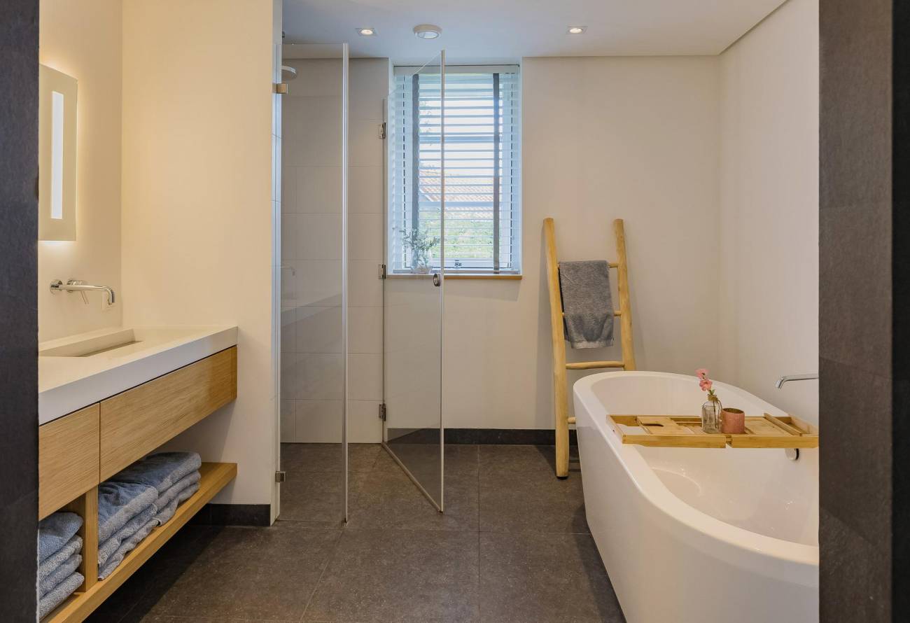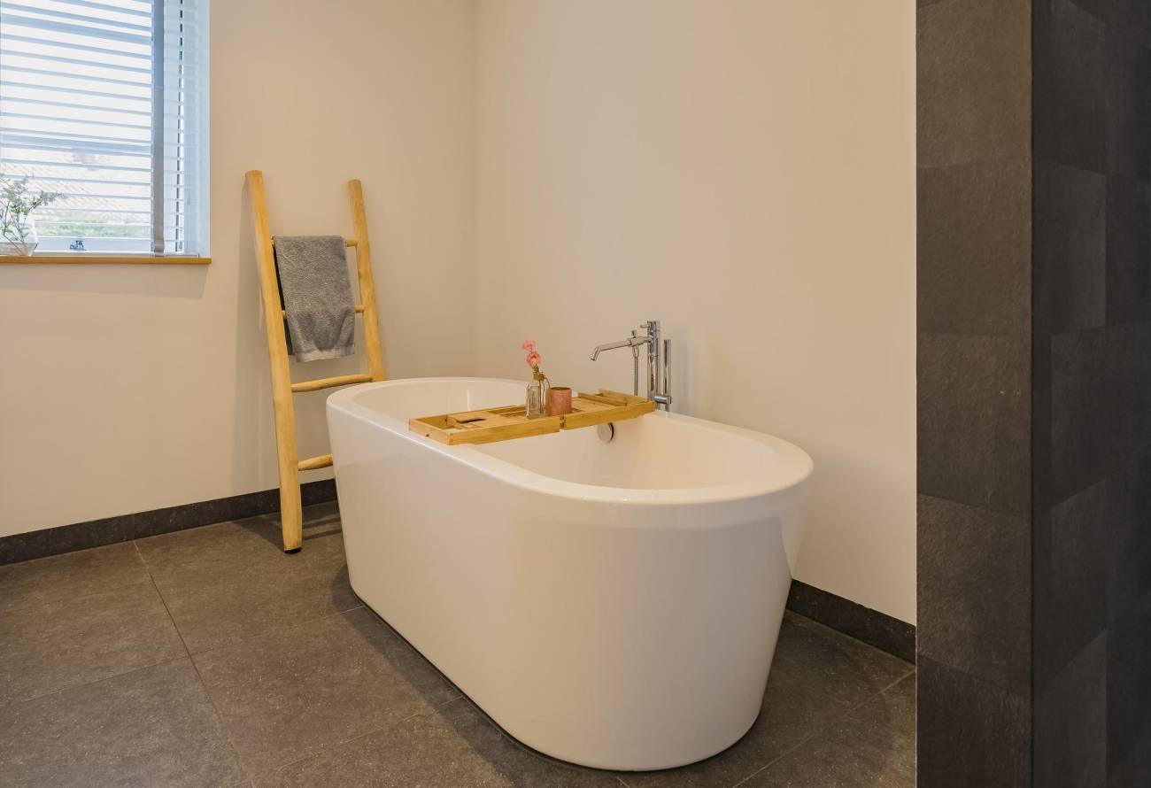 Boven beschik je over vijf ruime slaapkamers, twee stijlvolle badkamers, waarvan één en-suite met ligbad en inloopdouche. Er is een toiletruimte en een wasruimte.