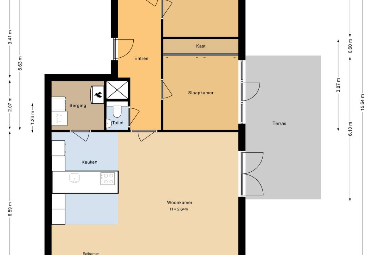 Ruime entree/ gang met toiletruimte en toegang tot alle ruimtes.