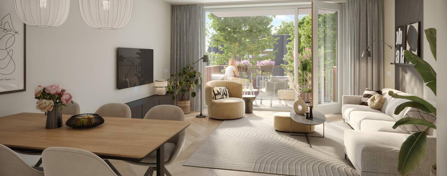 - Koopsomindicaties 2 hoekappartementen (AC) met woonoppervlakte van circa 47m2 vanaf € 298.809,- v.o.n*.