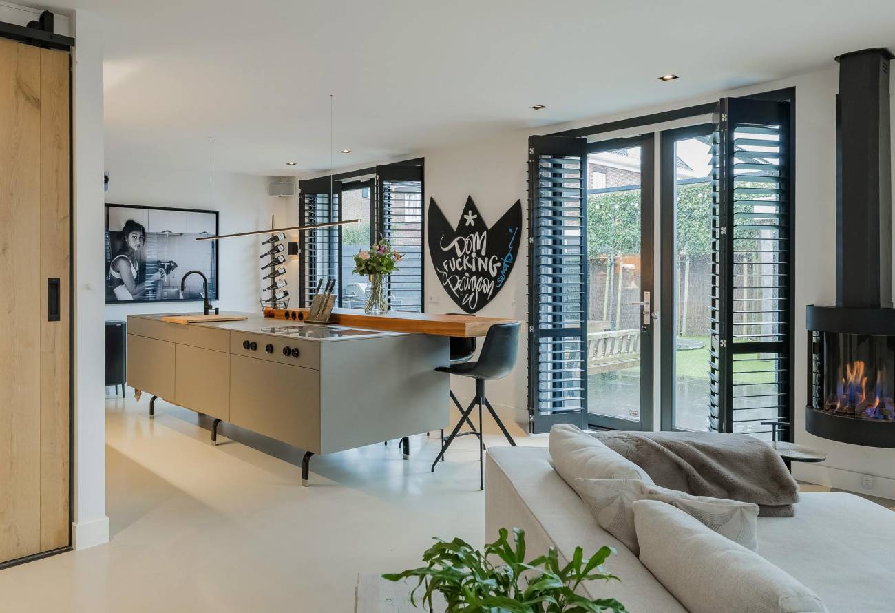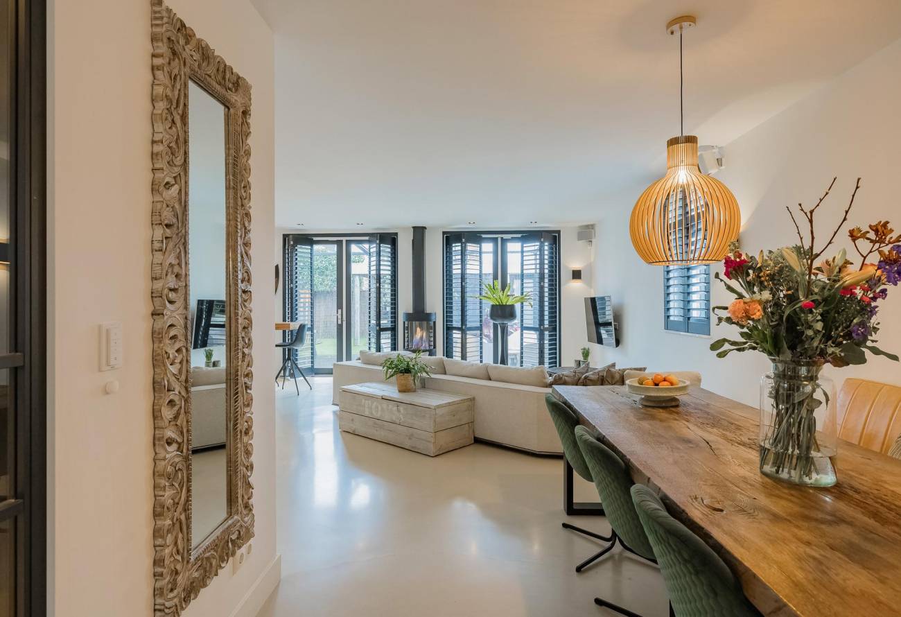 In de living is plaats voor een grote eettafel voor gezellige diners met familie en vrienden. Aansluitend is er de zithoek die tuingericht is.