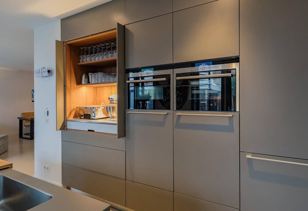 De sfeervolle keuken (Bulthaup) is ook tuingericht, heeft een spoel-/kookeiland en diverse inbouwapparatuur. 3 Paar hoge openslaande deuren zorgen voor veel lichtinval, een mooi uitzicht en toegang tot de tuin (ZW) met veranda.