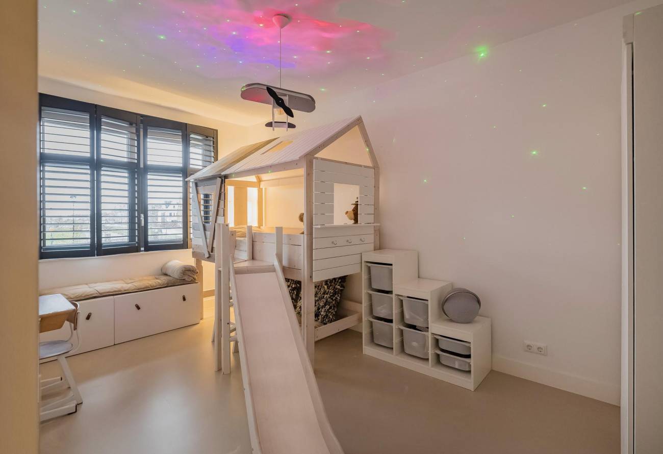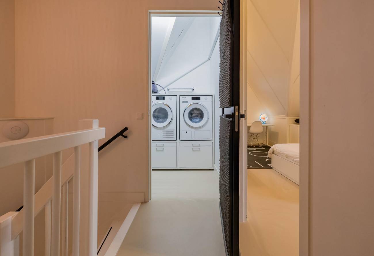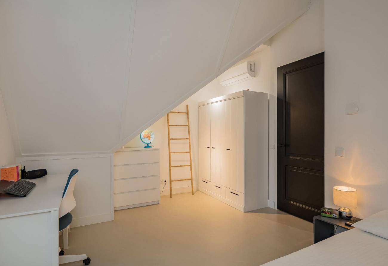 Op deze verdieping zijn 2 grote slaapkamers, een 2e moderne badkamer, een ruimte voor de wasapparatuur en de warmtepomp en een technische ruimte voor de cv-ketel.