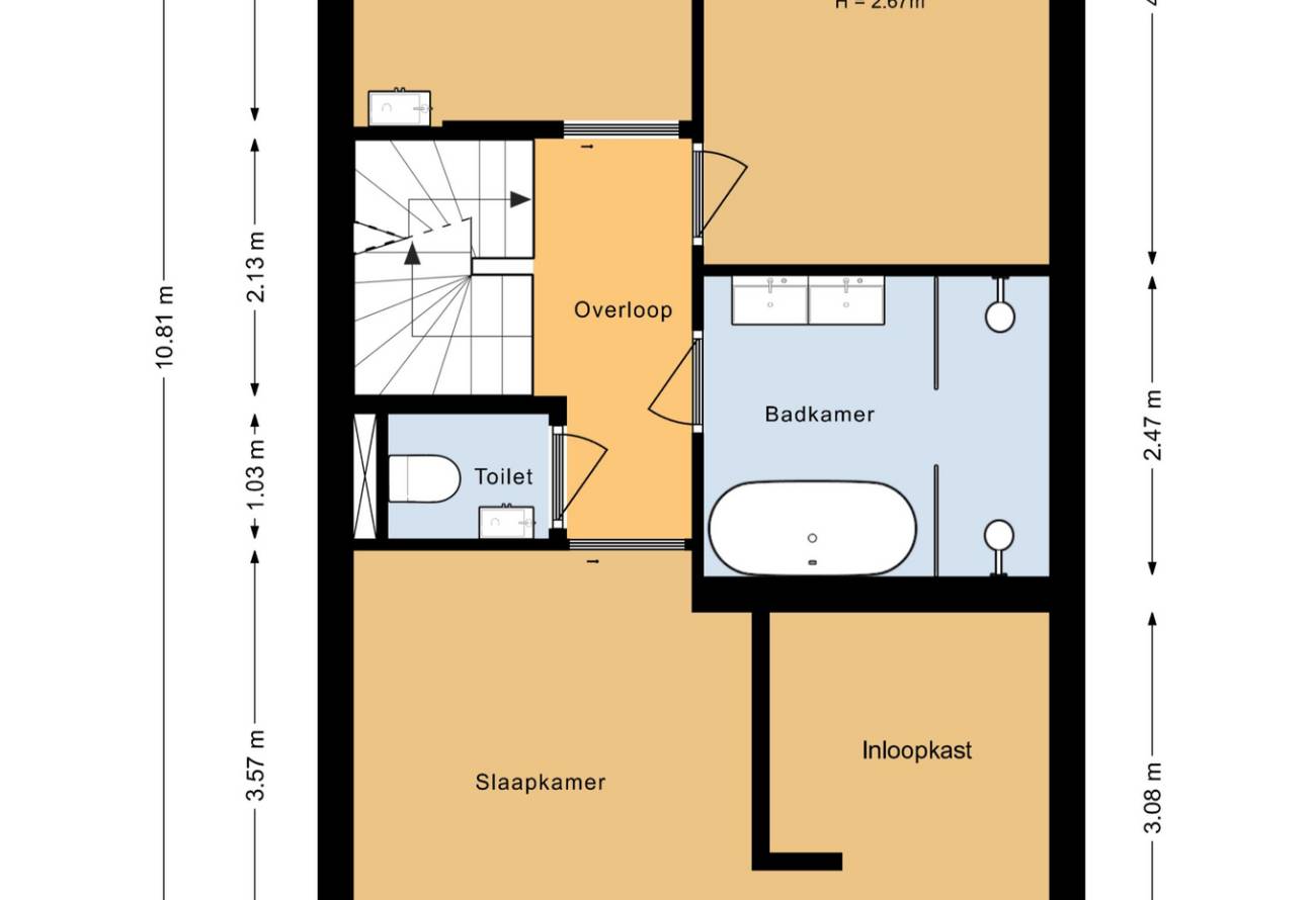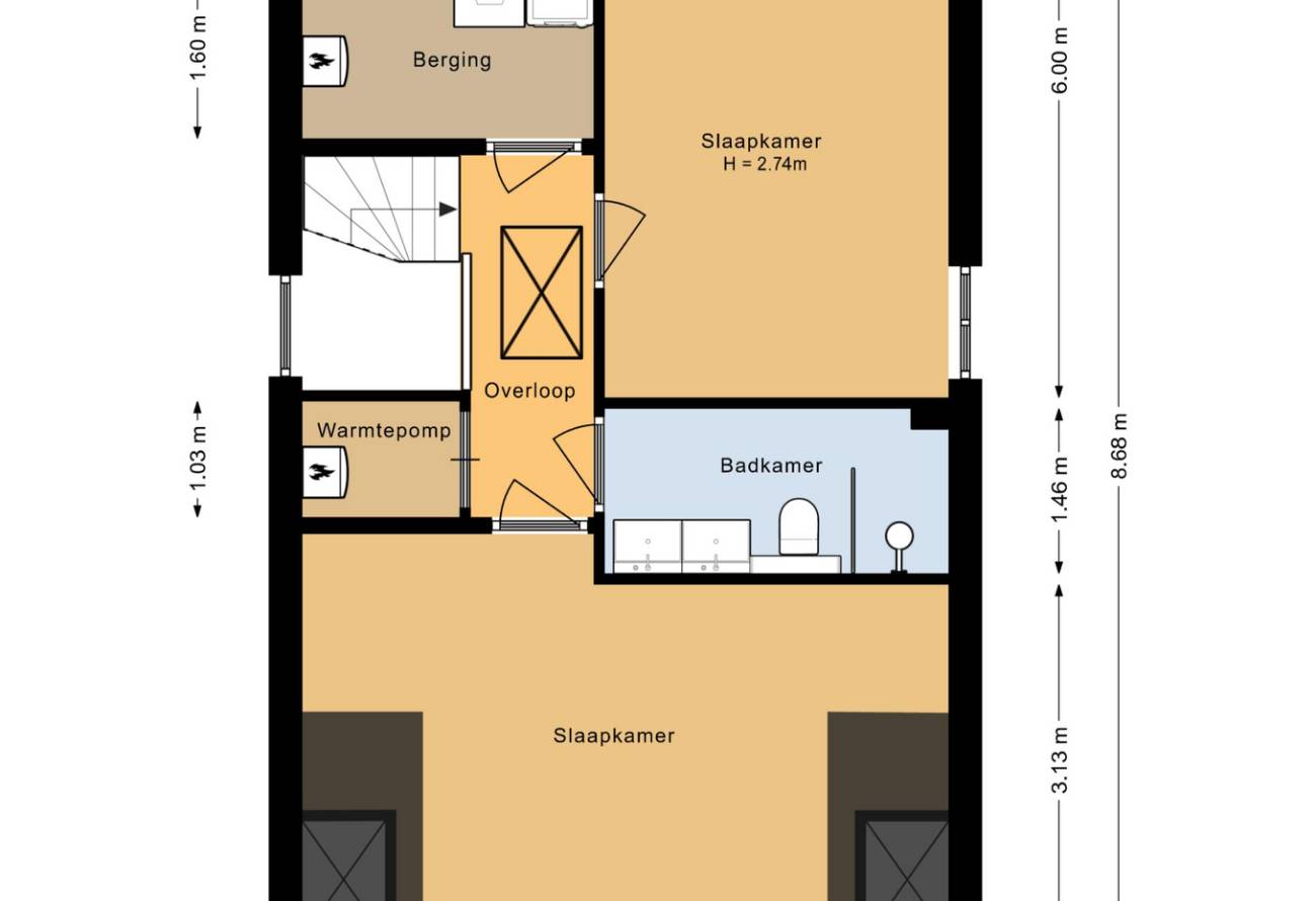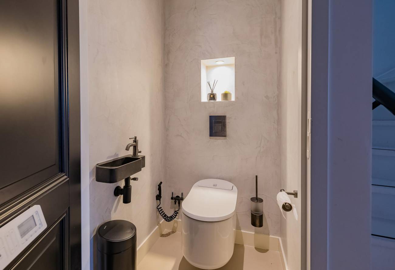Op deze verdieping zijn 2 grote slaapkamers, een 2e moderne badkamer, een ruimte voor de wasapparatuur en de warmtepomp en een technische ruimte voor de cv-ketel.