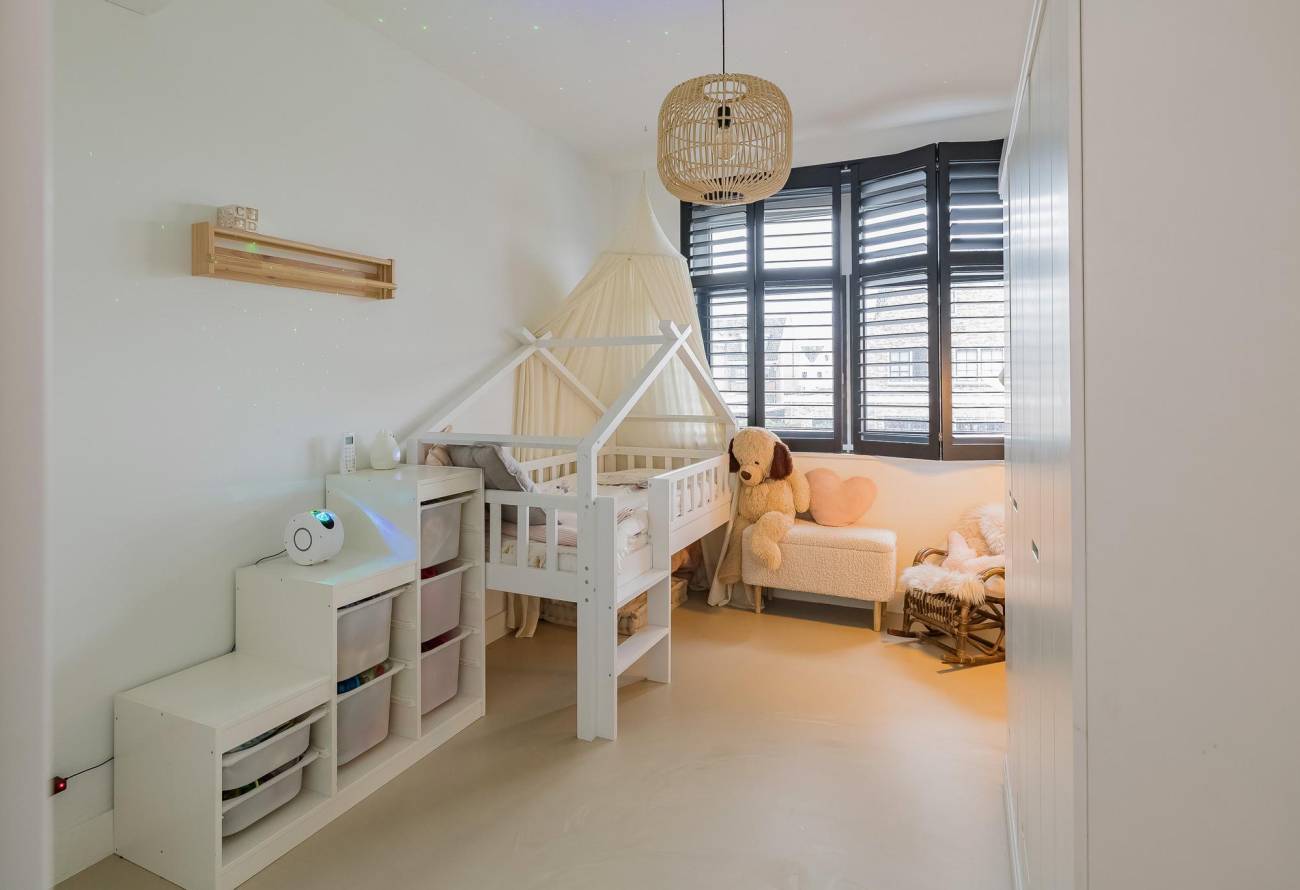 De eerste verdieping heeft 3 ruime slaapkamers met grote ramen, een moderne badkamer met o.a. een ligbad en een separate toiletruimte met een spa-toilet. De ouderslaapkamer heeft een eigen kleedruimte.