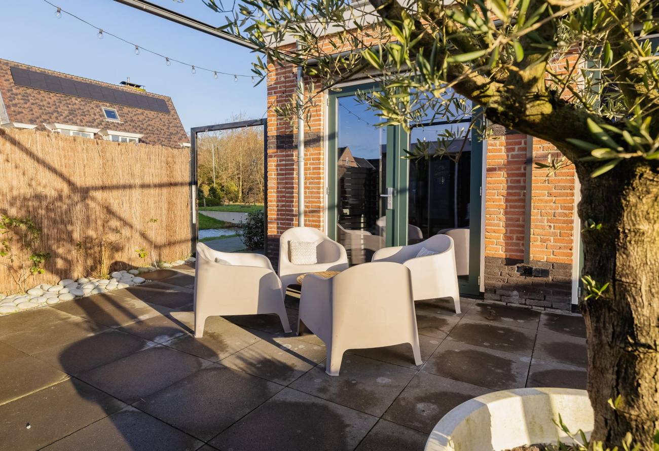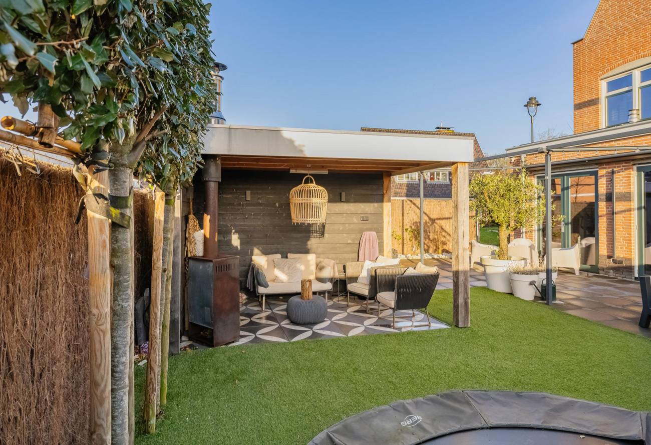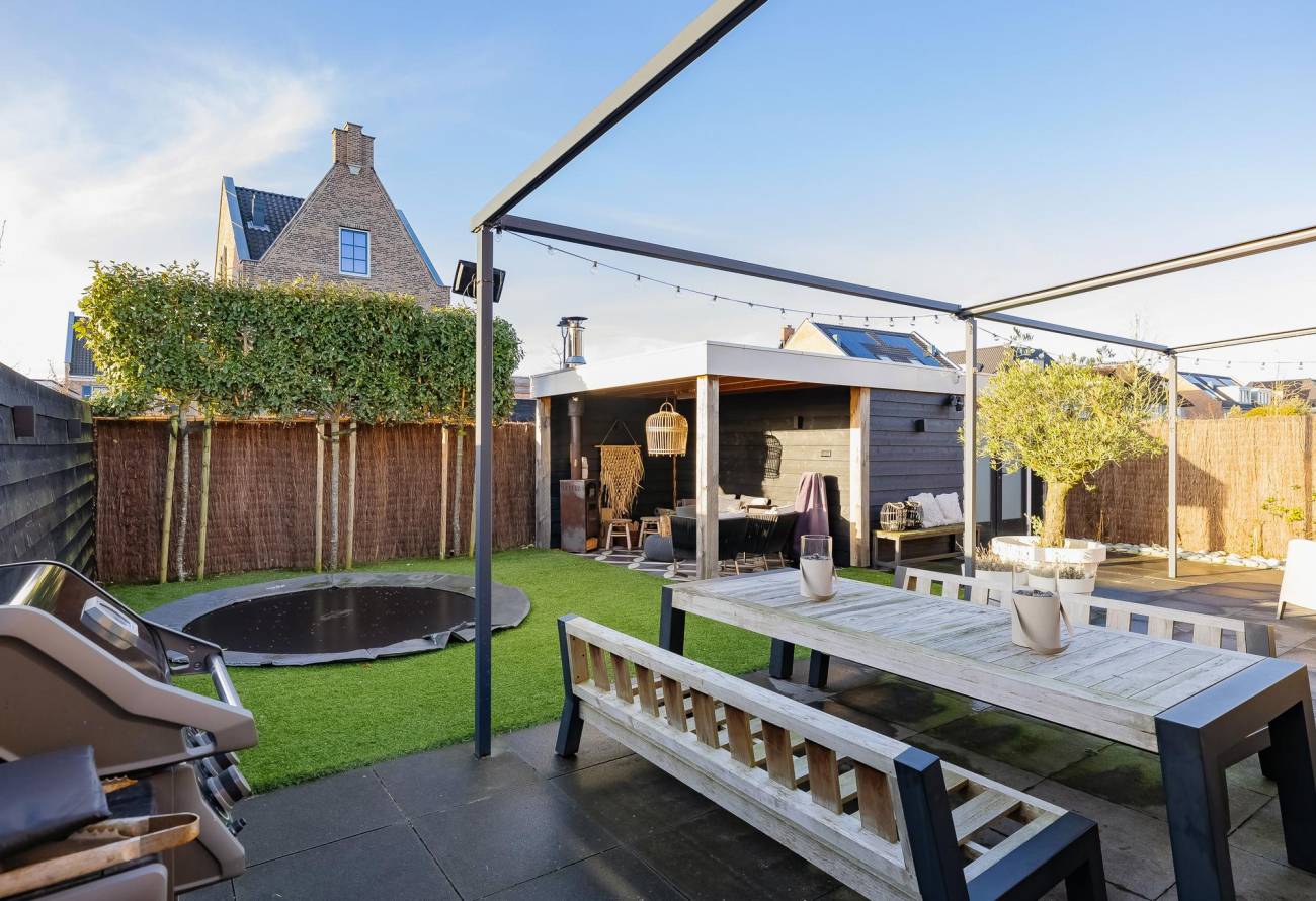 De zonnige tuin is onderhoudsvriendelijk aangelegd en heeft een gezellige veranda waar je tot laat in het seizoen kunt genieten van de avondzon maar ook van de eerste lentezon. Aan de veranda is een fietsenberging.