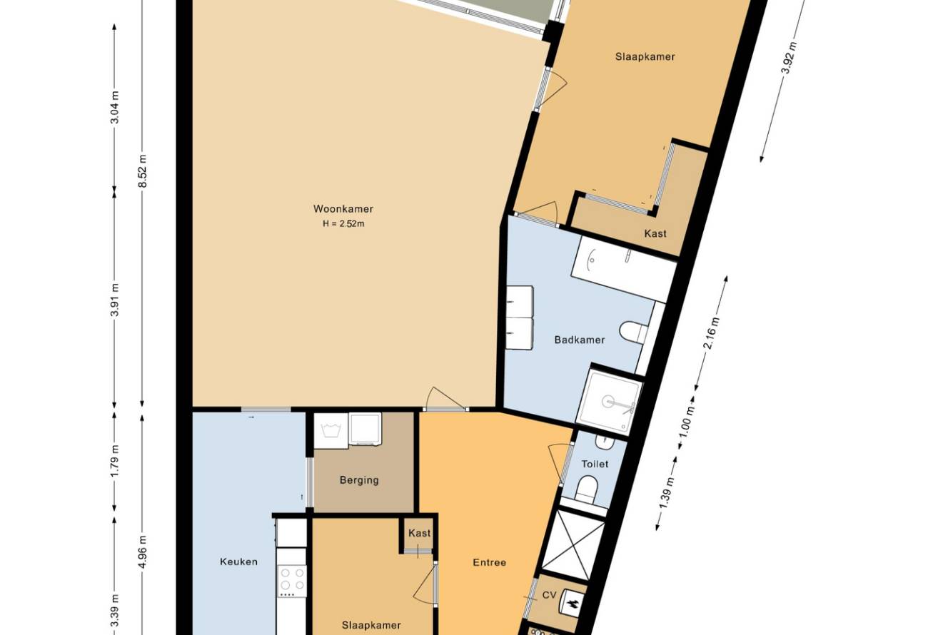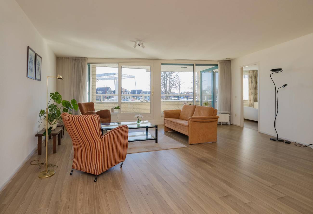 Ruime hal met meterkast, waterontharder, gastentoilet met wandcloset en fontein. Zeer ruime woonkamer met veel lichtinval. De keuken is opgesteld in L-opstelling en tevens voorzien van een ruime bijkeuken, waar zich ook de opstelling bevindt voor de wasapparatuur. Het appartement beschikt over 2 slaapkamers, waarvan de hoofdslaapkamer is gelegen aan de voorzijde met uitzicht op de Ringvaart. De ruime badkamer is toegankelijk vanuit de hoofdslaapkamer, welke is voorzien van een ligbad, aparte douche, toilet en dubbele wastafel. Het royale terras heeft een oppervlakte van ca 11m² en hier kunt u heerlijk genieten van het zonnetje met prachtig uitzicht op de Ringvaart.