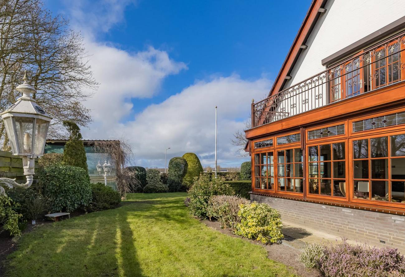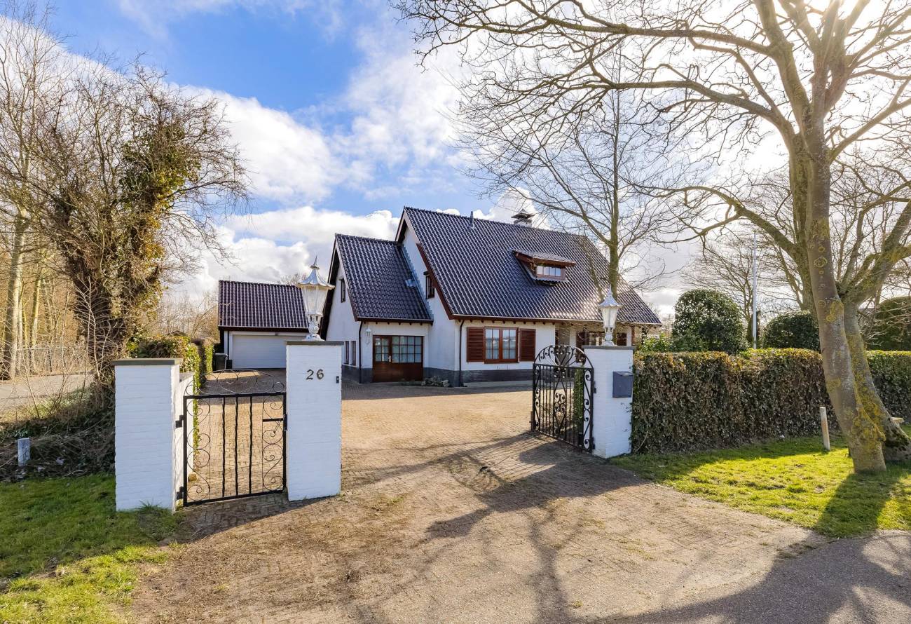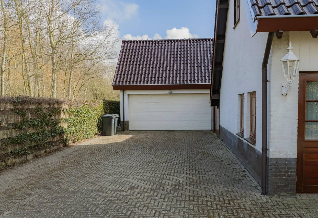 Bij aankomst rijd je door het elektrische sierhek en ervaar je meteen de ruimte en privacy die dit perceel te bieden heeft. Parkeren is geen probleem, met voldoende plek op eigen terrein en een ruime dubbele garage met elektrische deur.