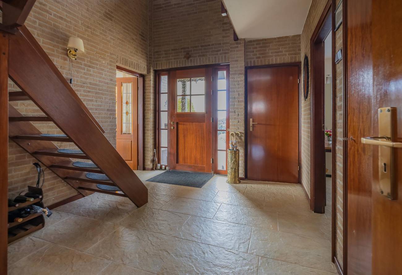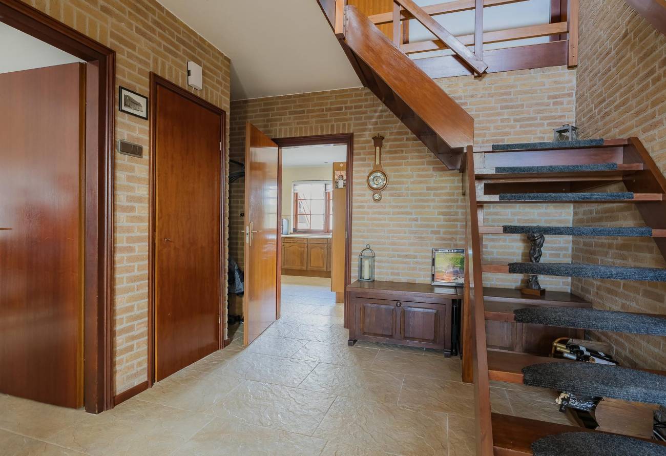 De royale hal geeft toegang tot de woonkamer, een aparte kantoorruimte/slaapkamer met badkamer/wellness en de keuken. De vide en open trap geven een extra ruimtelijk effect.