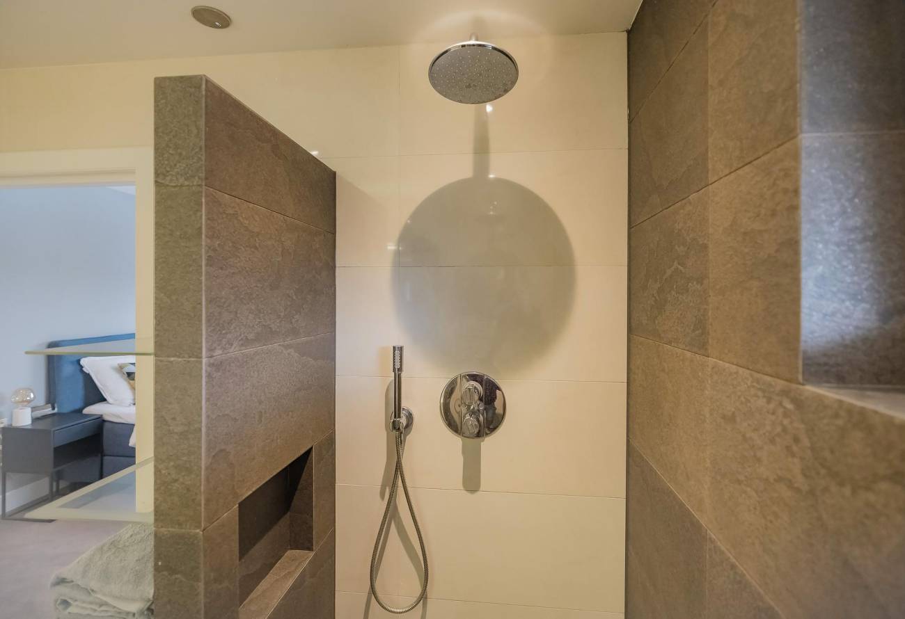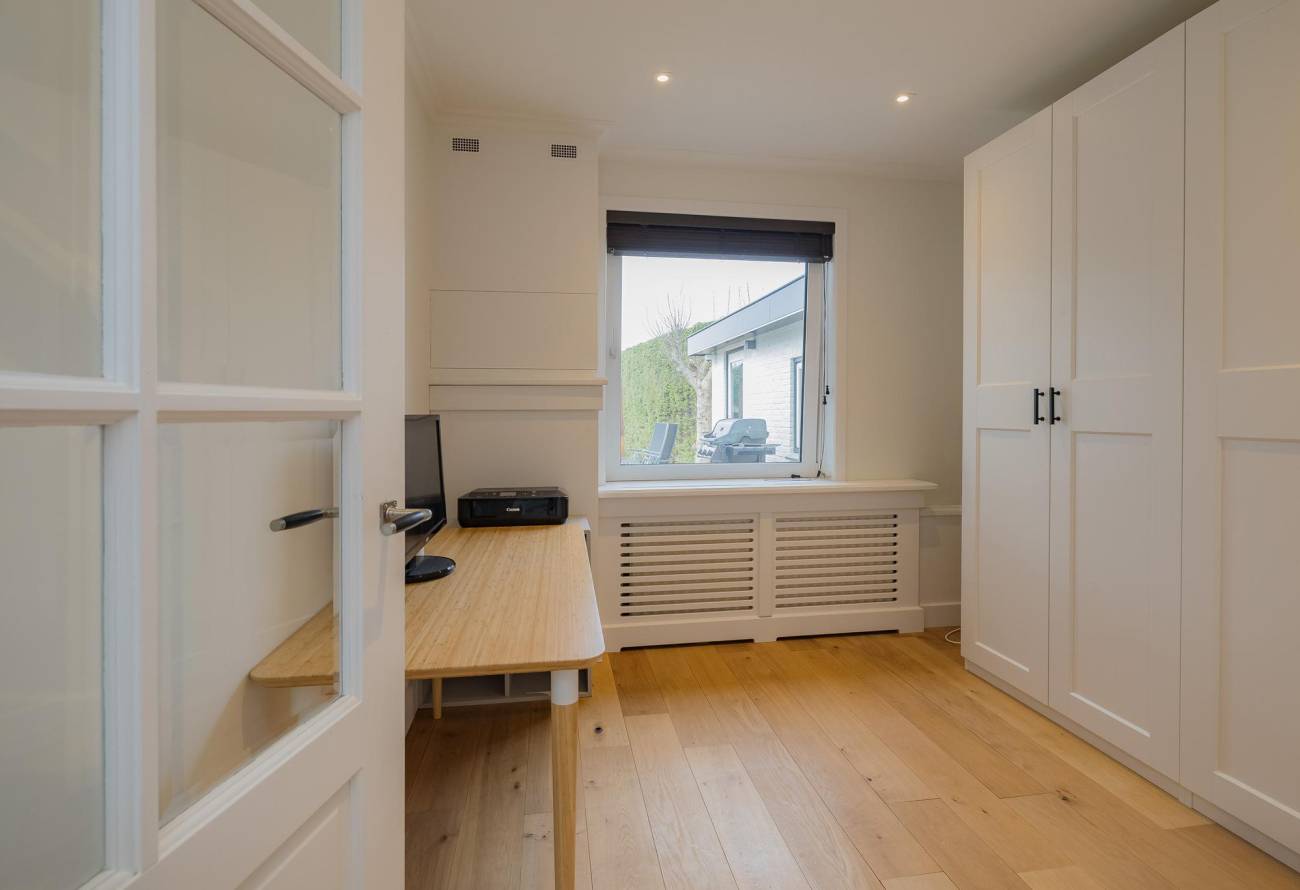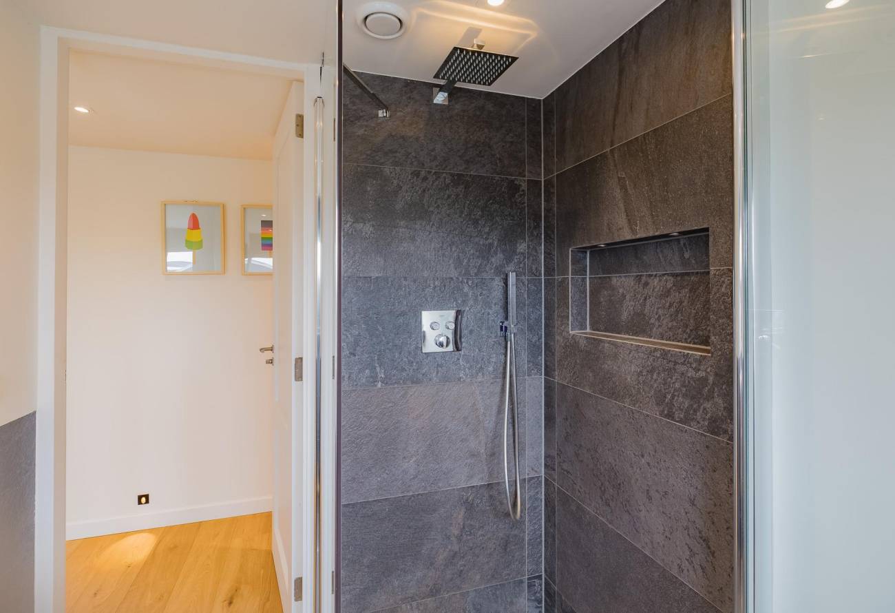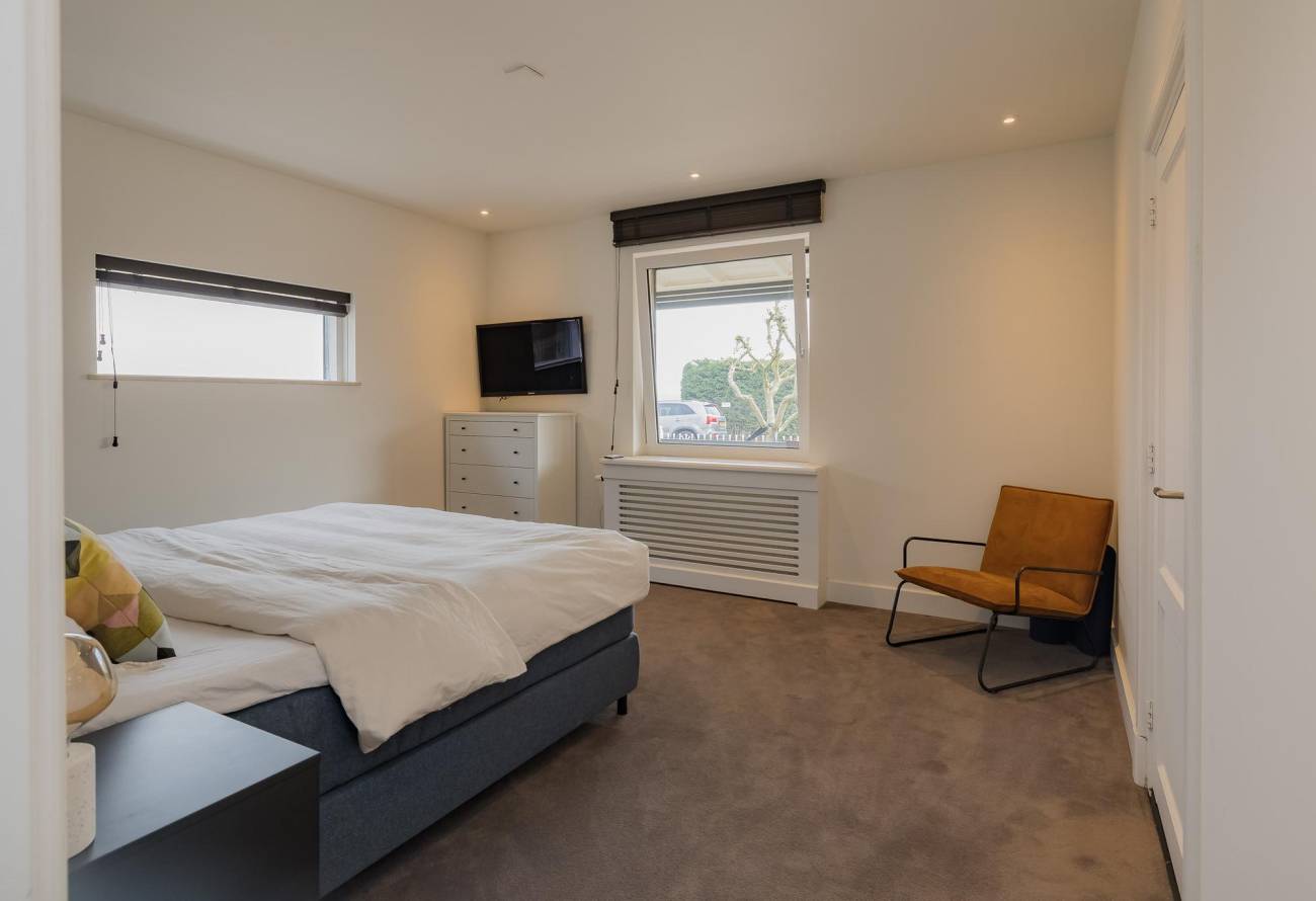 Op de verdieping zijn 3 slaapkamers en 2 badkamers waarvan er één toegankelijk is vanuit de slaapkamer. De slaapkamers zijn voorzien van airco en een grote dakkapel over de hele breedte van de woning zorgt voor ruime lichtinval.