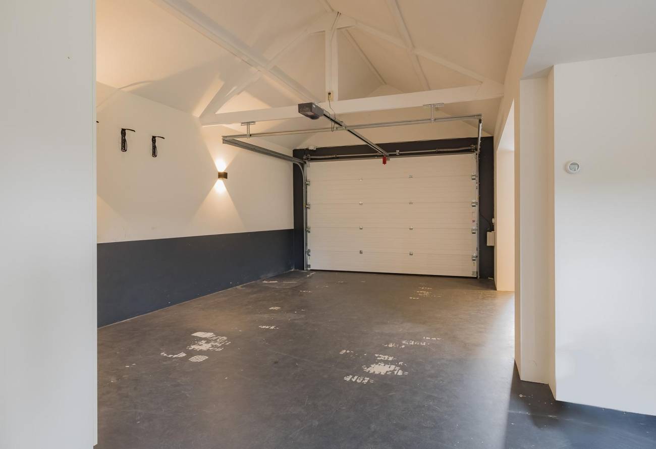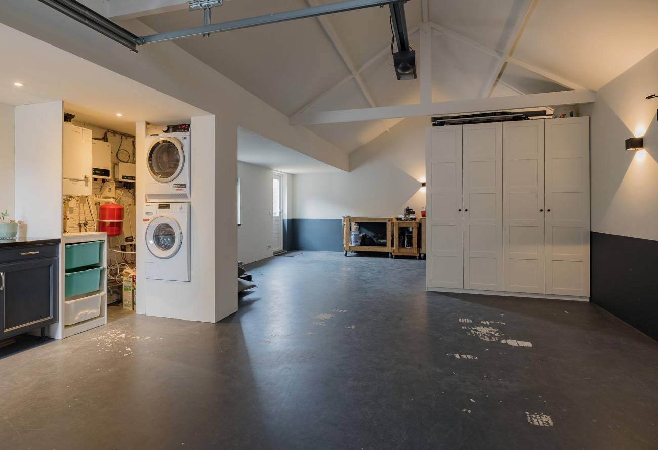 In de grote garage is er plaats voor de auto's maar ook voor de fietsen en de tuingereedschappen. Tevens staan hier de wasmachine en de cv-ketel.