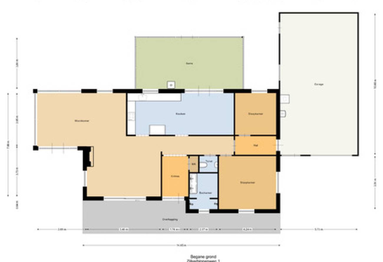 Bij binnenkomst is er een ruime entree en gang naar de ruime Z-vormige woonkamer met haard en serre waarin diverse zitjes te creëren zijn. De grote woonkeuken heeft toegang tot een 2e serre met heerlijk uitzicht op de tuin. Op de begane grond zijn er verder nog twee slaapkamers waarvan één met eigen badkamer wat de woning levensloop bestendig maakt en een werkkamer.
