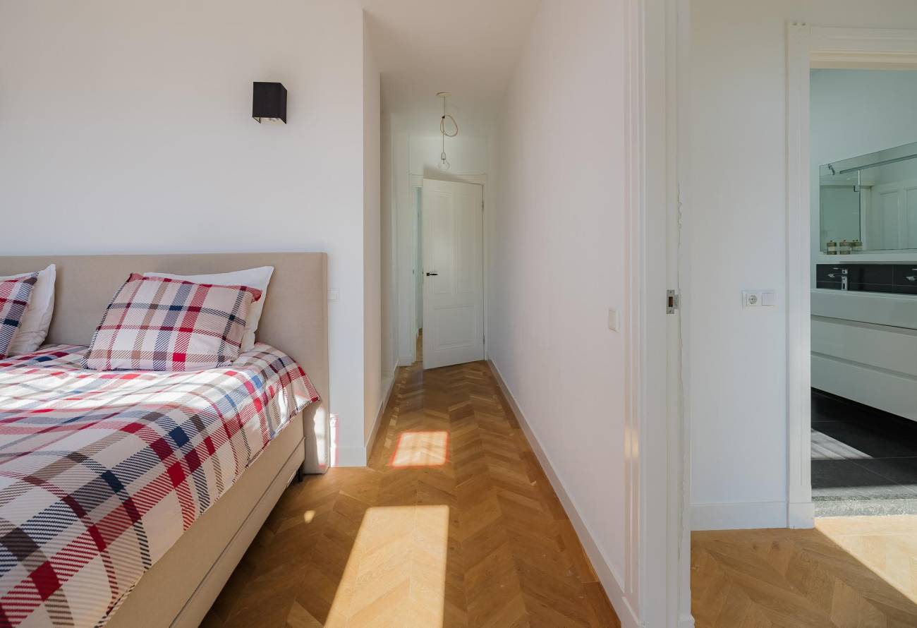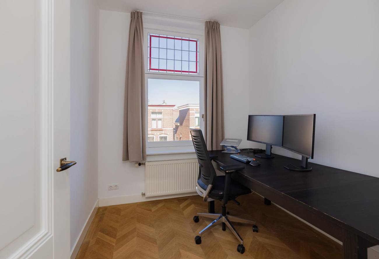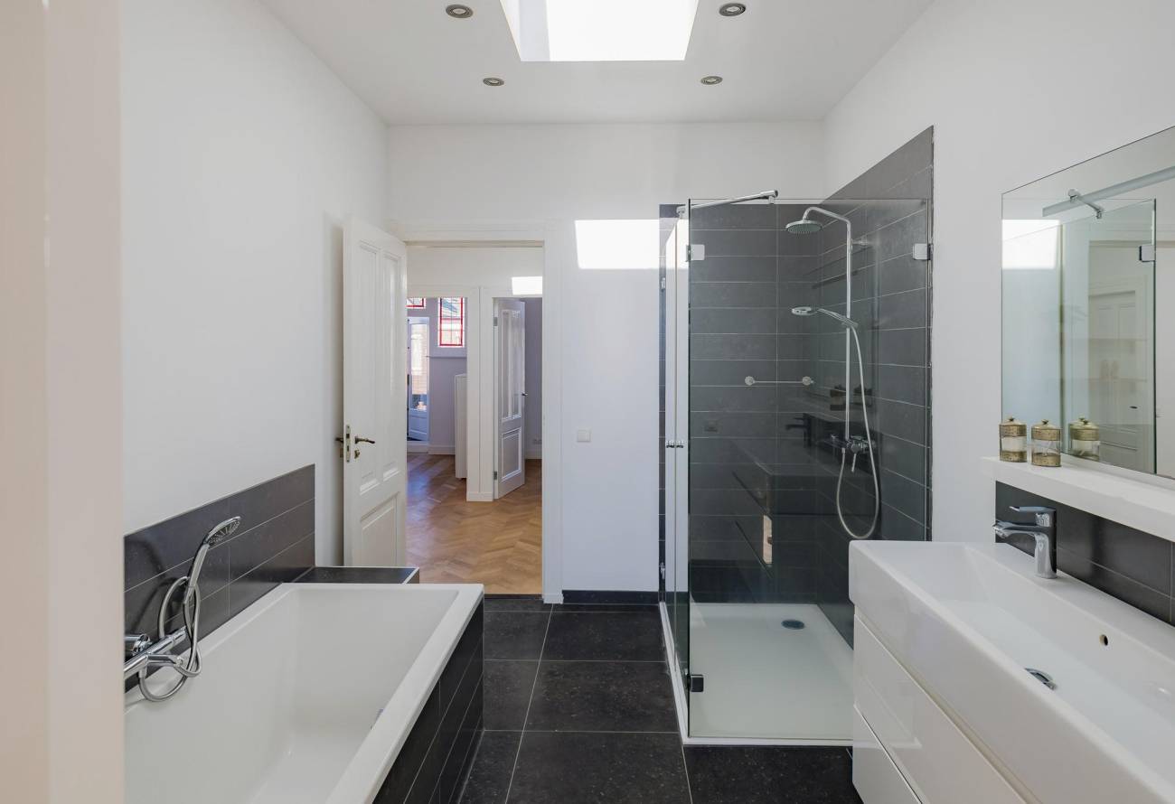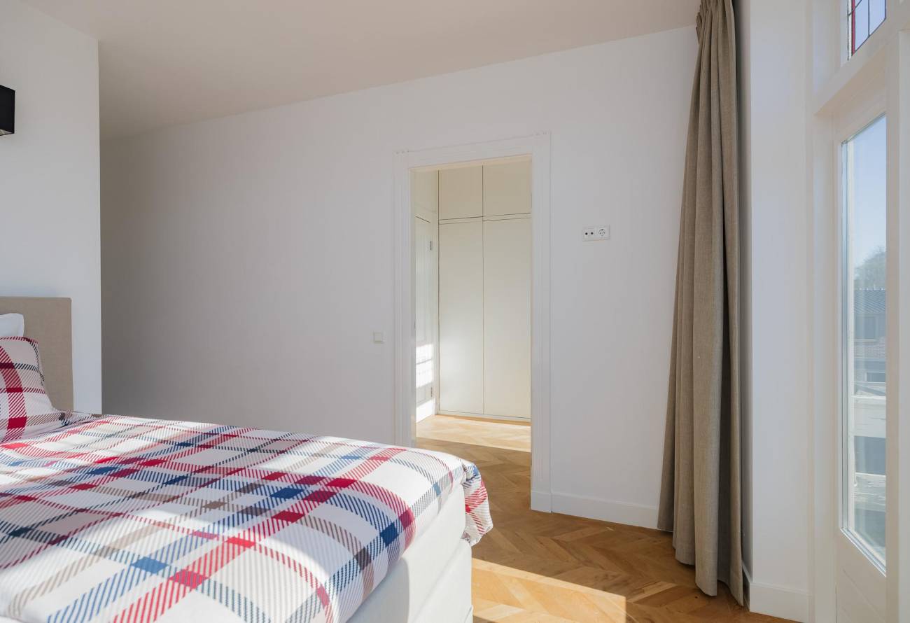 Overloop met groot daklicht, modern toilet, 1 ruime slaapkamer met dubbele deuren naar balkon en 1 kleinere slaap(werk)kamer aan voorzijde. Verder is er een 3e slaapkamer, 4e hoofdslaapkamer met riante inloopgarderobe en waskamer. De moderne badkamer is aan twee zijden bereikbaar en voorzien van een ligbad, grote douchecabine met hardglazen deur en brede wastafel met twee kranen in meubel. Ook in de badkamer is een groot daklicht. In alle kamers ligt een eikenhouten vloer in Hongaarse punt met uitzondering van de badkamer welke is betegeld met een antracietkleurige vloertegel.
