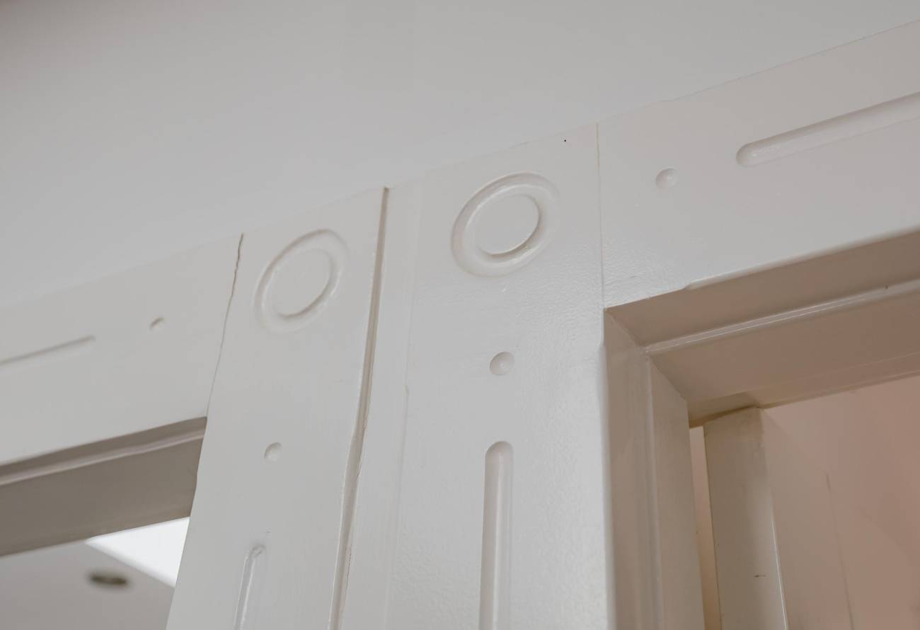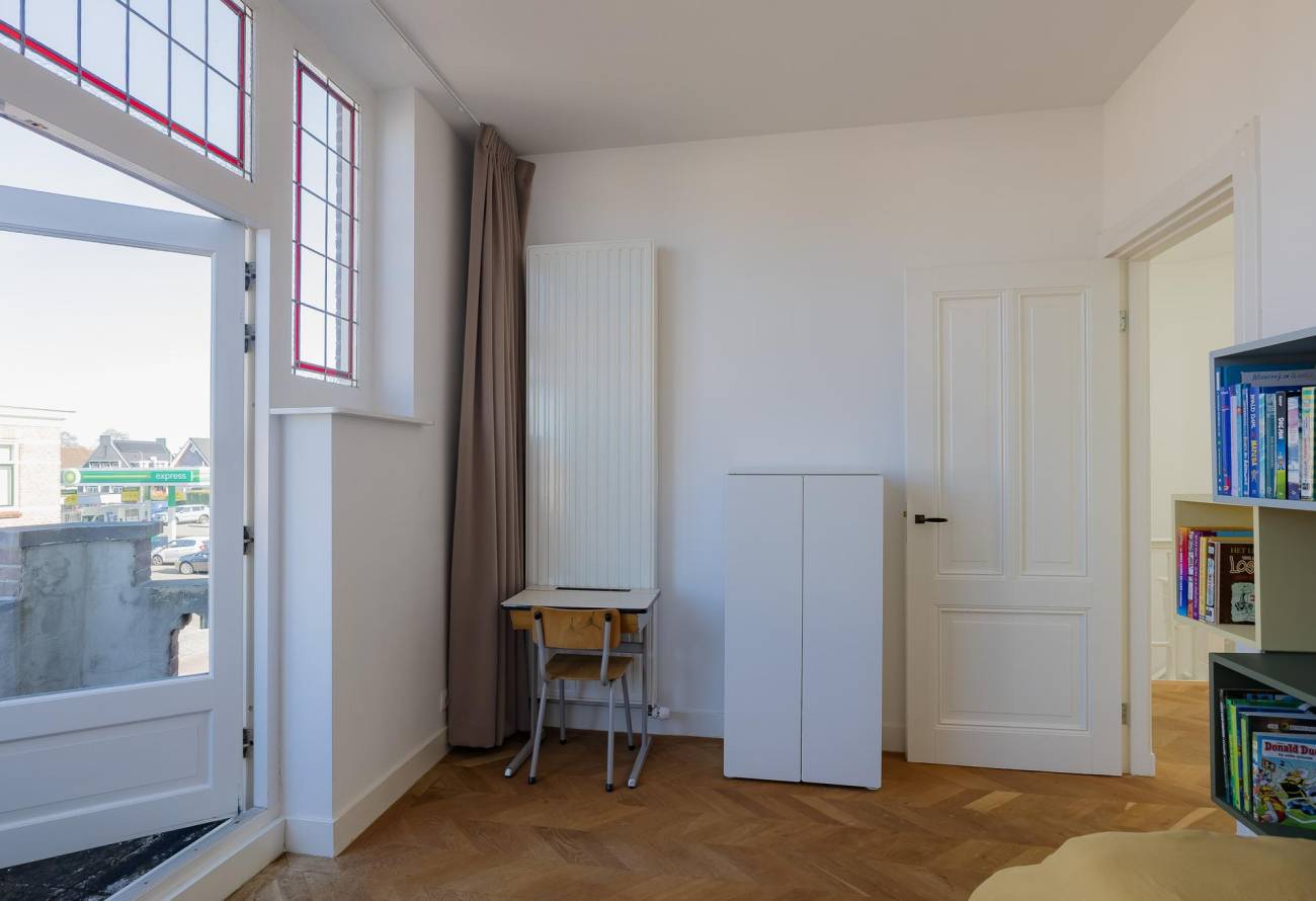 De plafonds en wanden zijn glad gestuukt. Fraaie paneeldeuren met prachtige deurlijsten. De beide daklichten op de 1e etage zijn op afstand te openen.