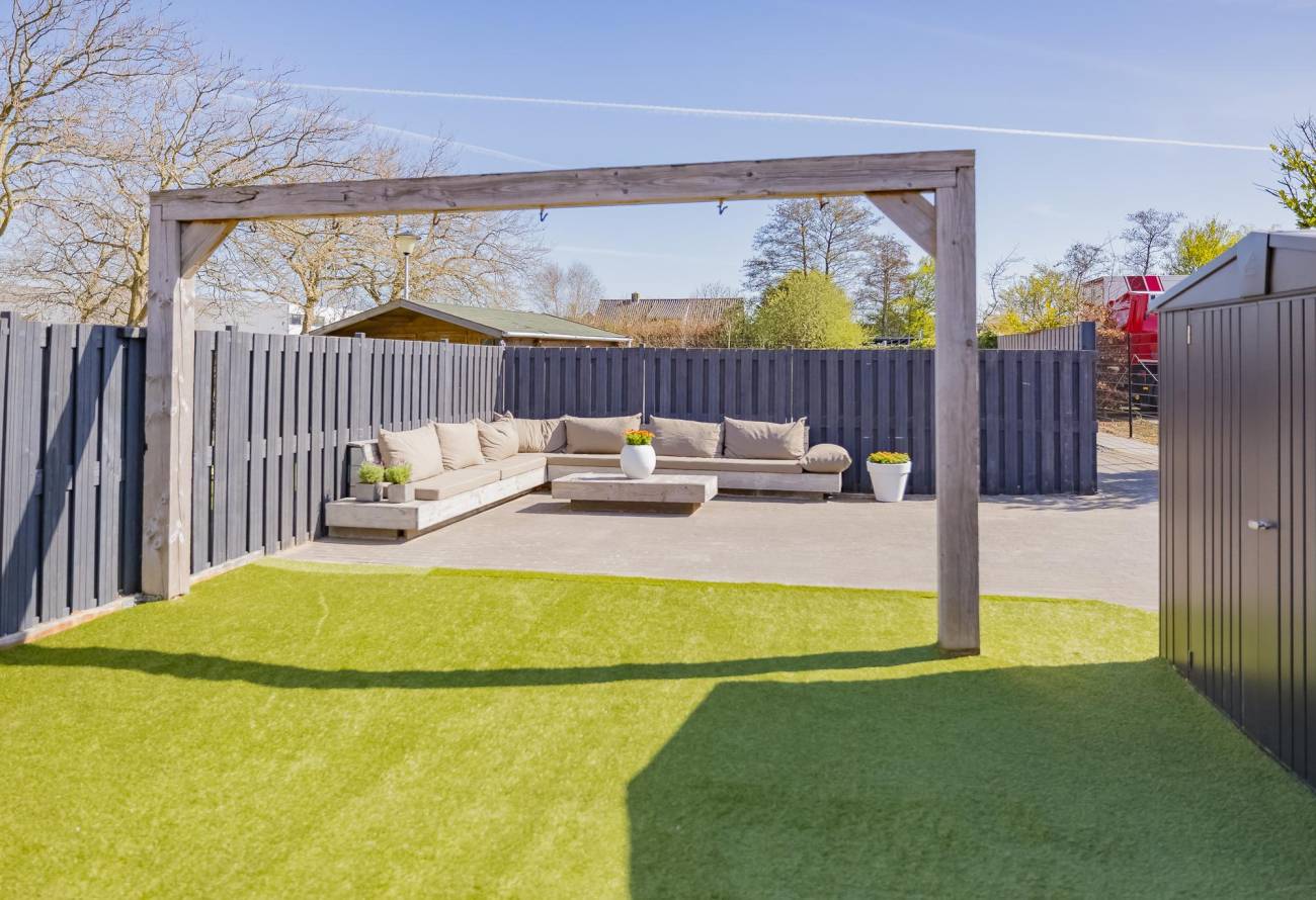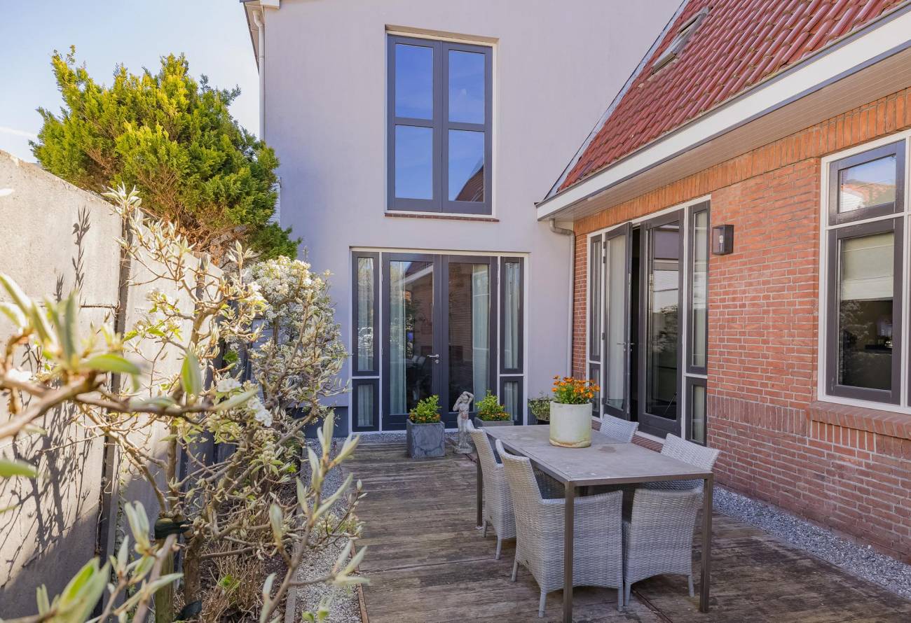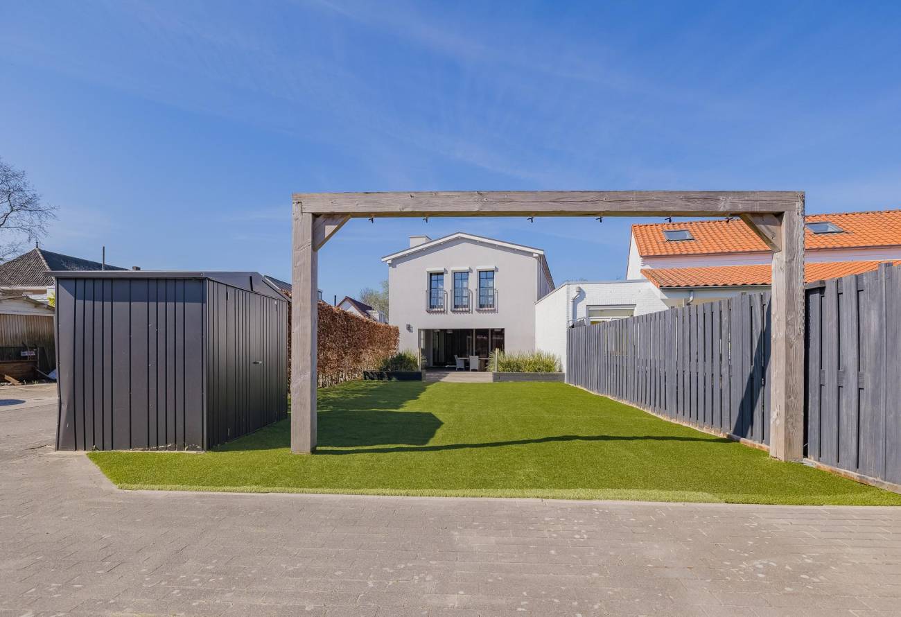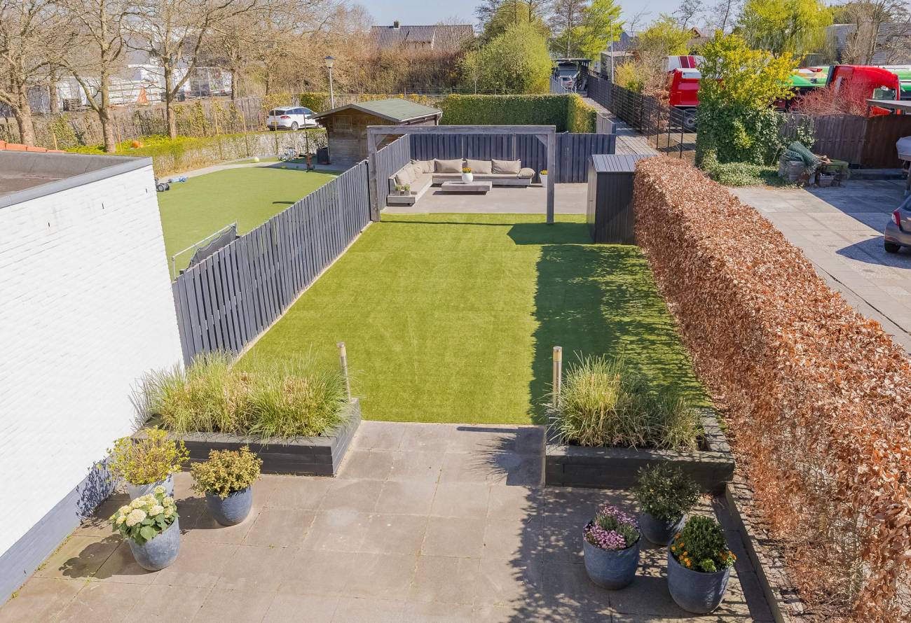 In de diepe achtertuin kun je genieten van de zon, spelen met de kinderen of gewoon heerlijk relaxen en onthaasten van de drukte van de dag. Tevens is er een groot terras gerealiseerd en op eigen terrein is er parkeergelegenheid voor wel vier auto’s.