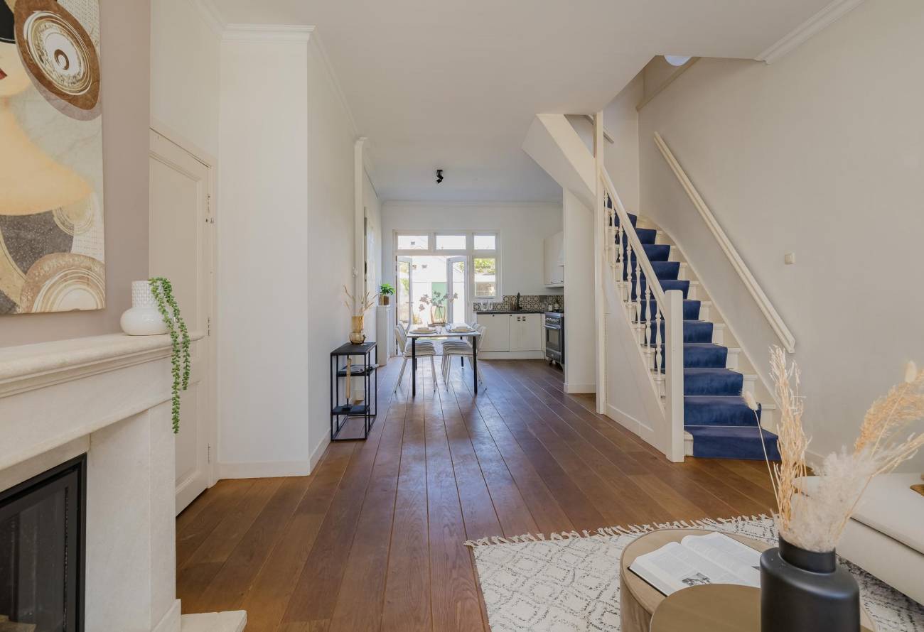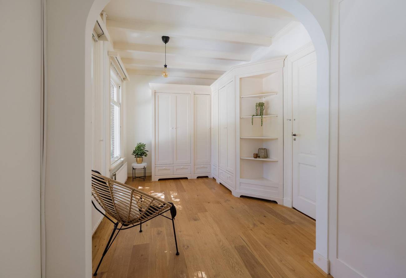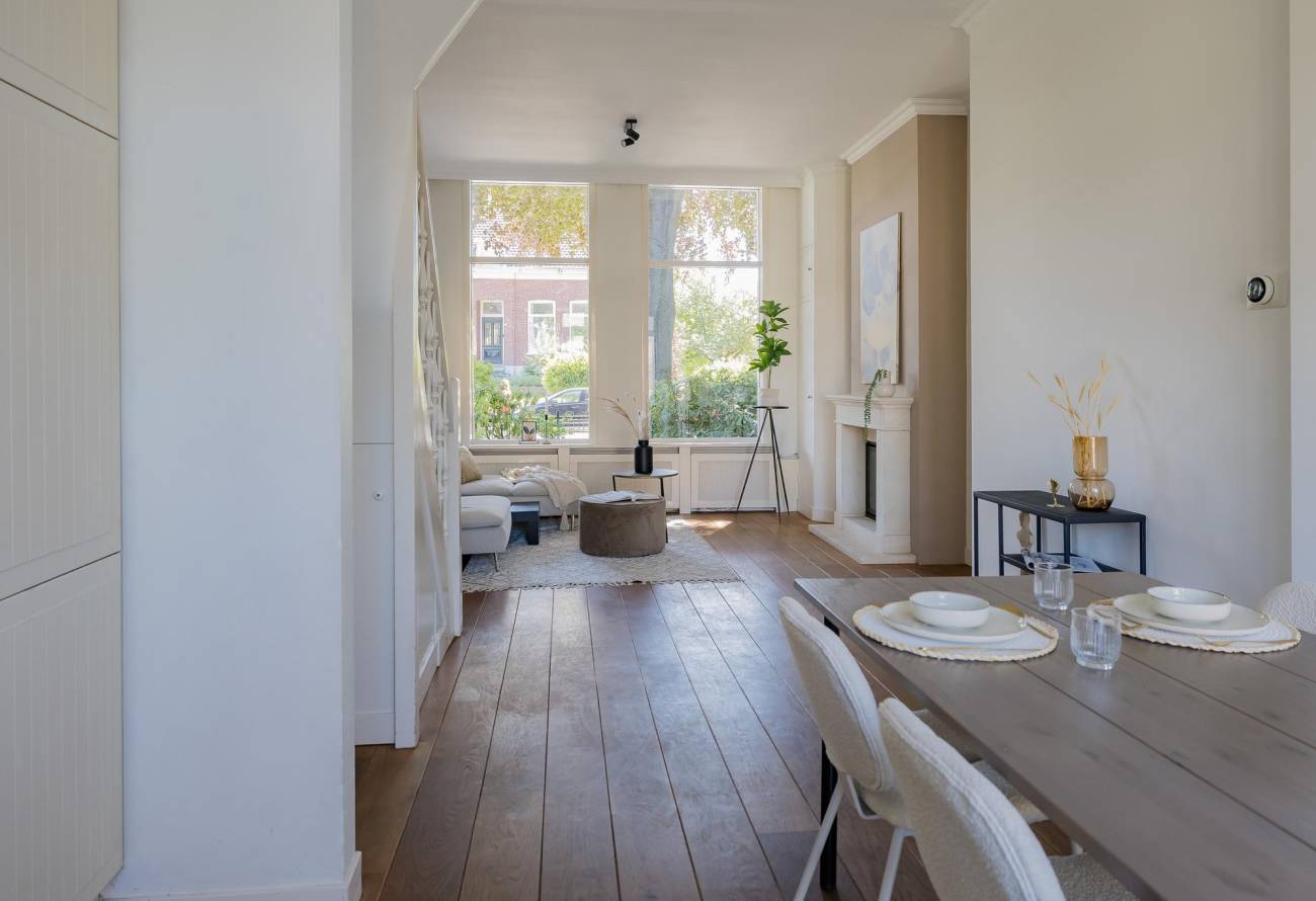 De woning is gerenoveerd in authentieke stijl met o.a. paneeldeuren, hoge plinten en hoog gestuukte plafonds met sierlijsten.