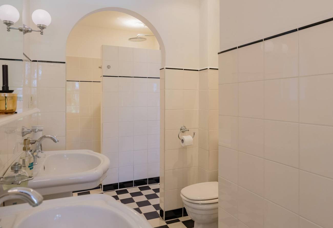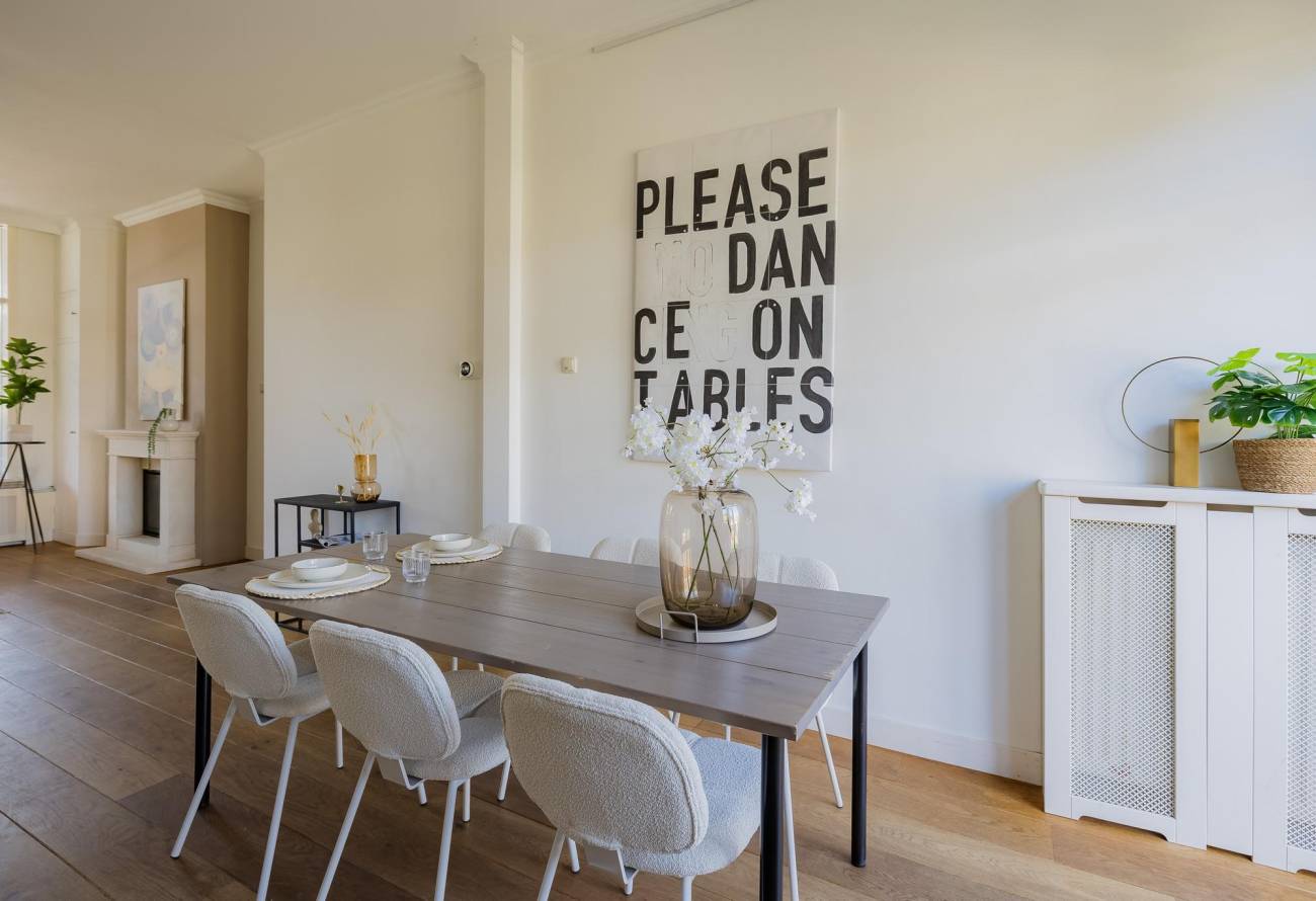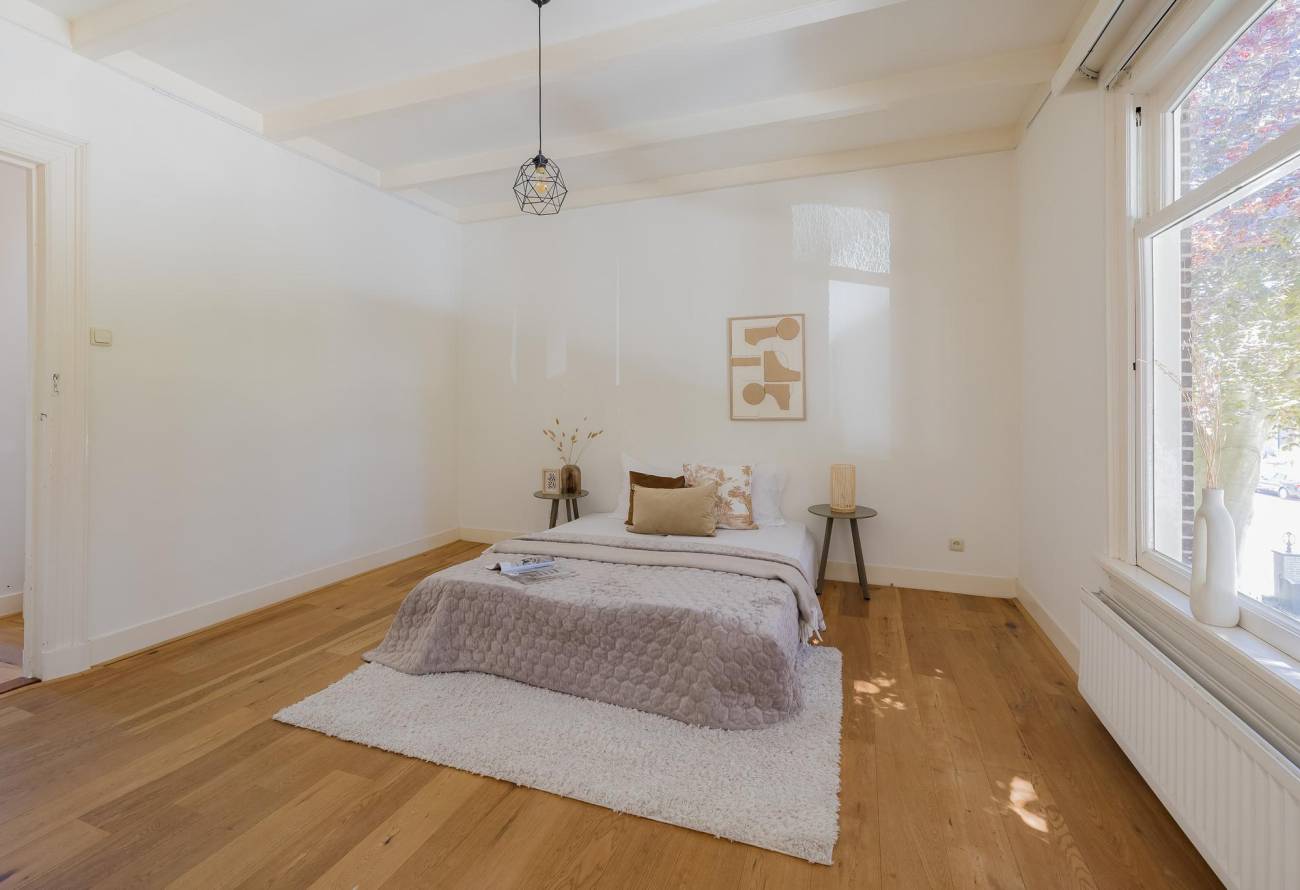De woning is gerenoveerd in authentieke stijl met o.a. paneeldeuren, hoge plinten en hoog gestuukte plafonds met sierlijsten.