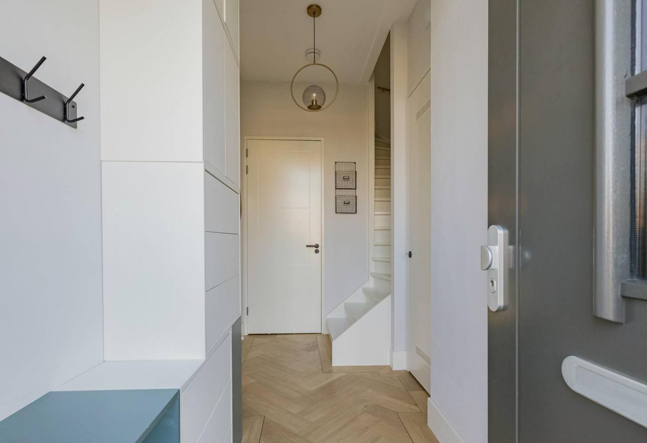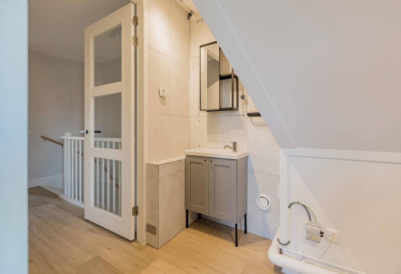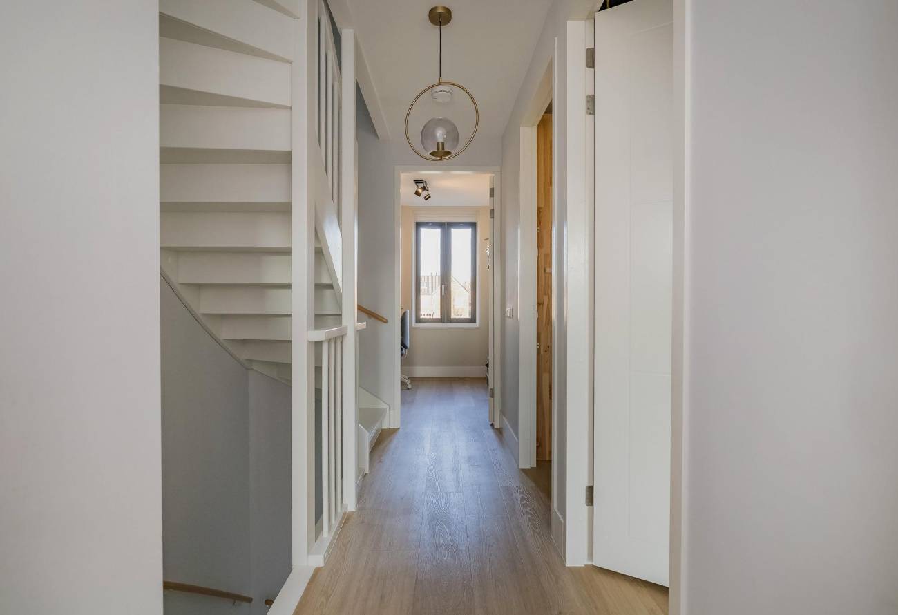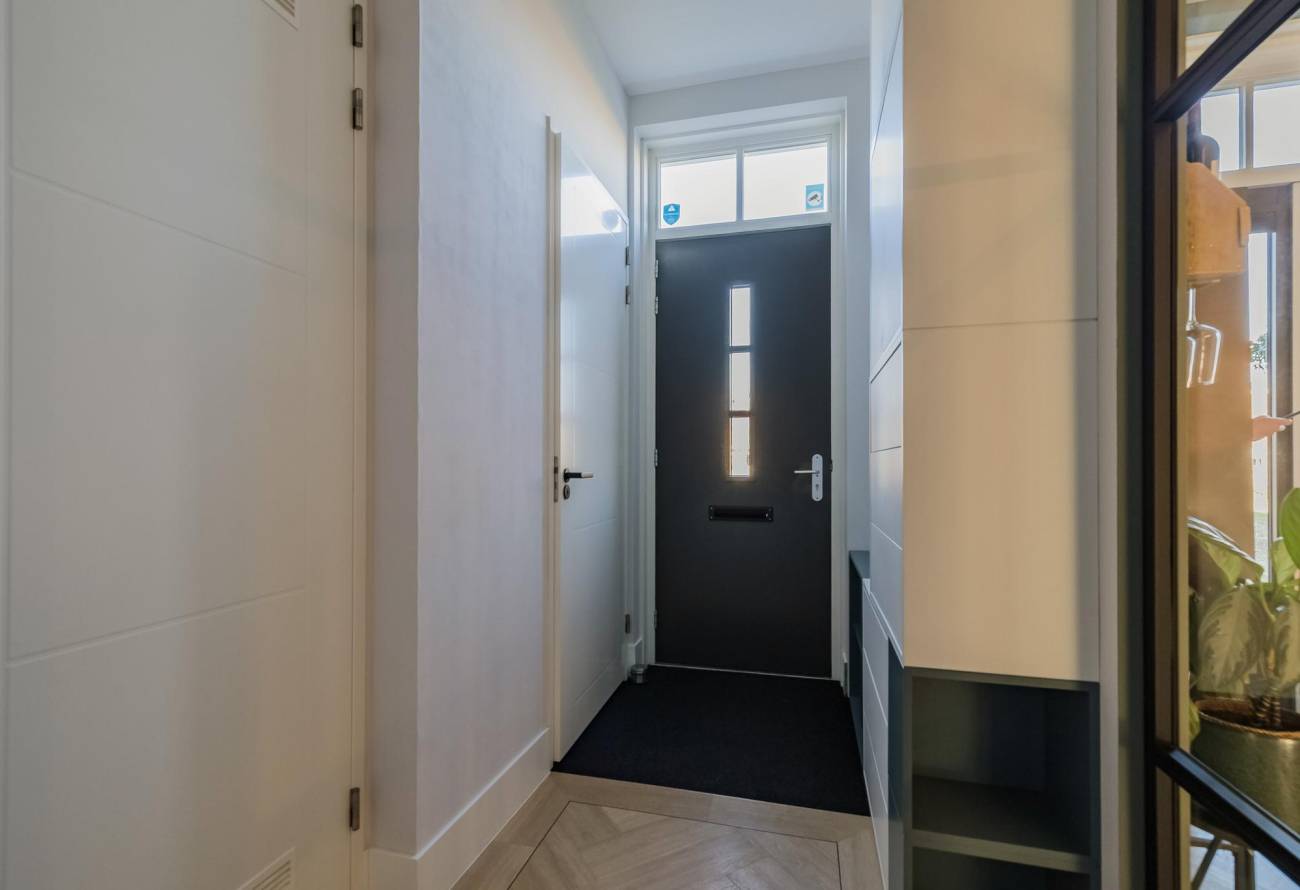 • Topafwerking: stompe deuren, houten binnendeurkozijnen, hoge plinten, strak stucwerk en luxe PVC-vloeren op alle verdiepingen;