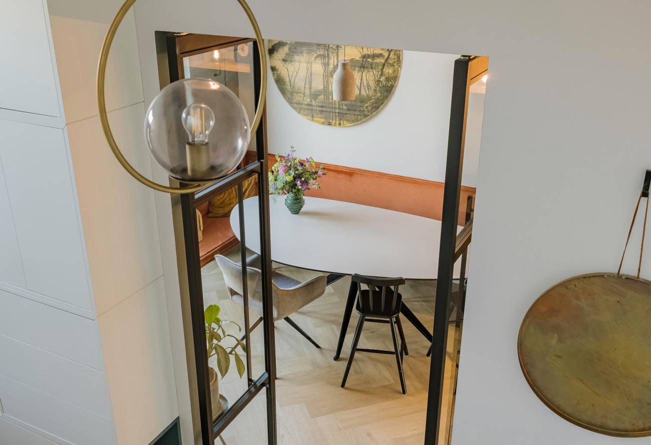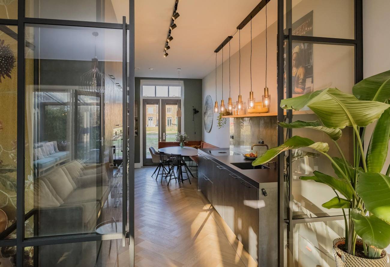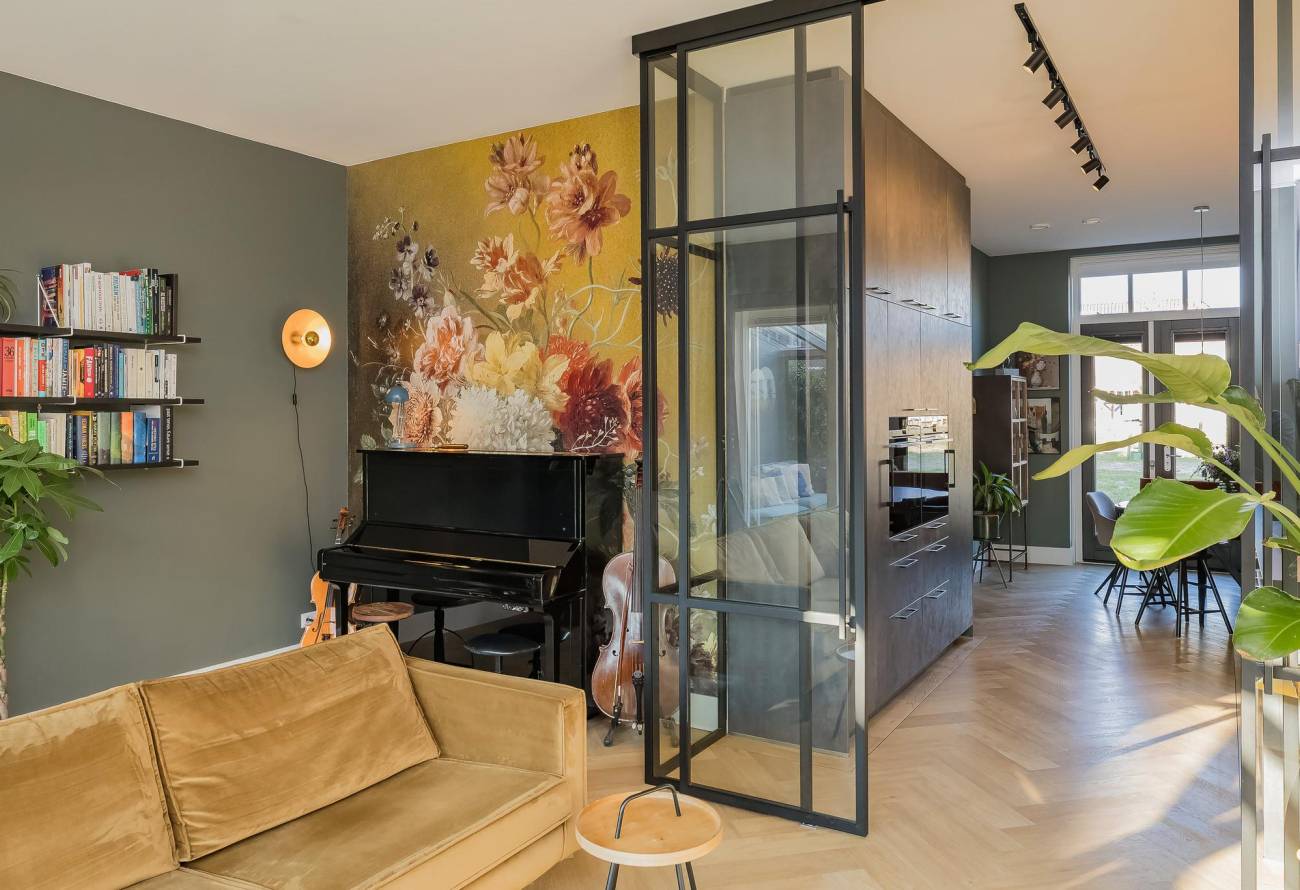 • Een ruimtelijke begane grond met doordachte indeling: royale hal met garderobe/berging, keuken centraal in de woning, eethoek aan de voorzijde met openslaande deuren en afsluitbare woonkamer met stijlvolle ensuite deuren;