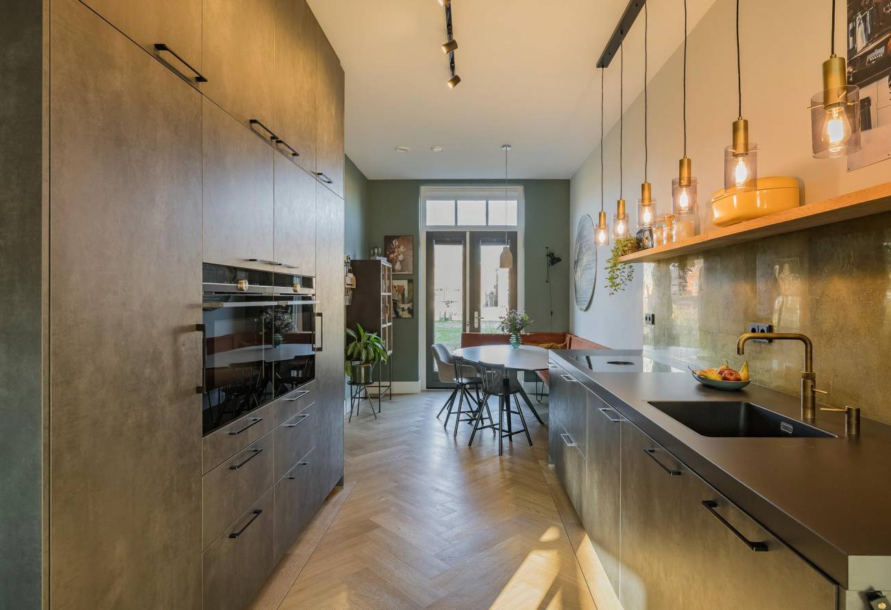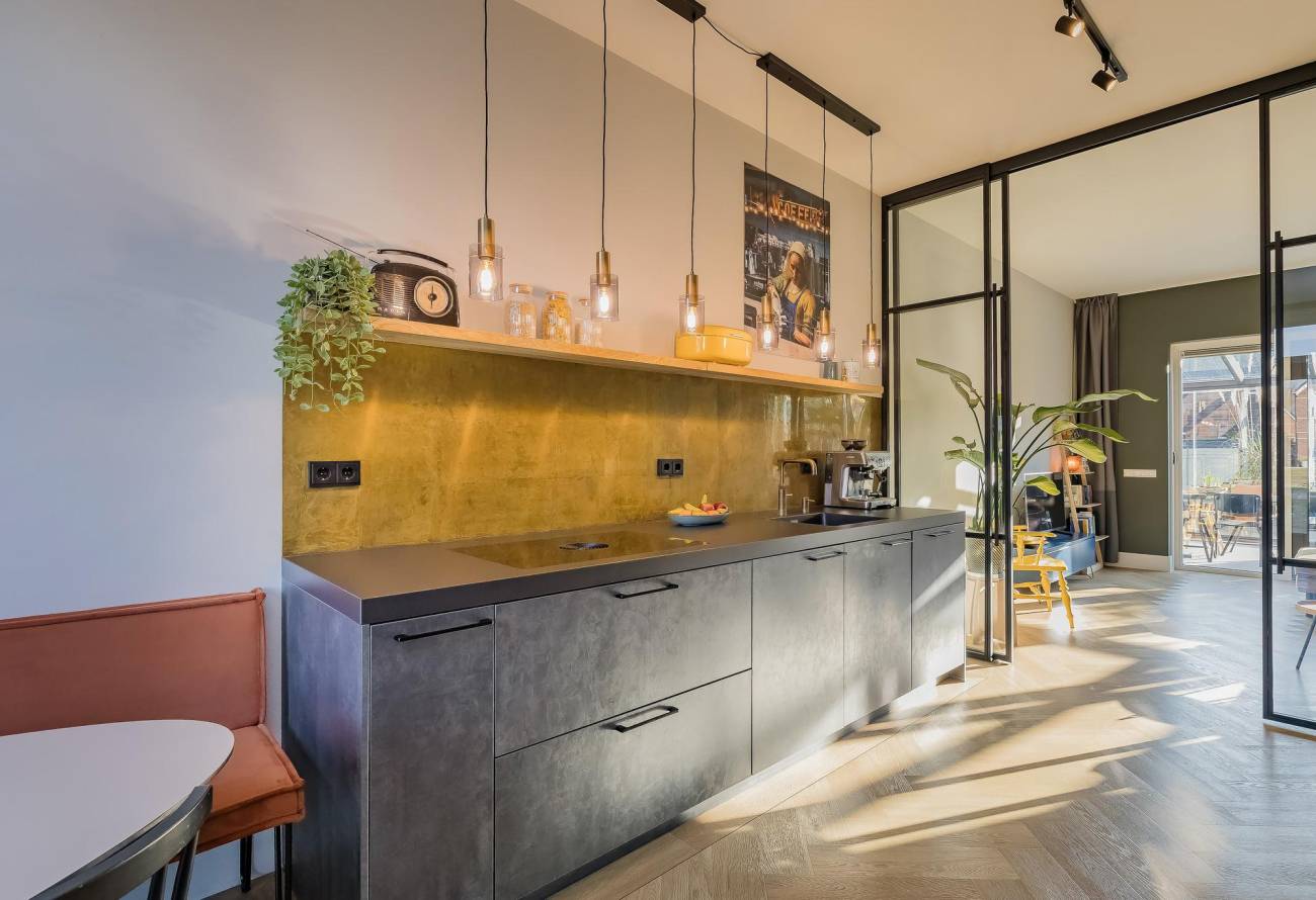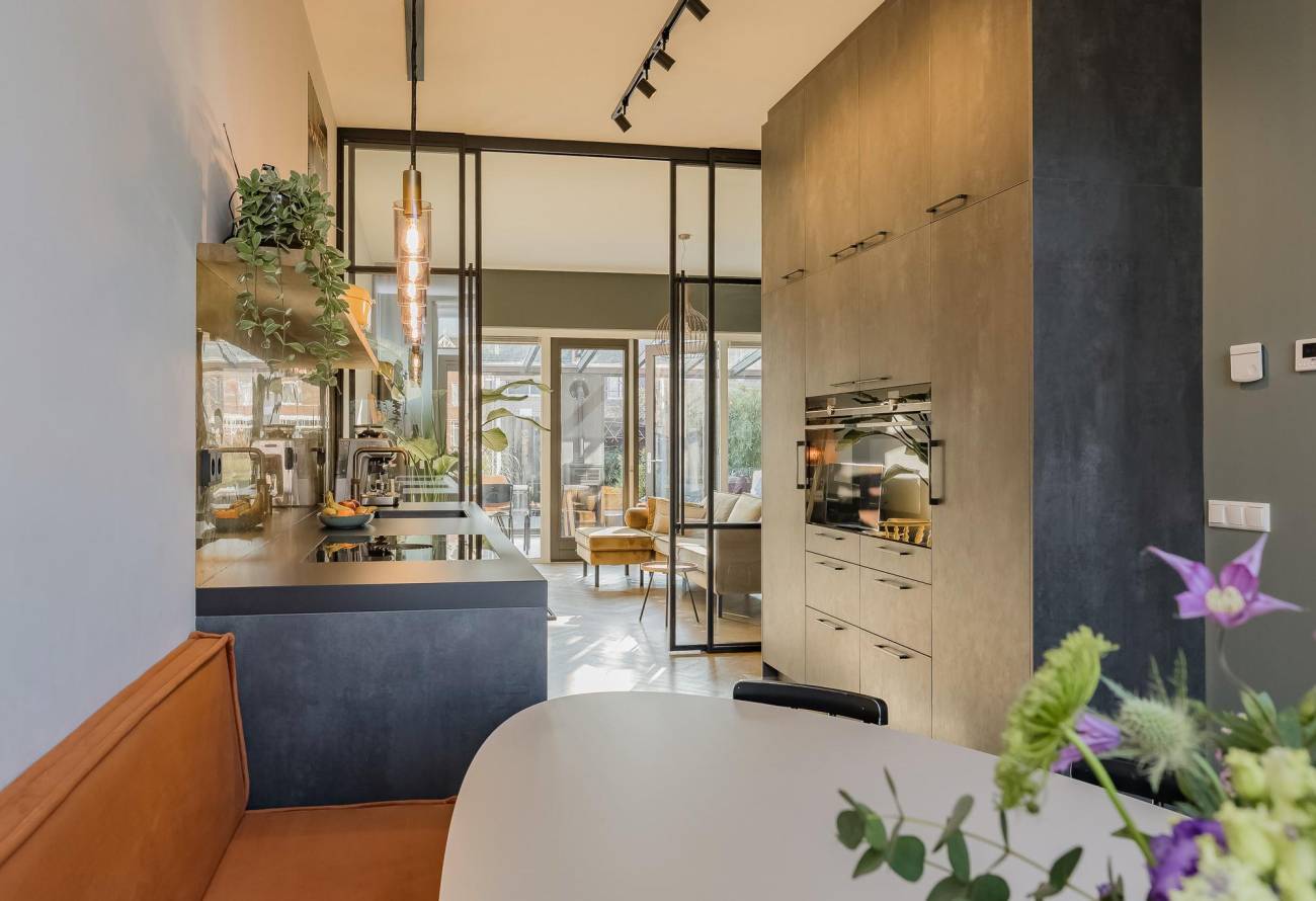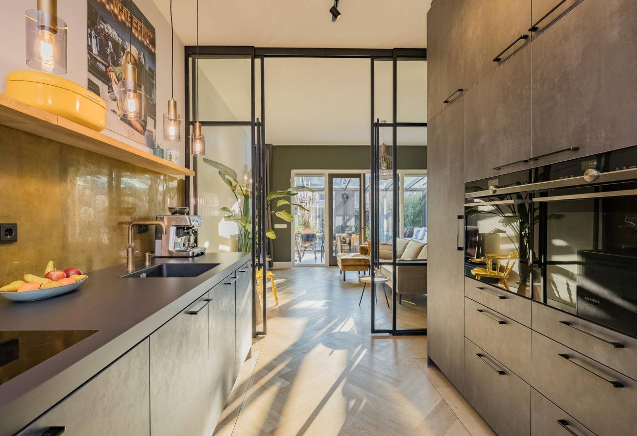 • Keukenliefhebbers opgelet: een droom van een keuken met 2 ovens, inductie kookplaat, grote koelkast, vriesladen, vaatwasser, kokend waterkraan, keramisch werkblad en messing achterwand;