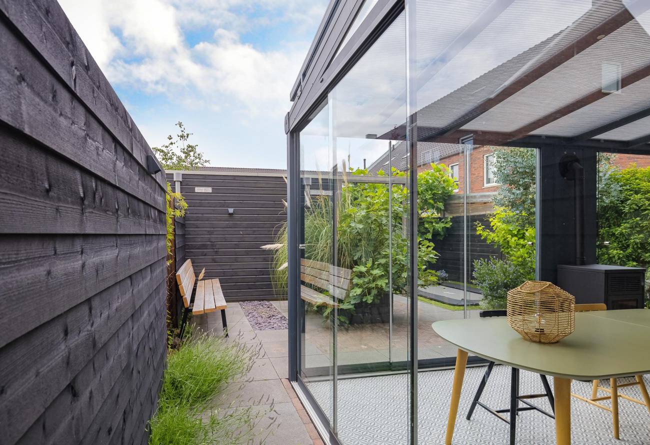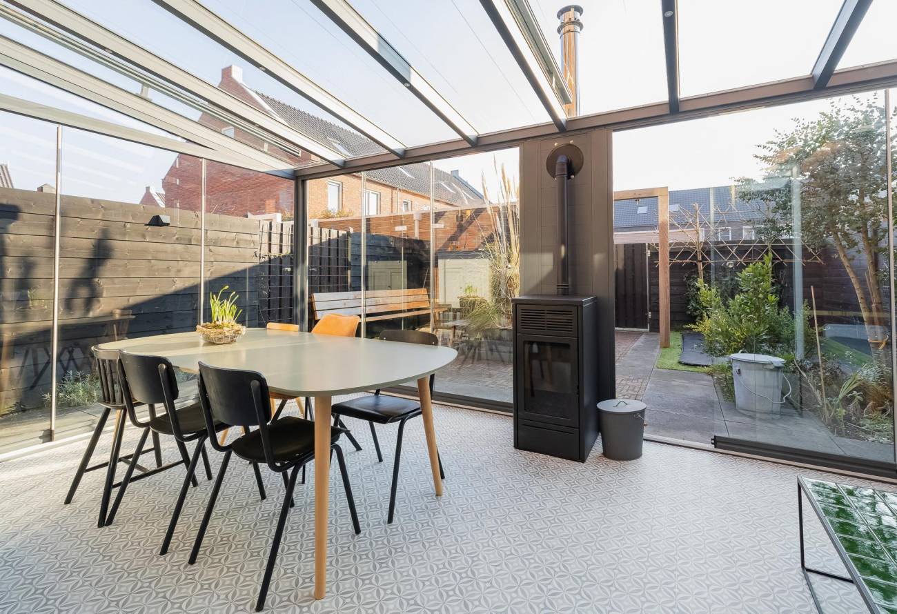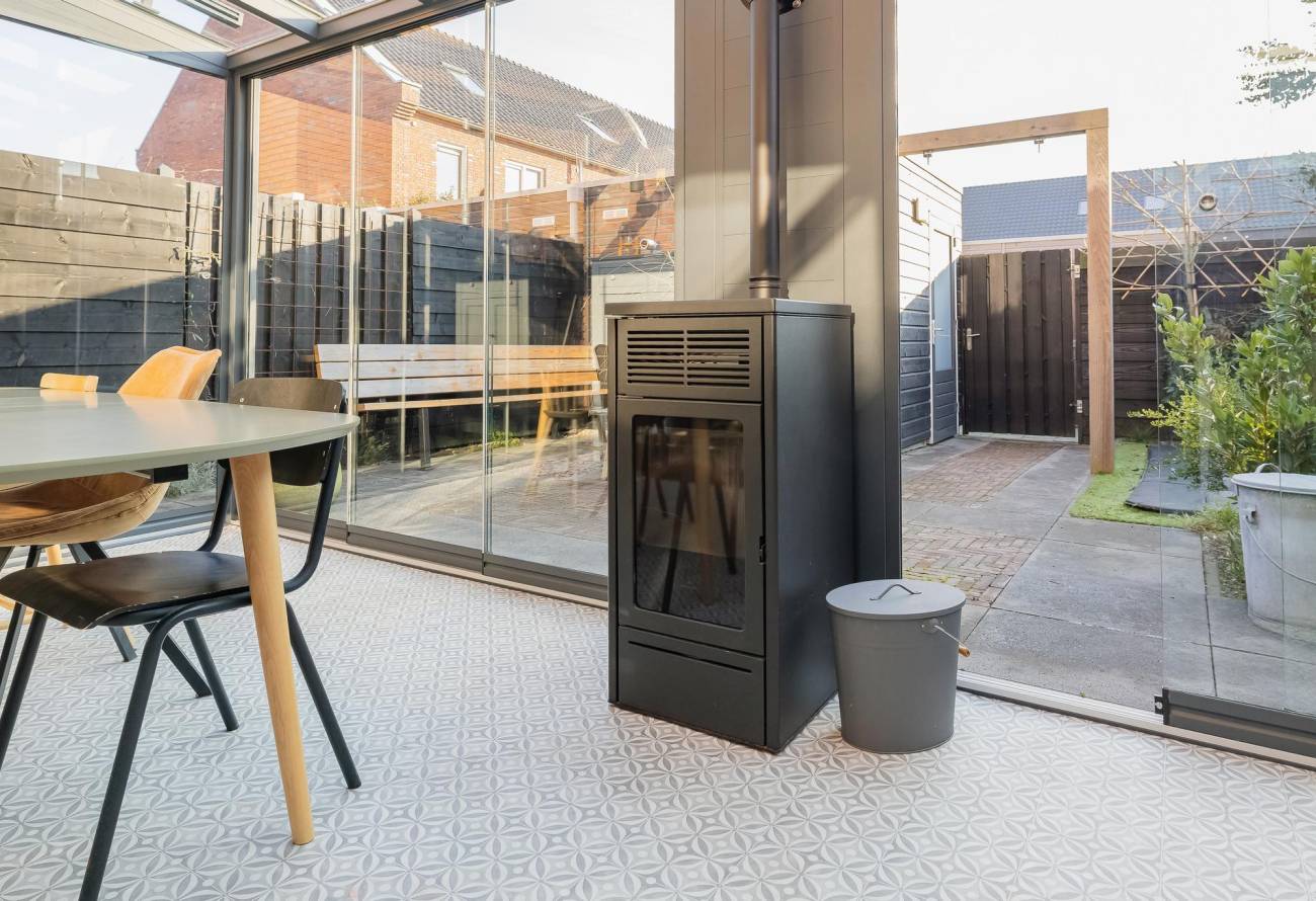 • Tuinkamer met zonwering, pellet kachel, buitenverlichting, heater en buitenkraan – hier geniet je het hele jaar door;