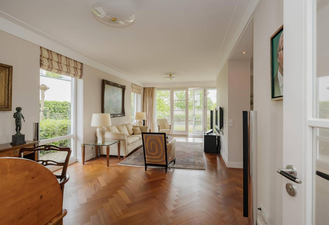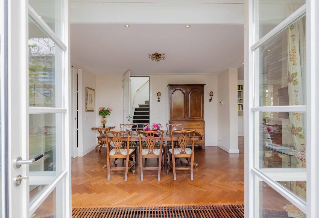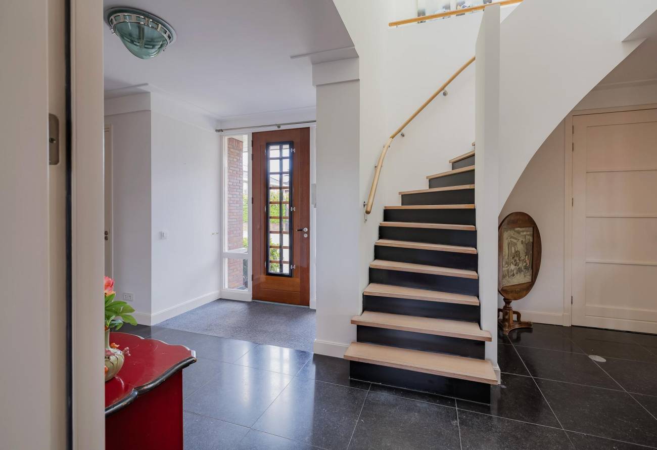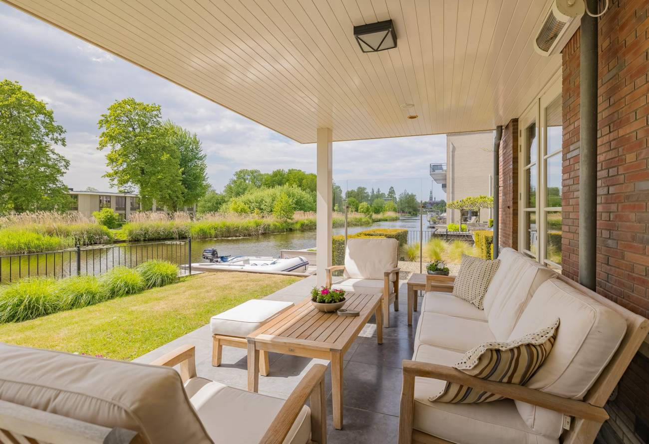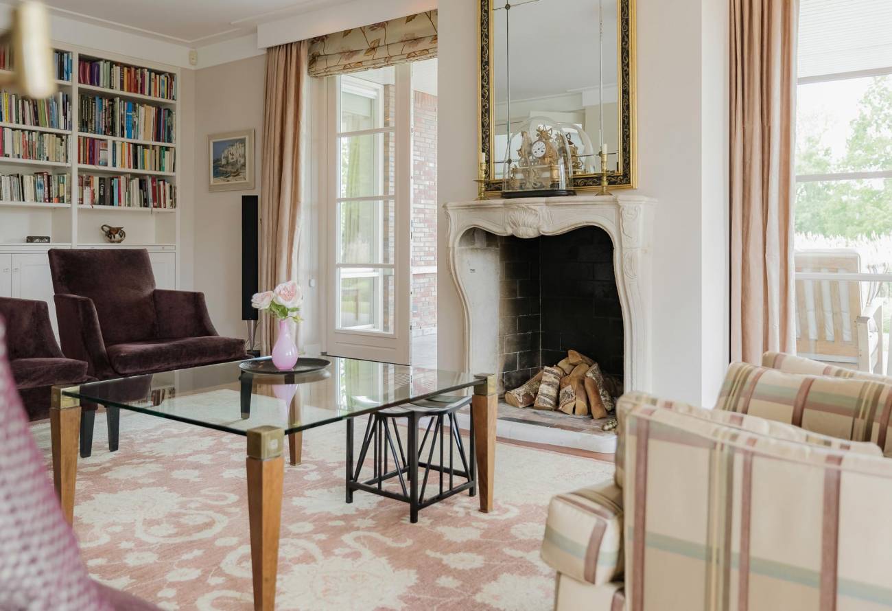 Bij binnenkomst valt direct de royale entree met het prachtige trappenhuis op. De living is ruim opgezet; woonkamer, eetkamer en tv-kamer staan in open verbinding met elkaar en dankzij de grote raampartijen geniet u van een prachtig uitzicht op de tuin en het water. Iedere kamer heeft openslaande deuren naar de terrassen en er is een veranda aan de woonkamer. De open haard zorgt voor een warme sfeer, terwijl de open indeling ideaal is voor zowel ontspanning als gastvrijheid.