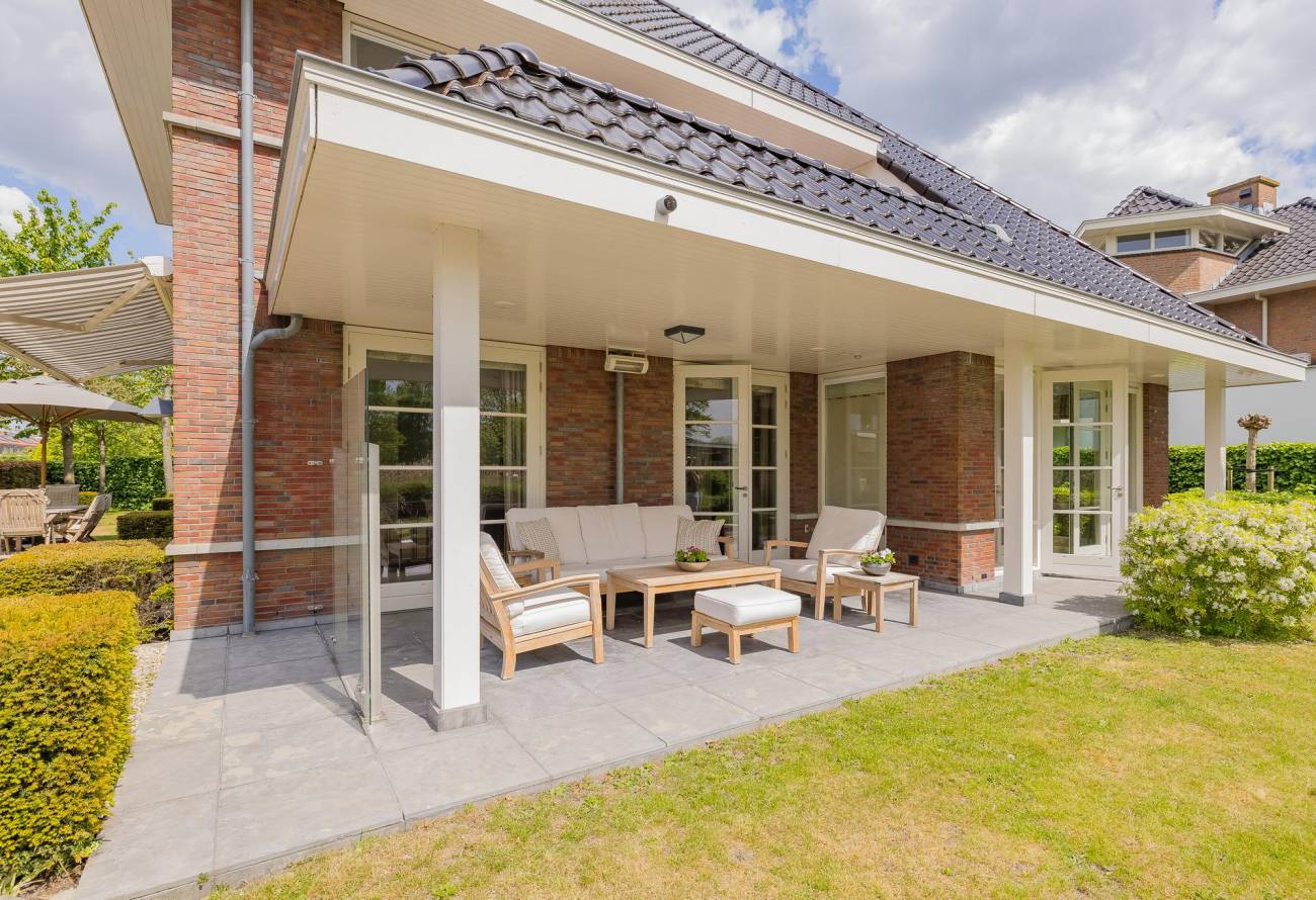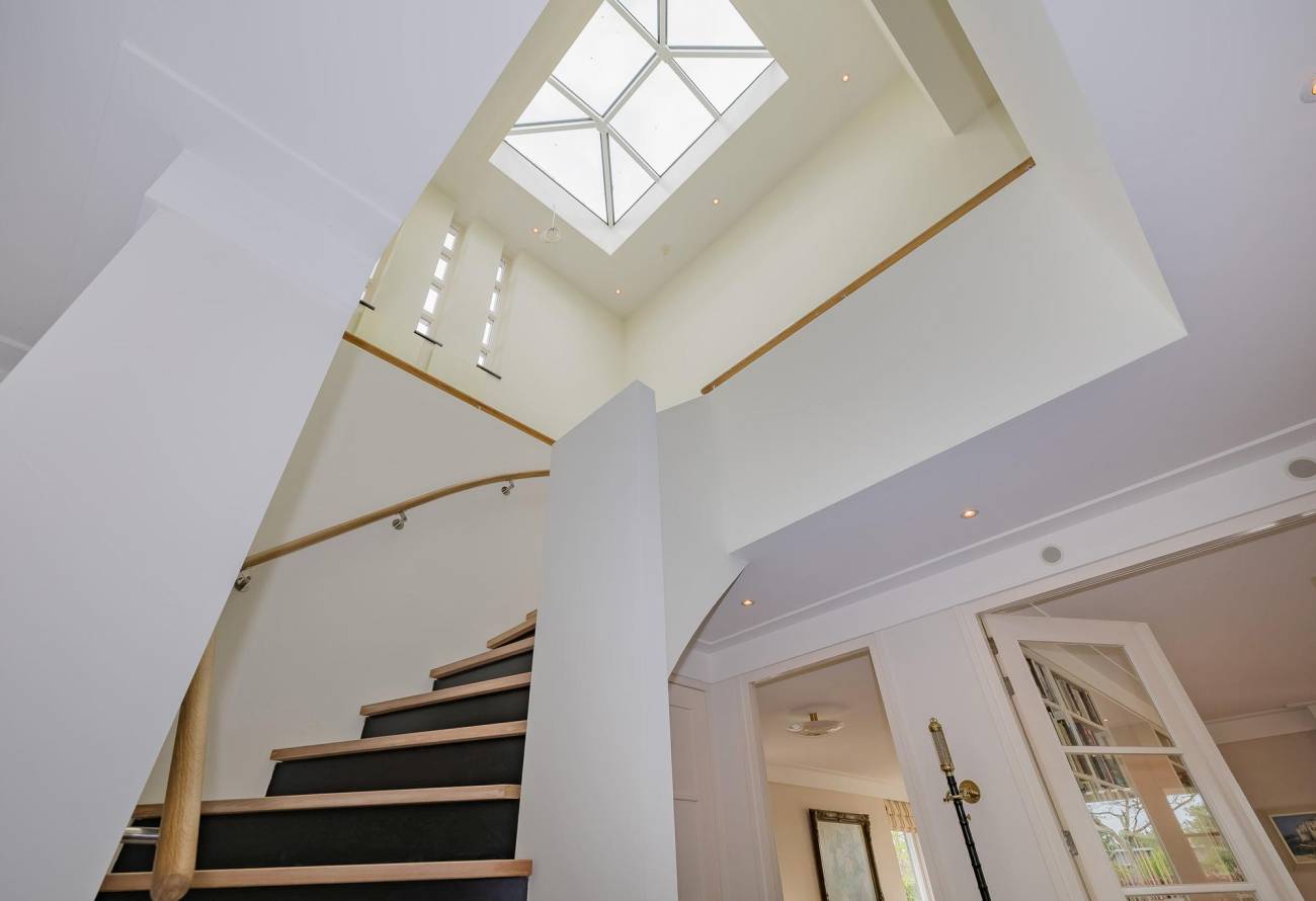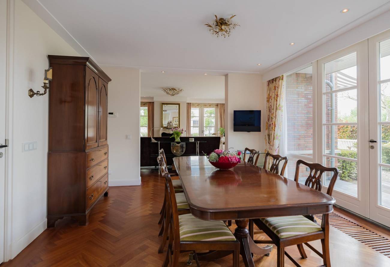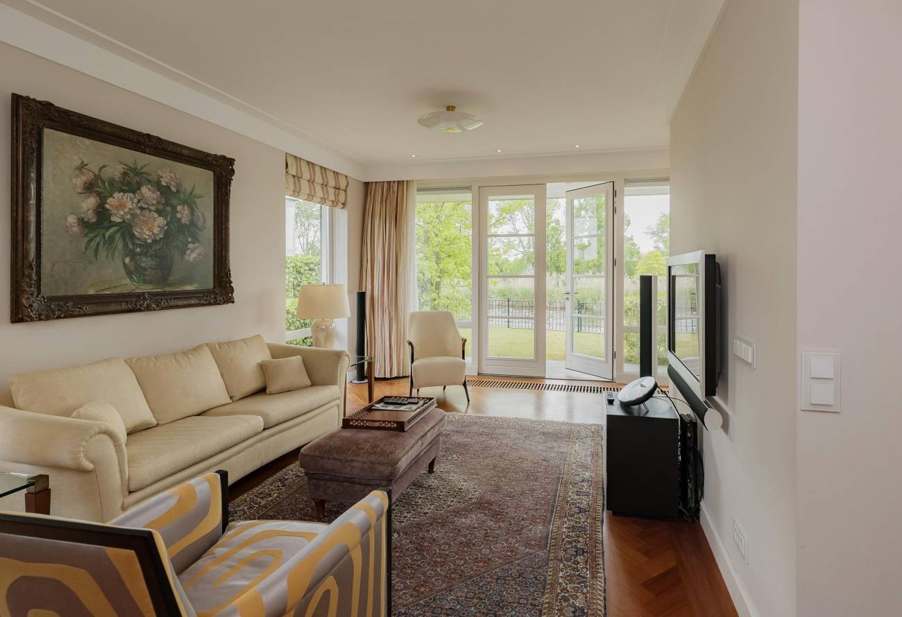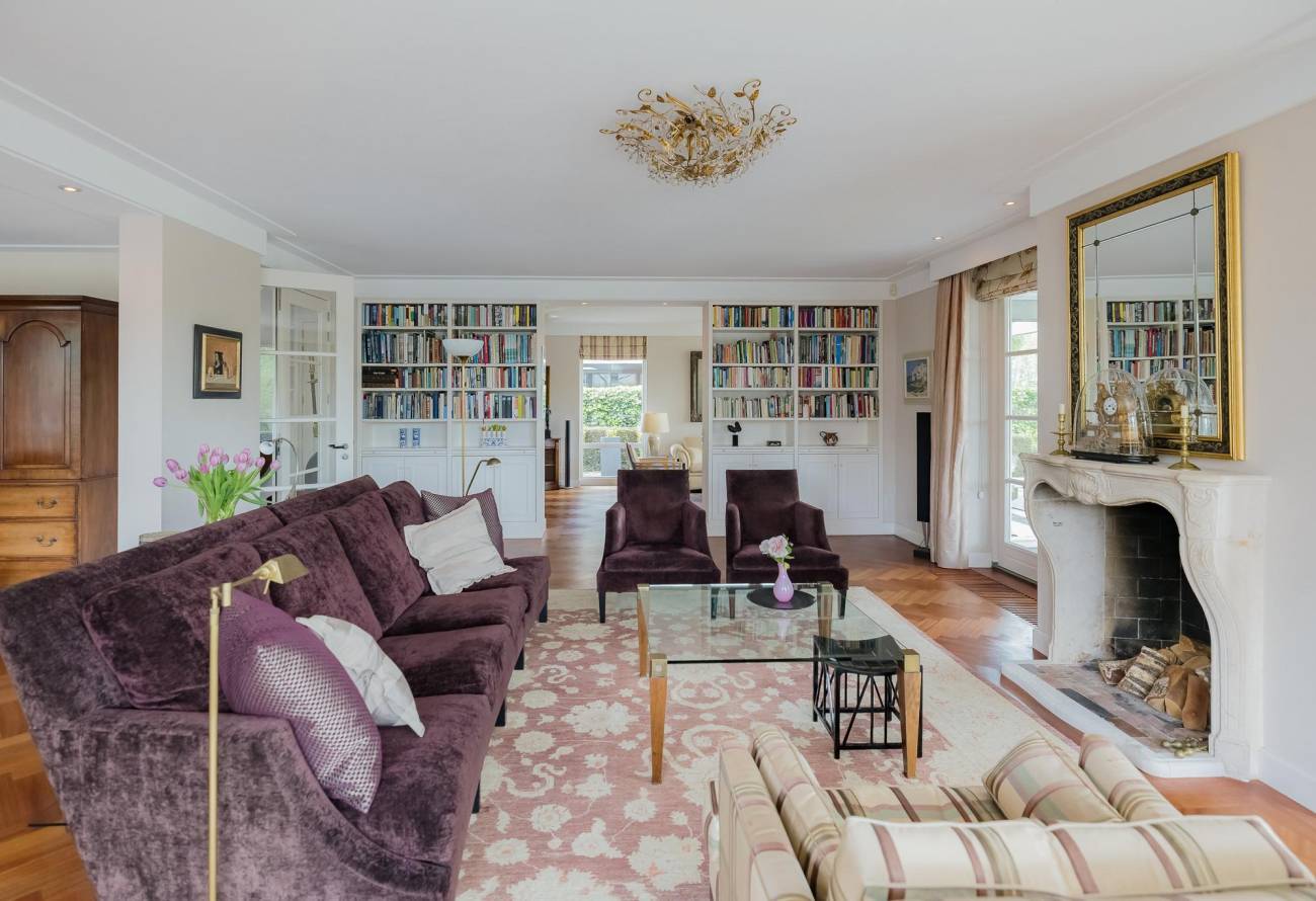 Bij binnenkomst valt direct de royale entree met het prachtige trappenhuis op. De living is ruim opgezet; woonkamer, eetkamer en tv-kamer staan in open verbinding met elkaar en dankzij de grote raampartijen geniet u van een prachtig uitzicht op de tuin en het water. Iedere kamer heeft openslaande deuren naar de terrassen en er is een veranda aan de woonkamer. De open haard zorgt voor een warme sfeer, terwijl de open indeling ideaal is voor zowel ontspanning als gastvrijheid.