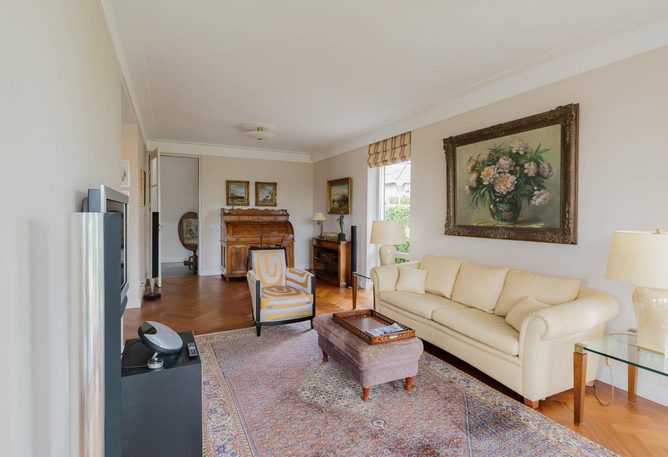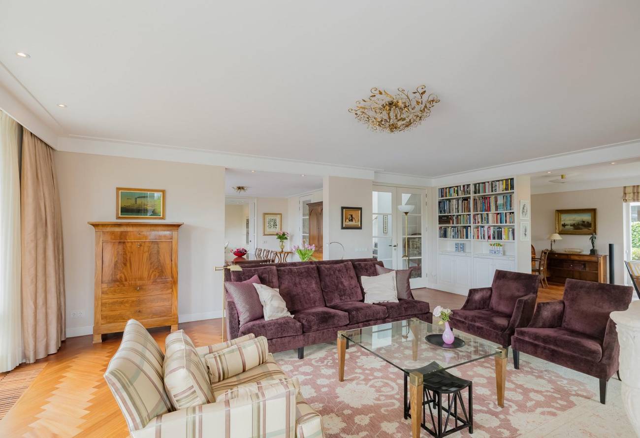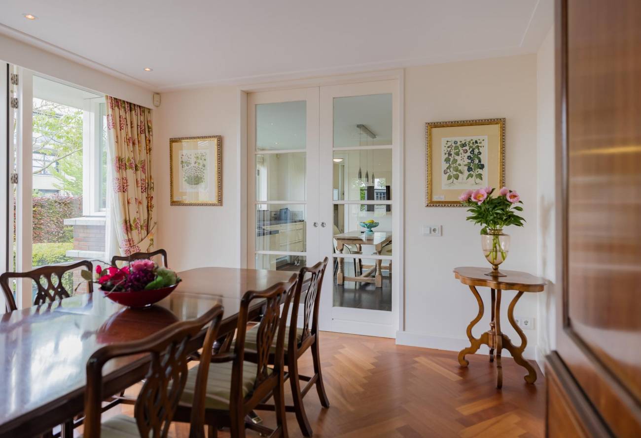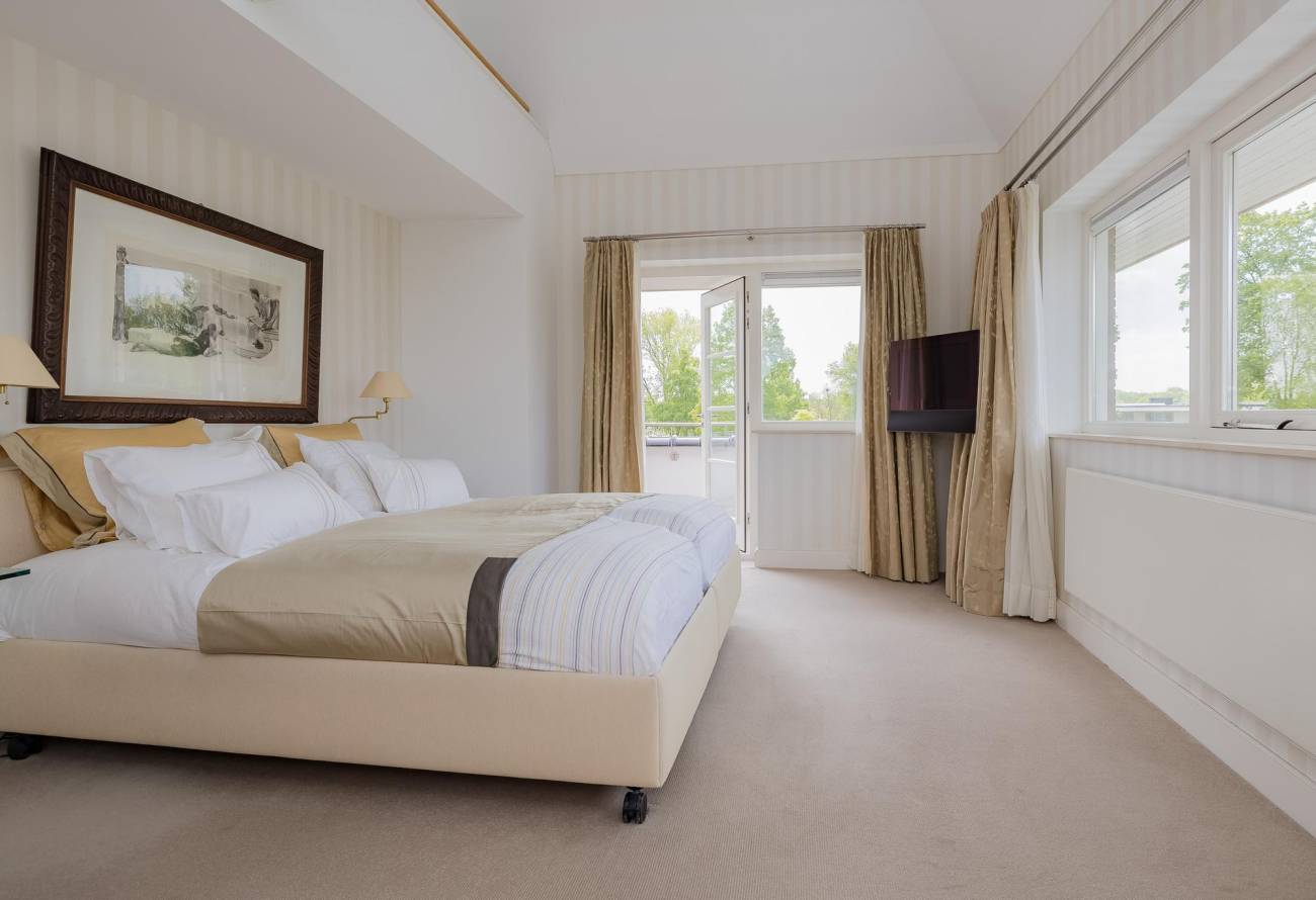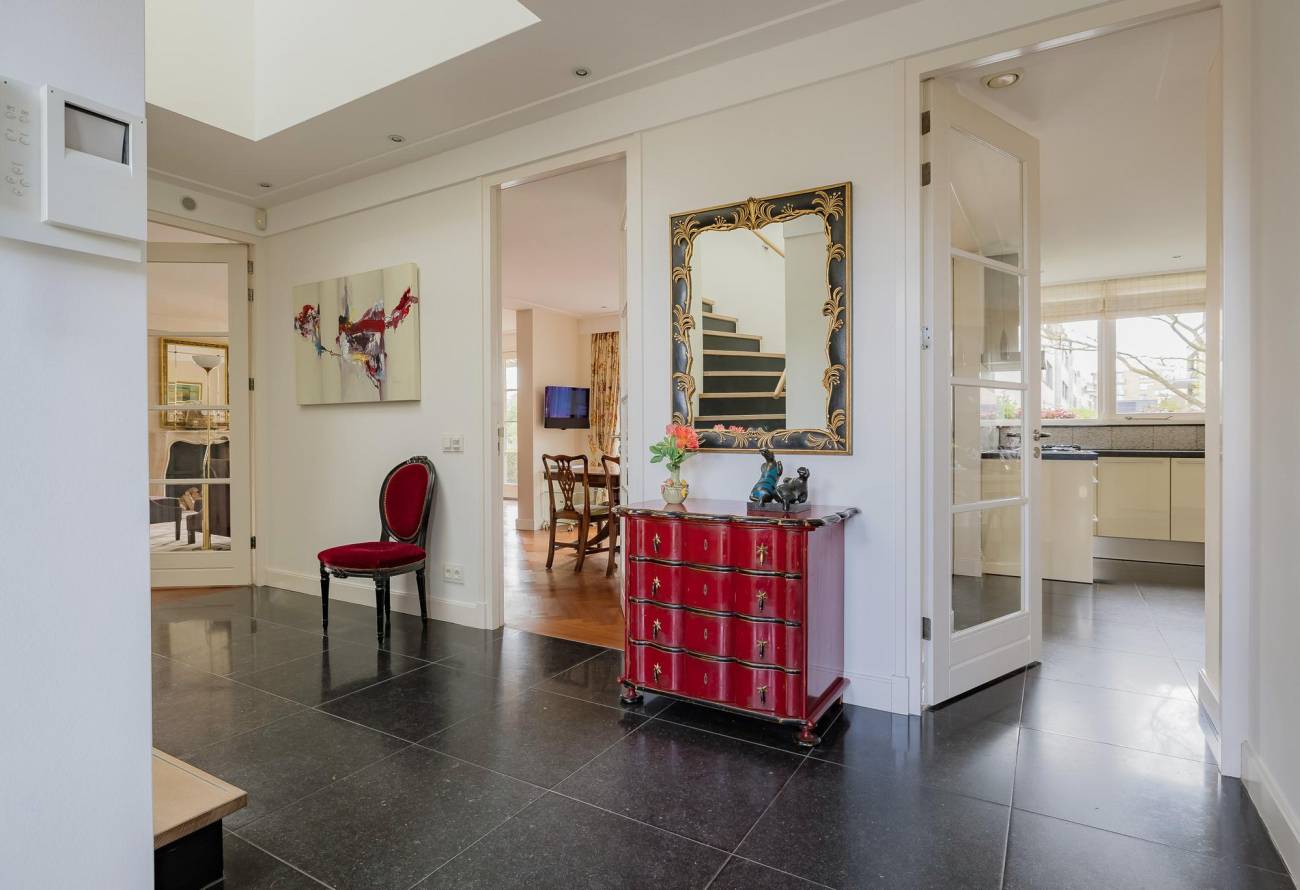 Bij binnenkomst valt direct de royale entree met het prachtige trappenhuis op. De living is ruim opgezet; woonkamer, eetkamer en tv-kamer staan in open verbinding met elkaar en dankzij de grote raampartijen geniet u van een prachtig uitzicht op de tuin en het water. Iedere kamer heeft openslaande deuren naar de terrassen en er is een veranda aan de woonkamer. De open haard zorgt voor een warme sfeer, terwijl de open indeling ideaal is voor zowel ontspanning als gastvrijheid.